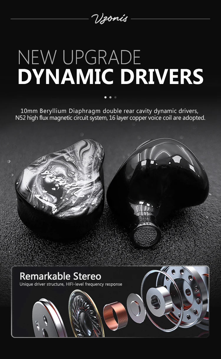 Vzonis Resin 3D printed 10mm Dual dynamic Driver HiFi iem in ear earphones hi...
