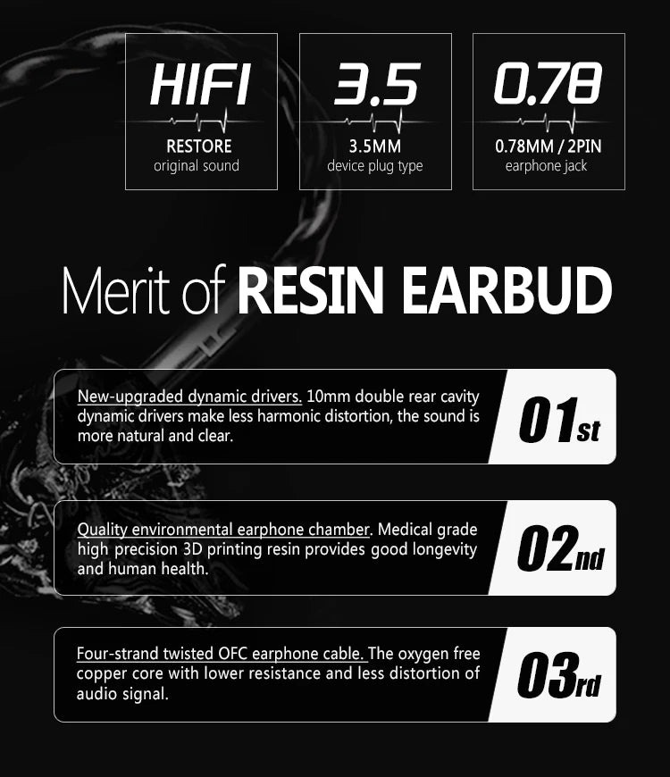 HiFi in ear iem earphones: Headset With 2Pin 0.78mm Cable