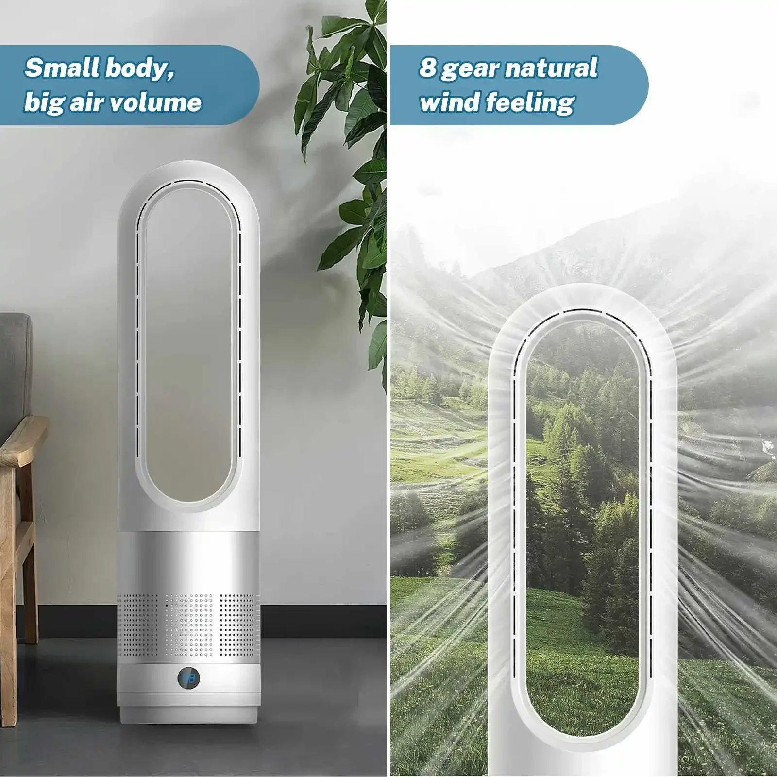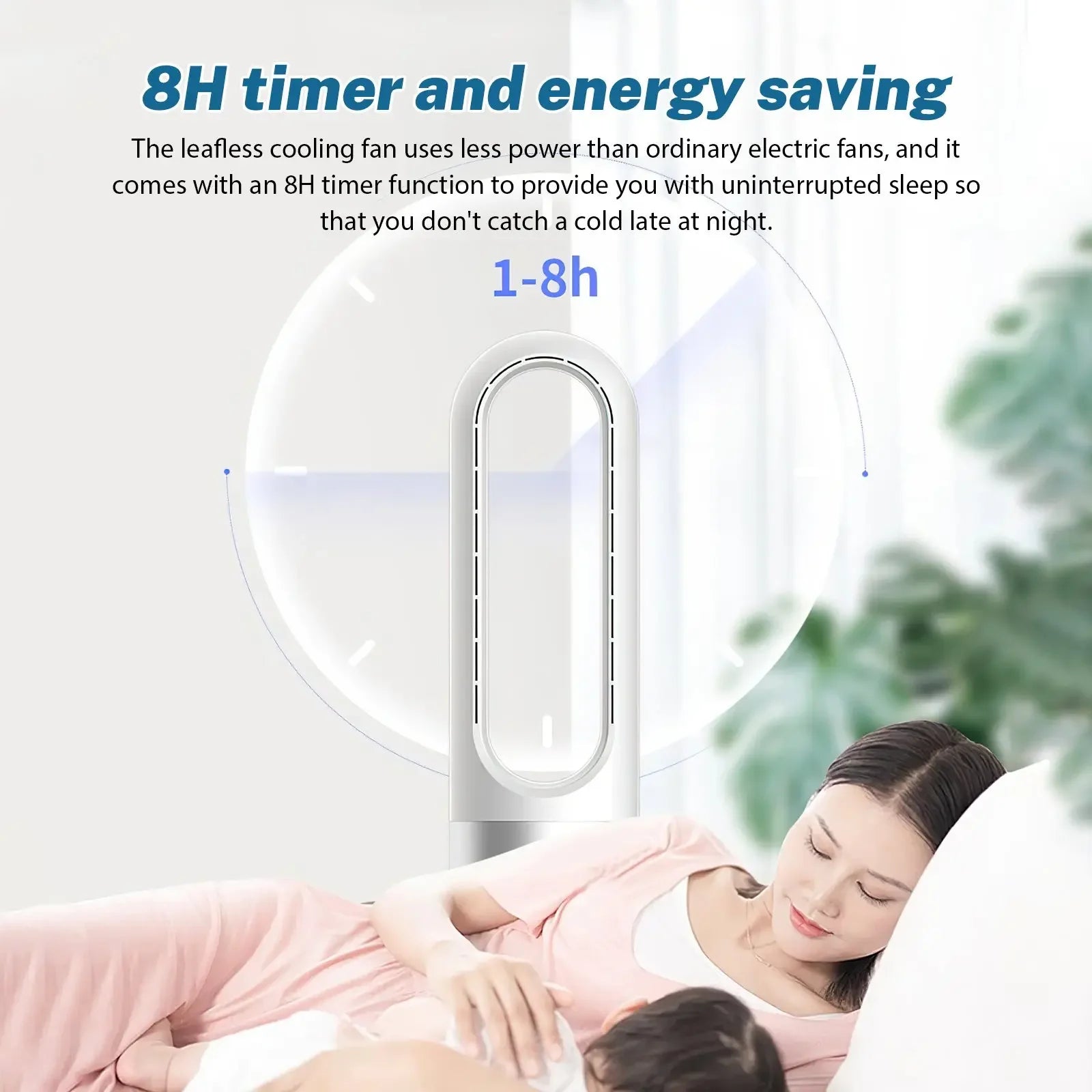 1. 【8H Timer and Energy Saving】- The bladeless cooling fan consumes less power than a regular electric fan. It has an 8H timer function, which can provide you with undisturbed sleep and prevent you from catching a cold in the late night.