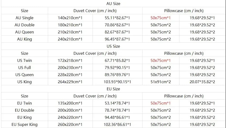 Pacakge Inculde: 1 duvet cover + 1 or 2 pillowcas