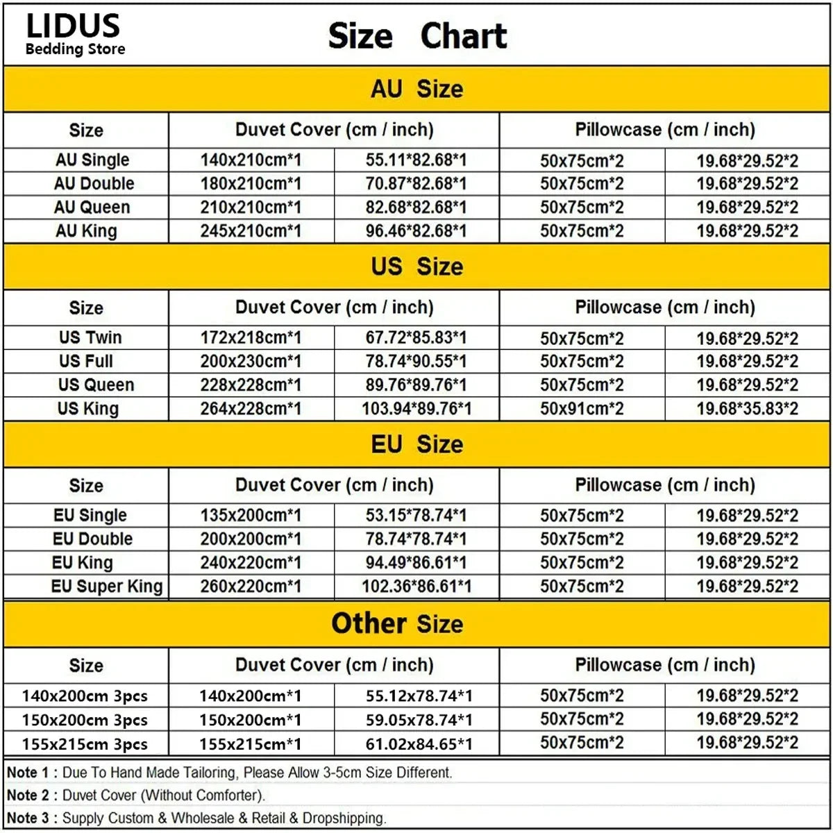 Pacakge Inculde: 1 duvet cover + 1 or 2 pillowcas