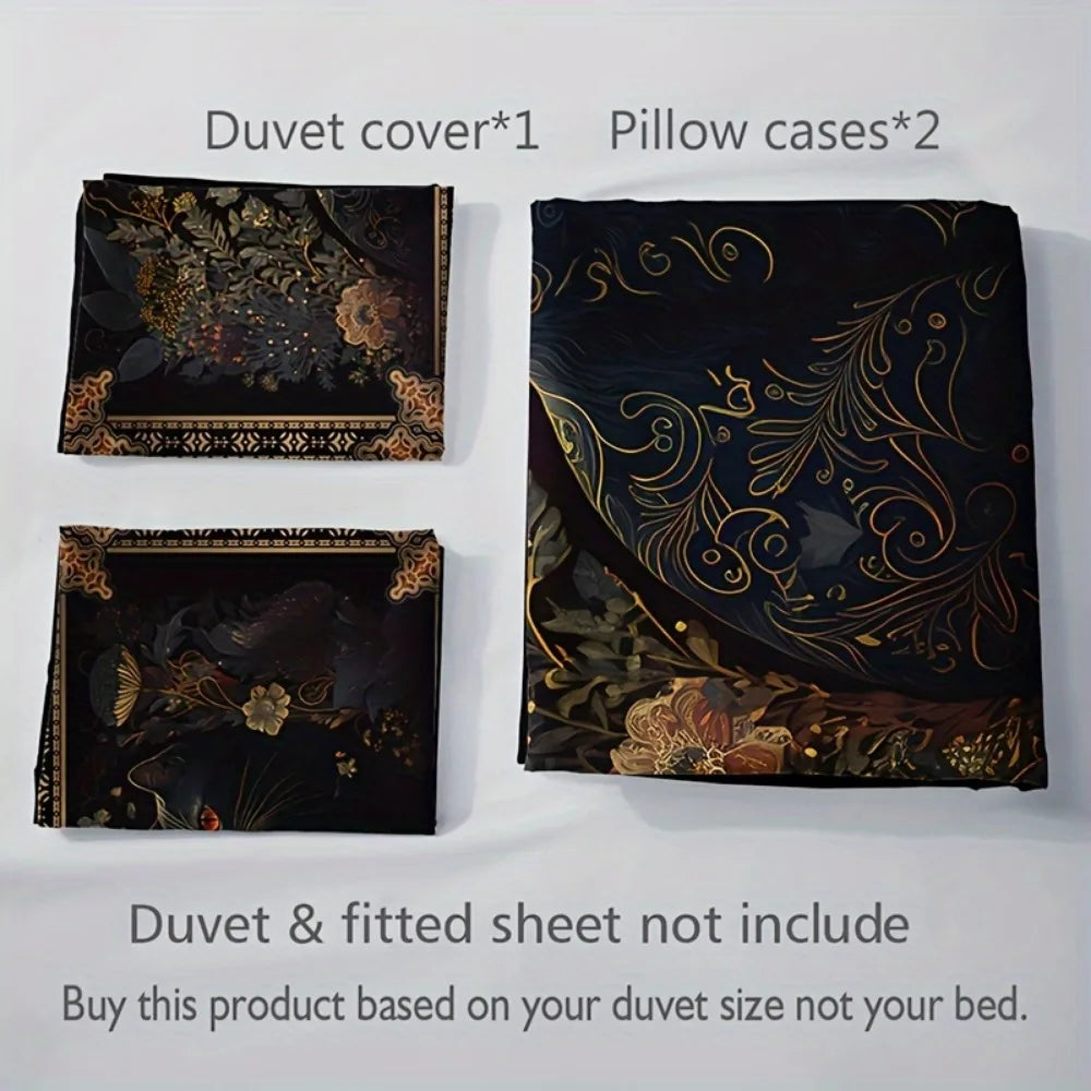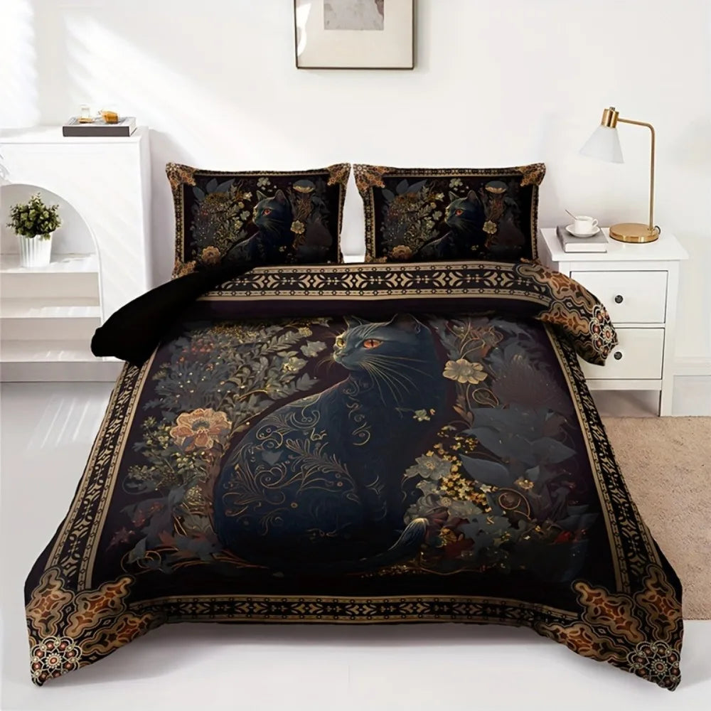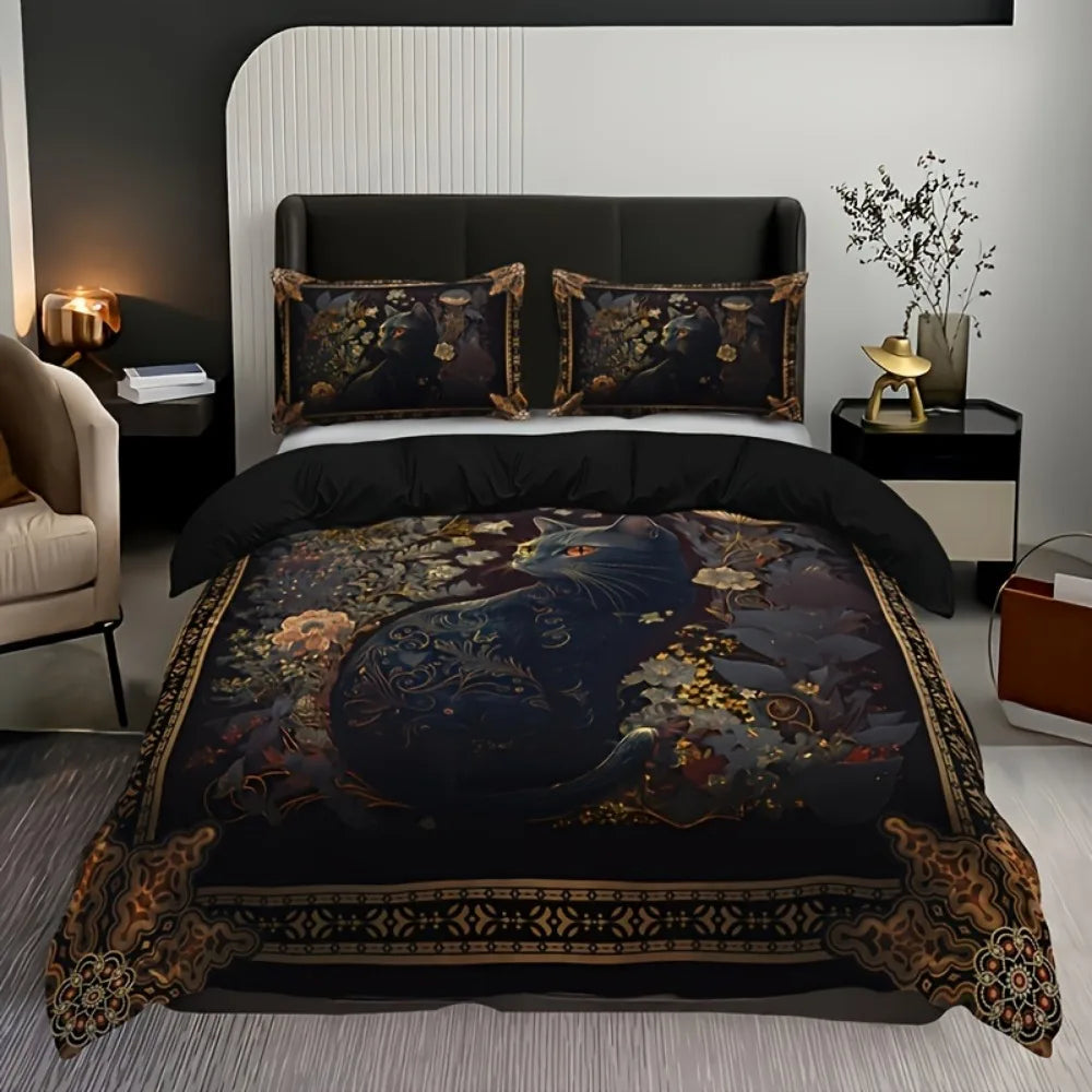 3pcs Bedding Set Gothic Black Cat Allan Poe Style Cozy Duvet Cover Set King