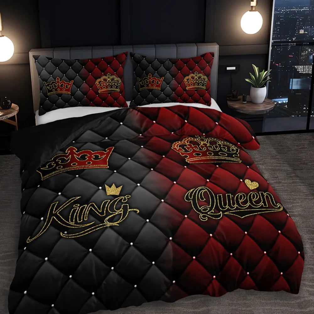 3pcs Black Red Bedding Set King Queen Rrown Printed Cozy Duvet Cover Set King