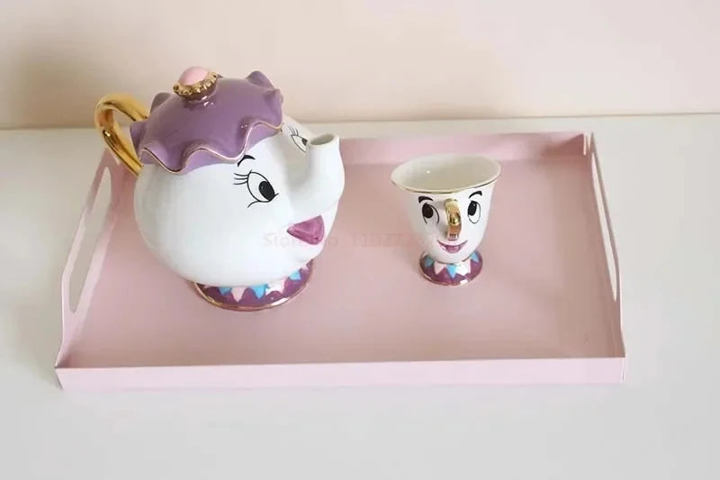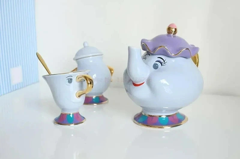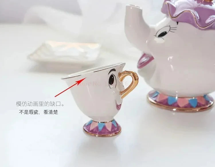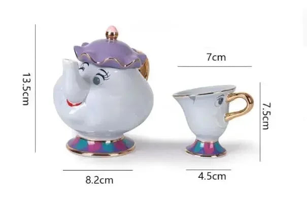 Disney Teapot Cute Cartoon Beauty And The Beast Coffee Pots Mug Mrs Potts Chip Cup Tea Cup Pots One Tea Sets Gift Droshipping