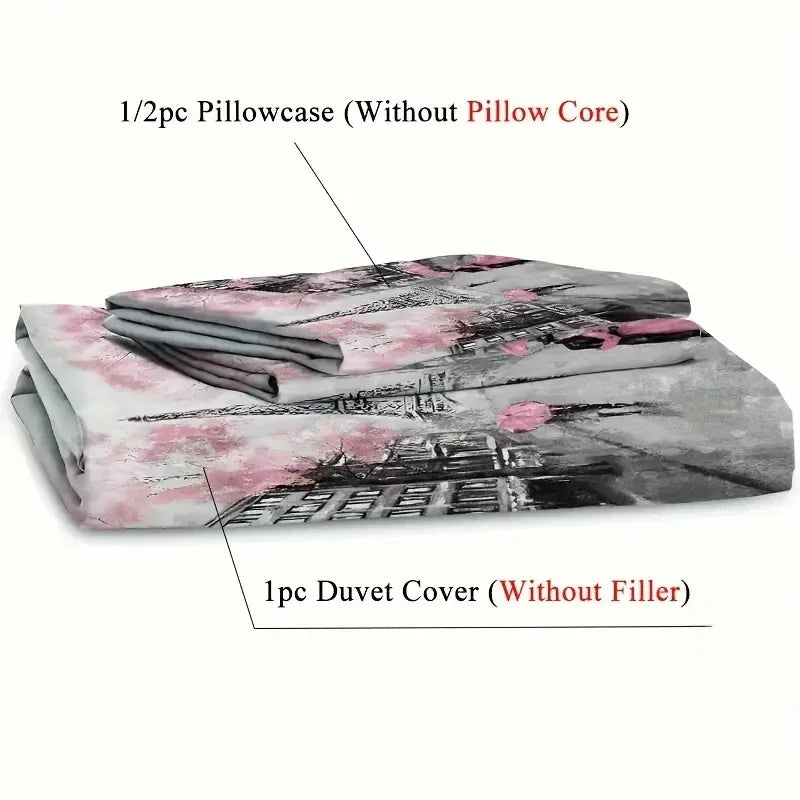Eiffel Tower Romantic Flowers Bedding Duvet Cover Set 3d Digital Printing Bed