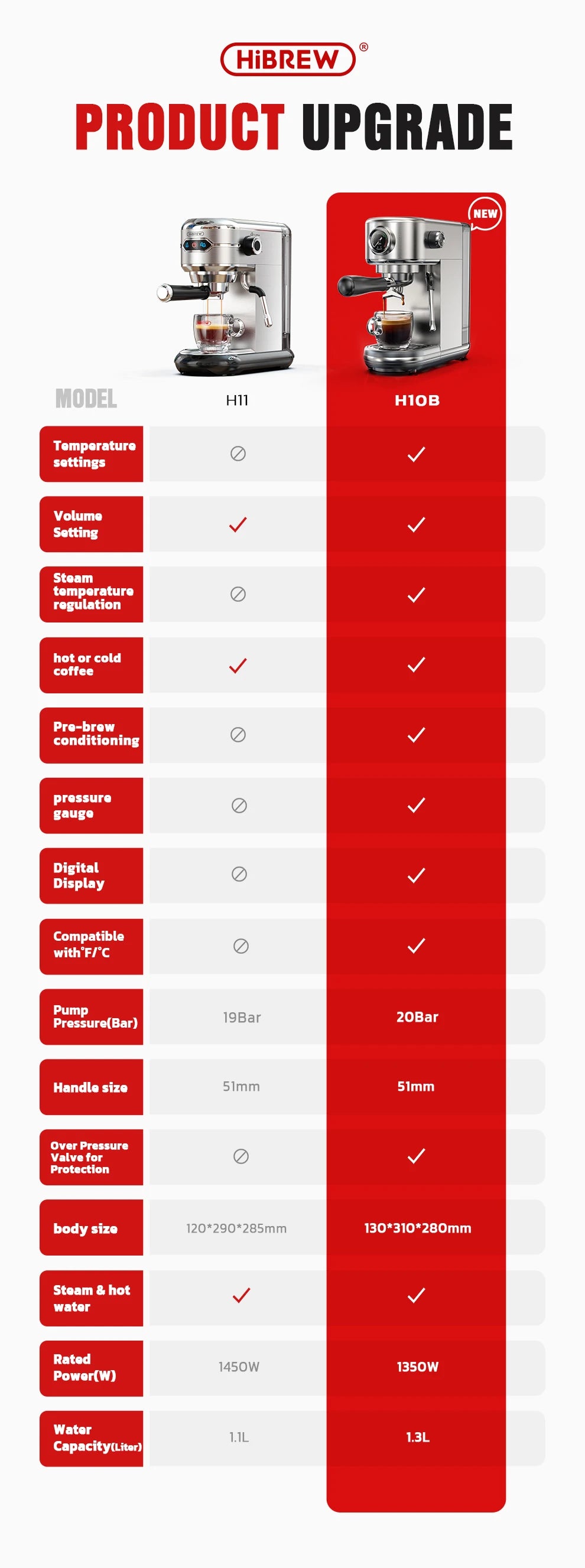 HiBREW Coffee Maker Cafetera 20 Bar Inox Semi Automatic Super Slim ESE POD& Powder Espresso Cappuccino Ma...