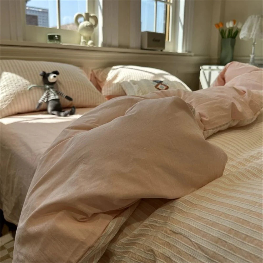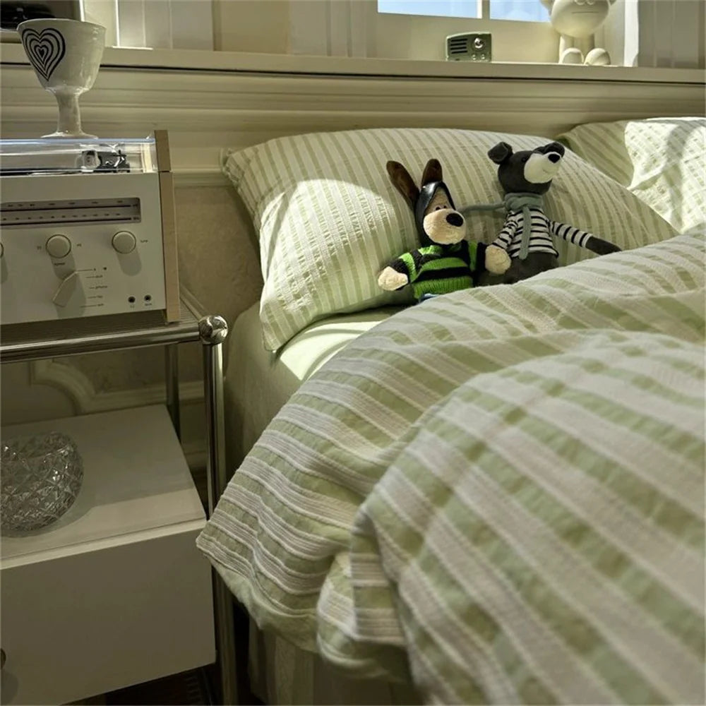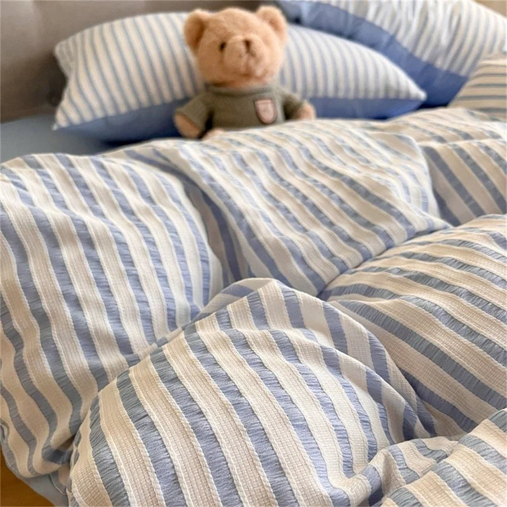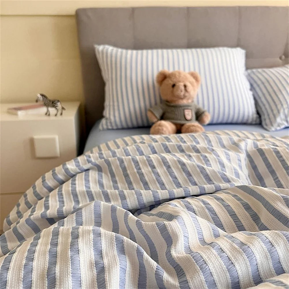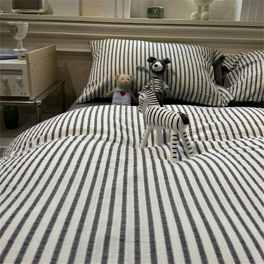 Ins Nordic Duvet Cover Set Quilt Set Minimalist Style Grey Strip Bed Set Of Four