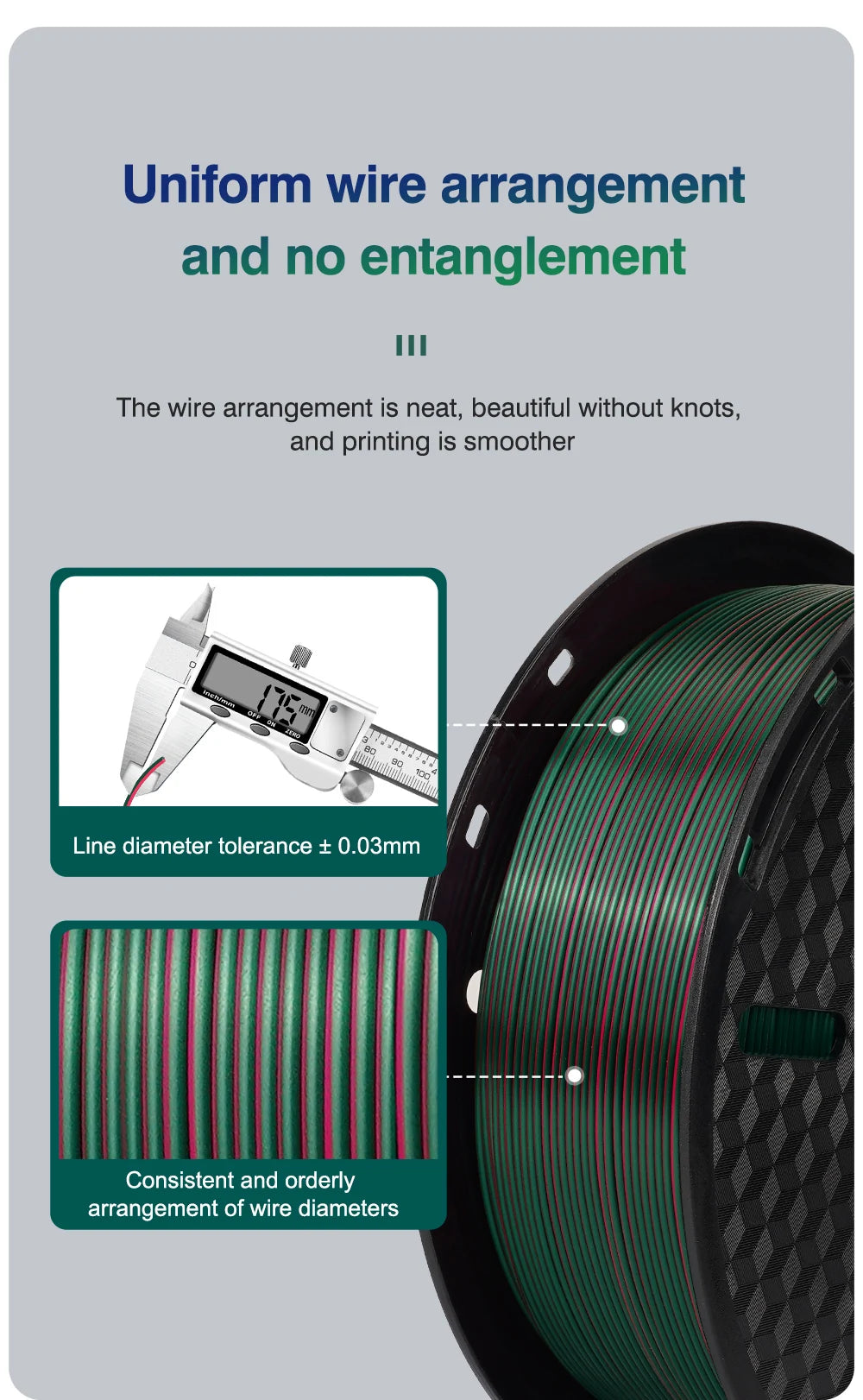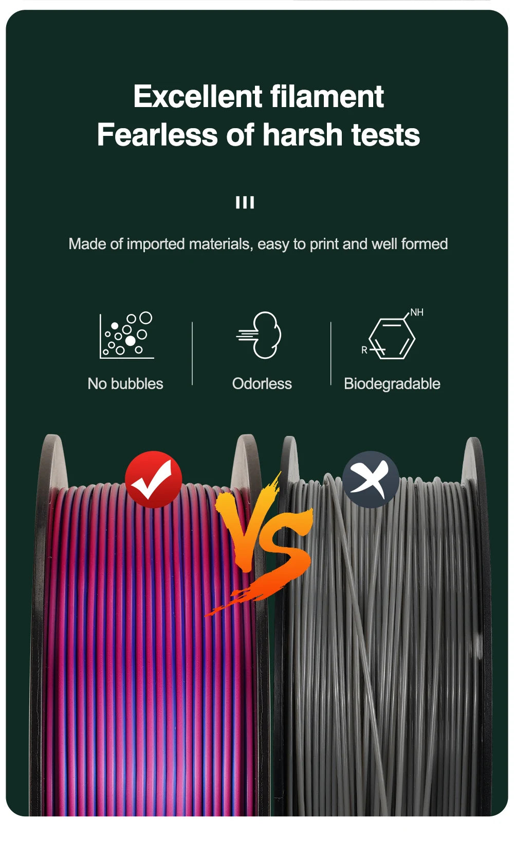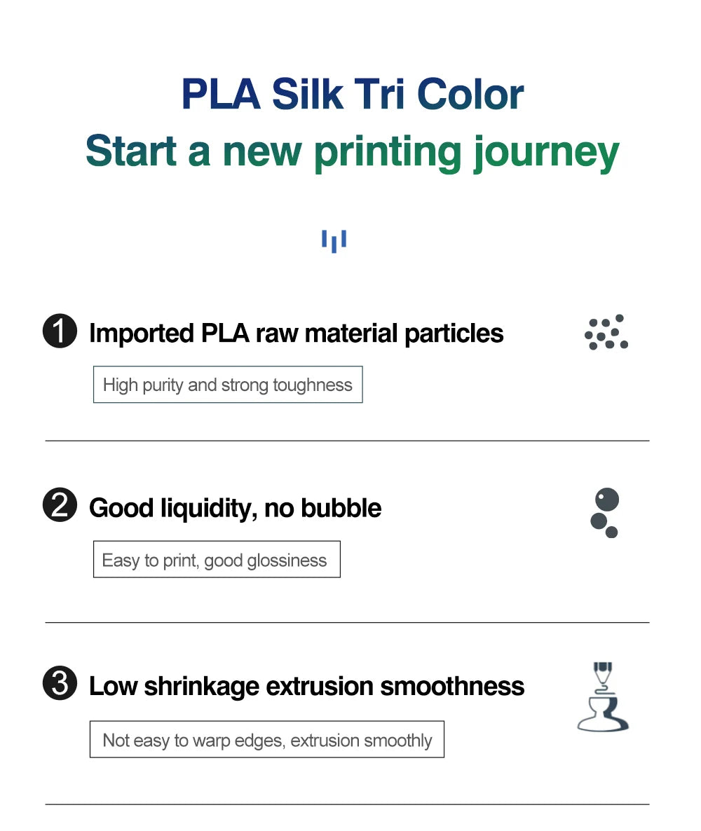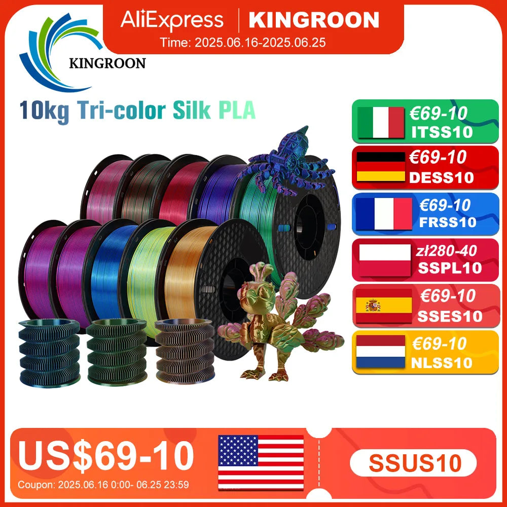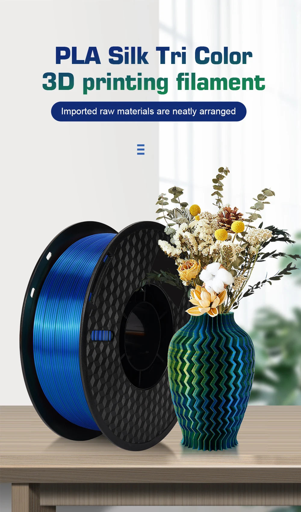 Kingroon Silk Tricolor PLA Filament 3D Printer 1.75mm 2.2 8.8 11 lb Silk PLA