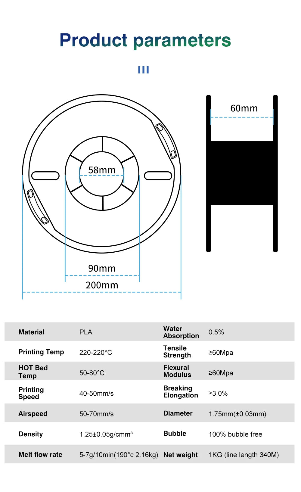 Recommended Extrusion/Nozzle Temp.: 210 - 230° C (410℉~ 446℉).