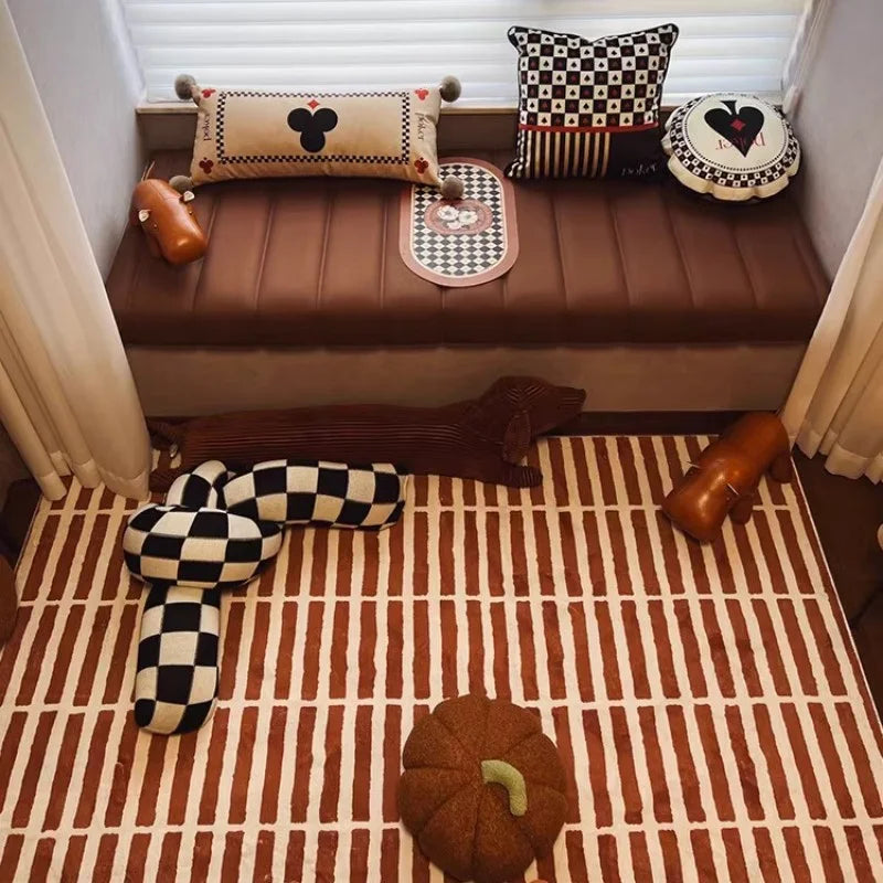 Retro Square Brick Living Room Floor Mat Home Coffee Table Rug Light Luxury Cloakroom Non-slip Soft Bedro...