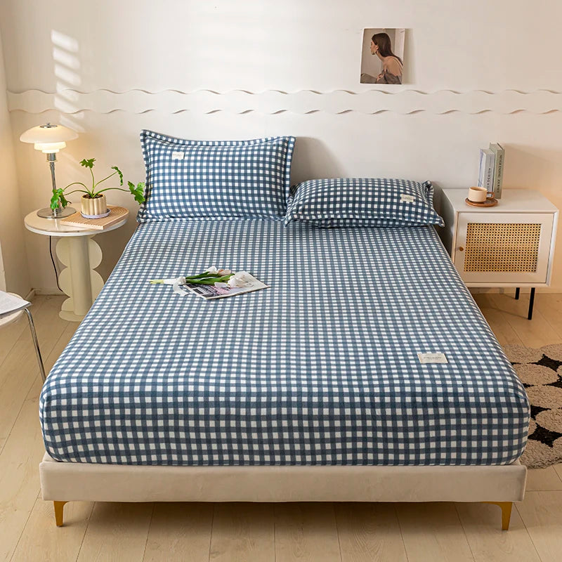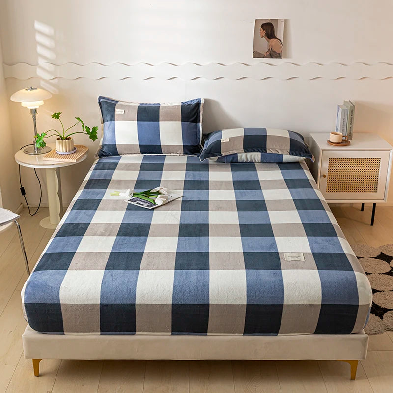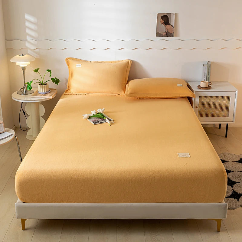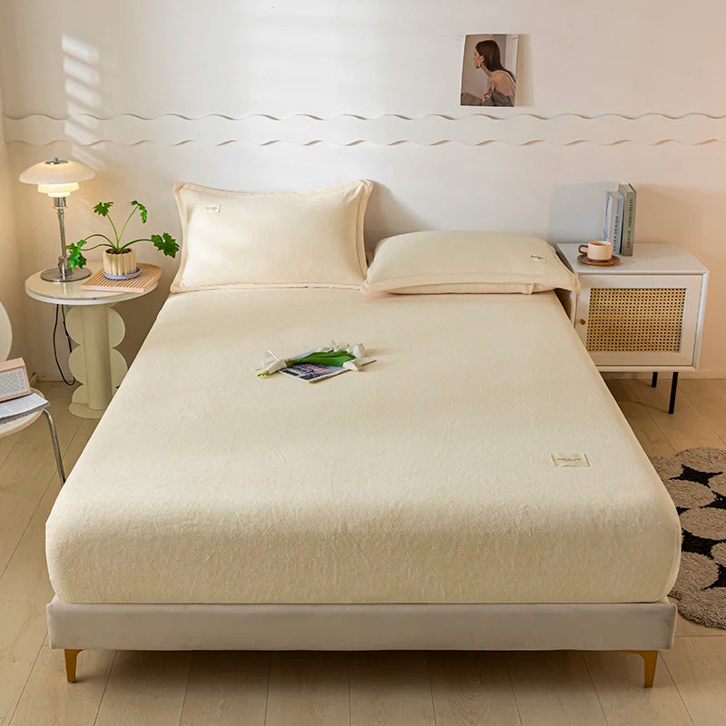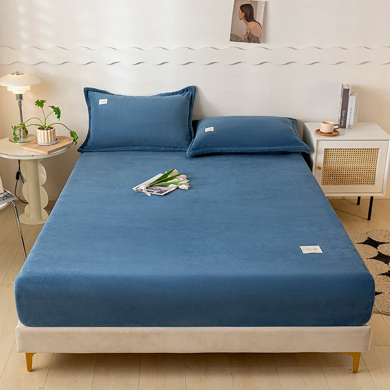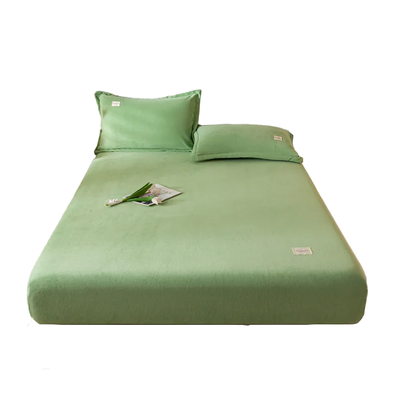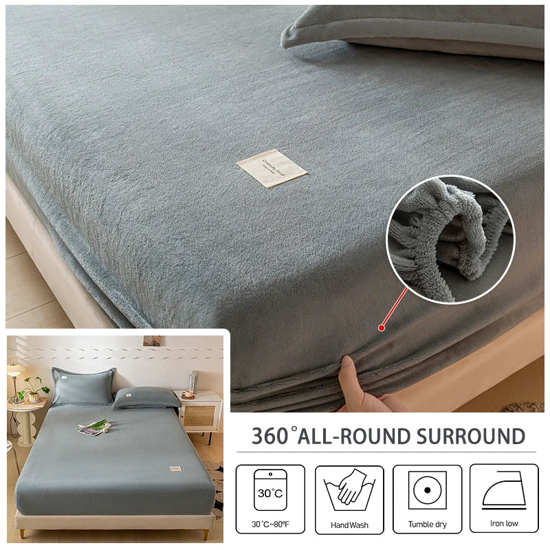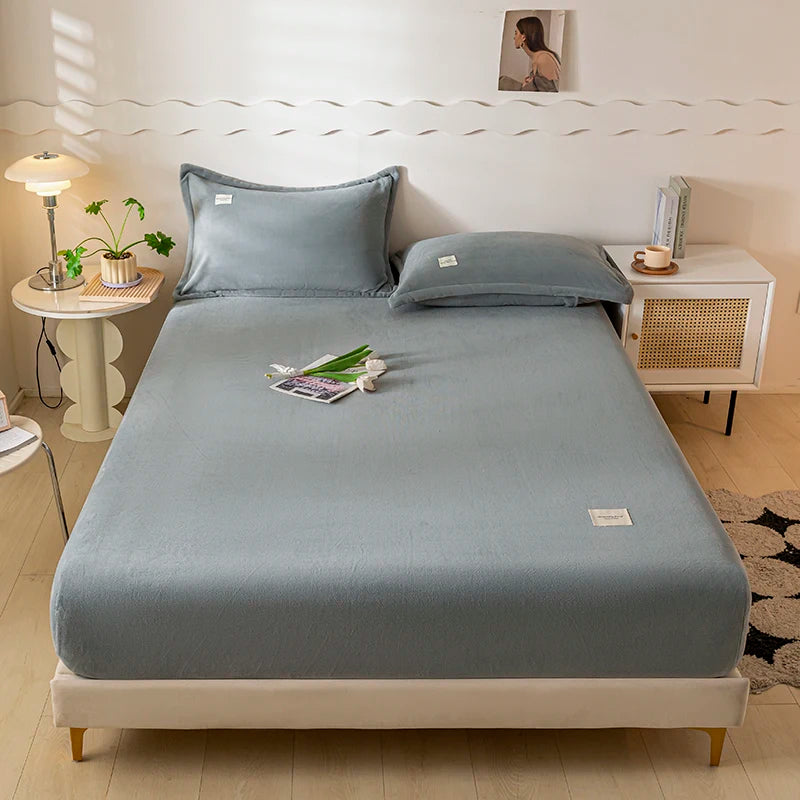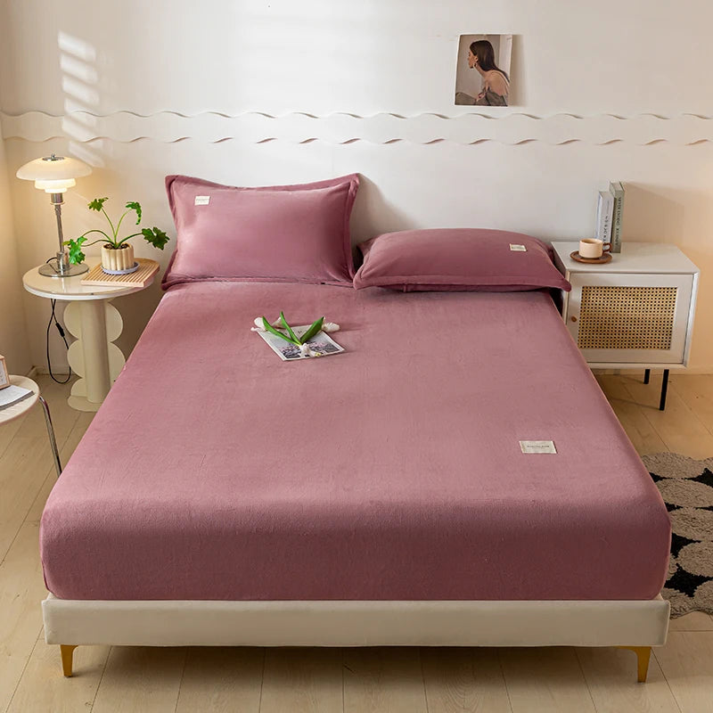 Solid Color Velvet Fabric Fitted Sheet Soft Elastic Bedspread Mattress Cover Bed