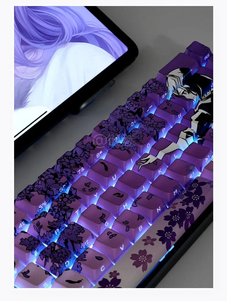 129 Raven Sakura Keycap Cherry Profile Cute Anime Keycap Double Shot Sidelit