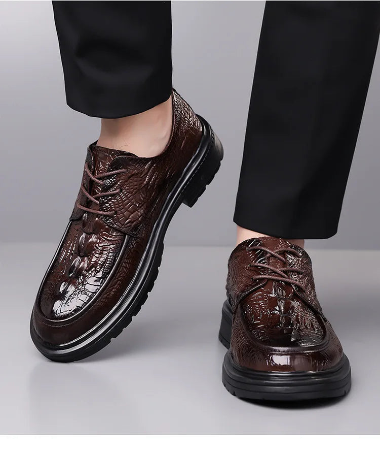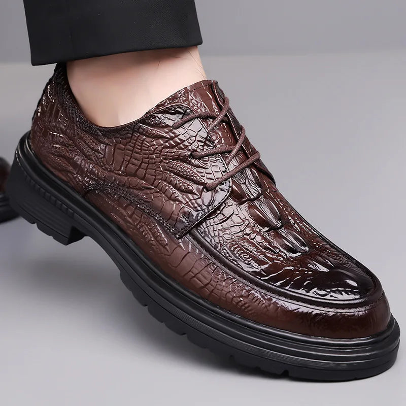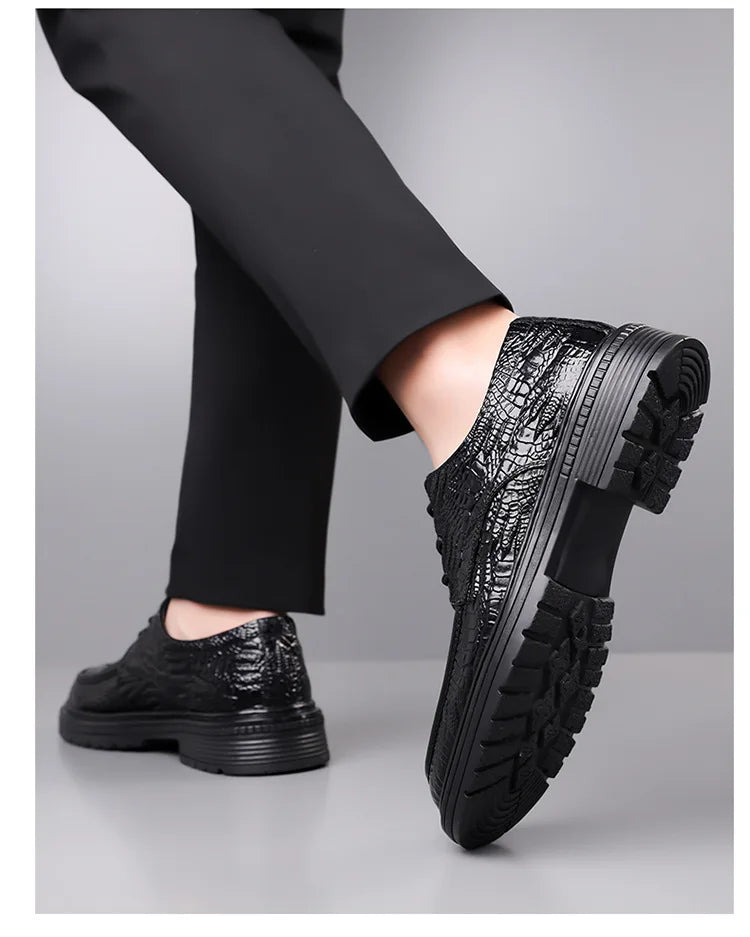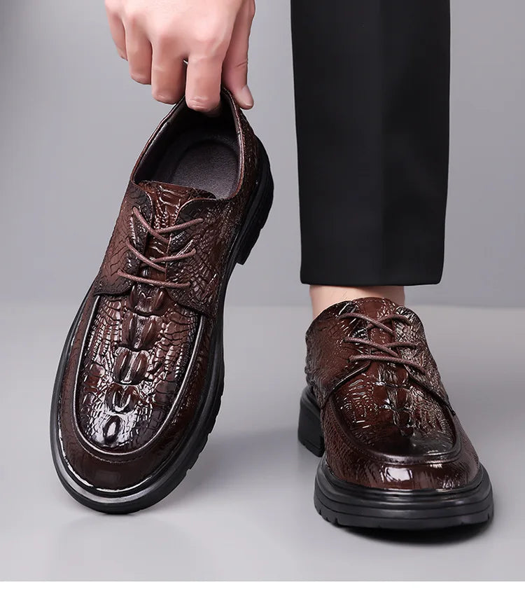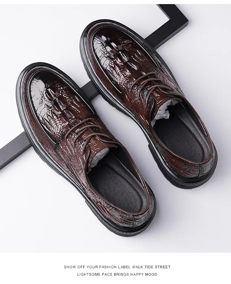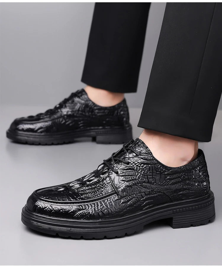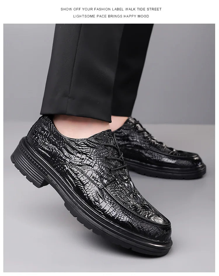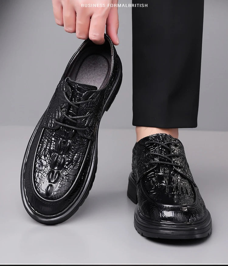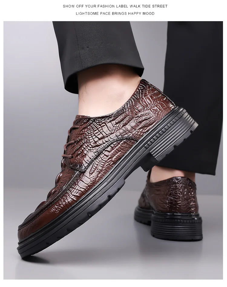 Designer Crocodile patterned Cow Leather Shoes Men British Style Suit Wedding...