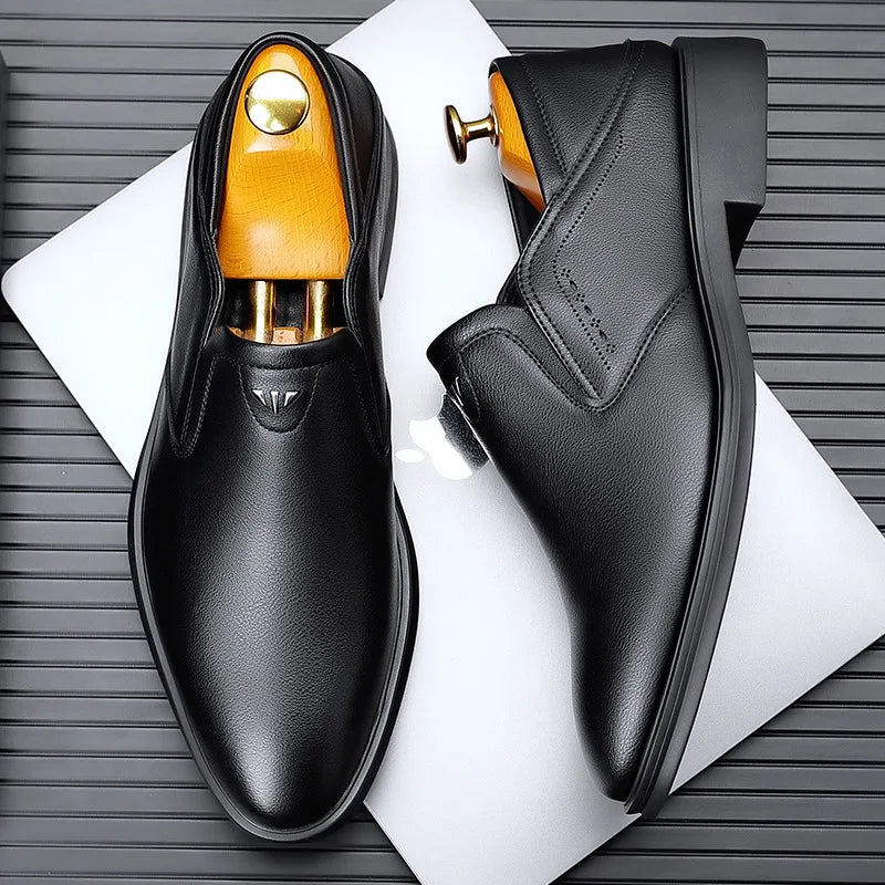 Spring Autumn Men s Dress Shoes Fashion Casual Cow Leather British Pointed To...