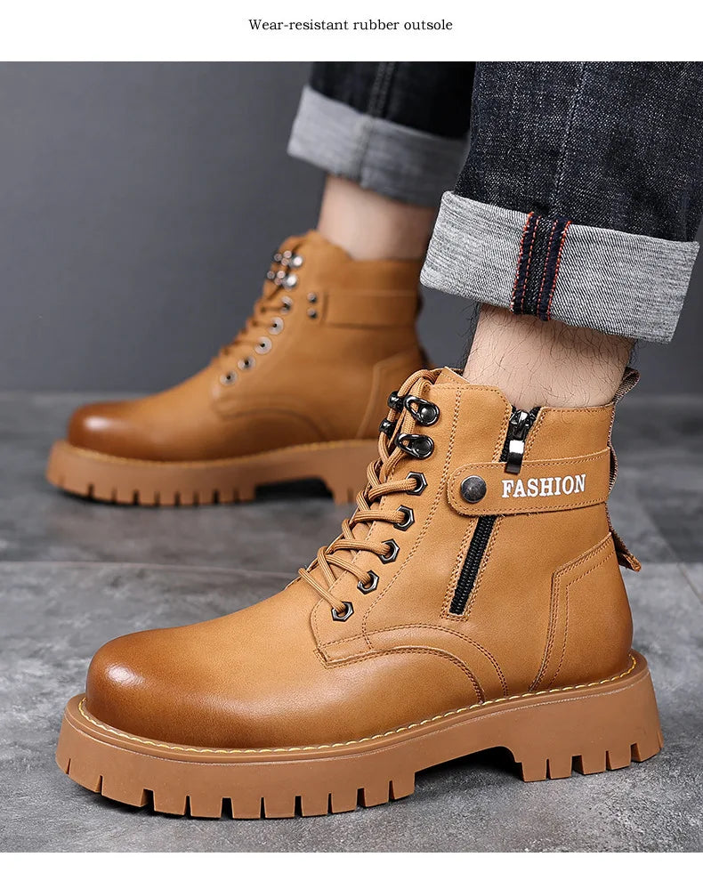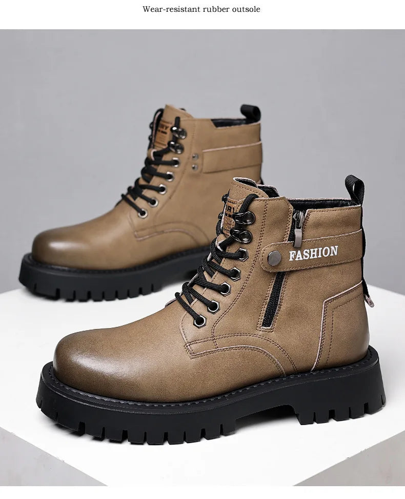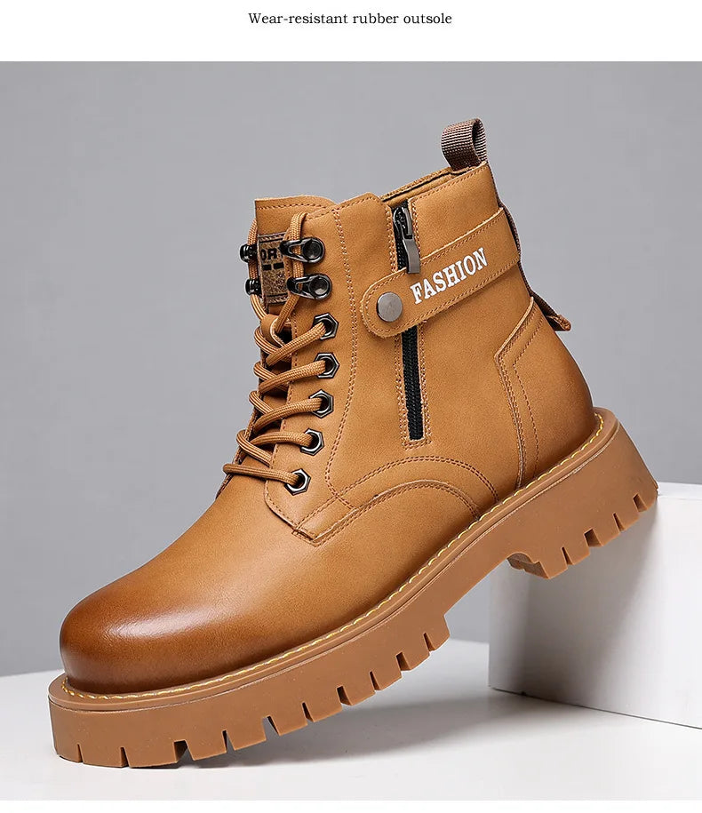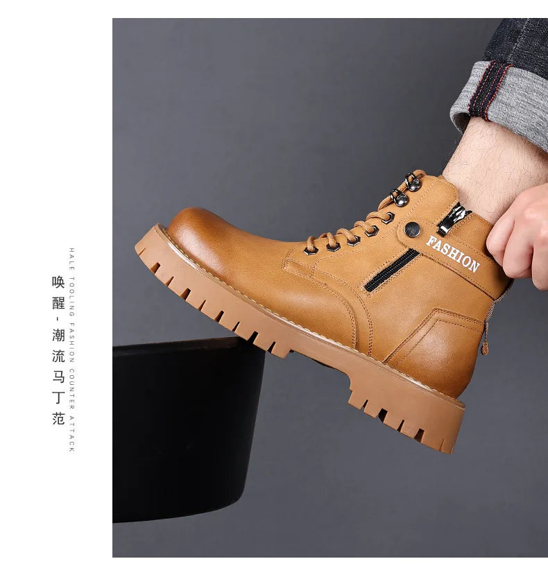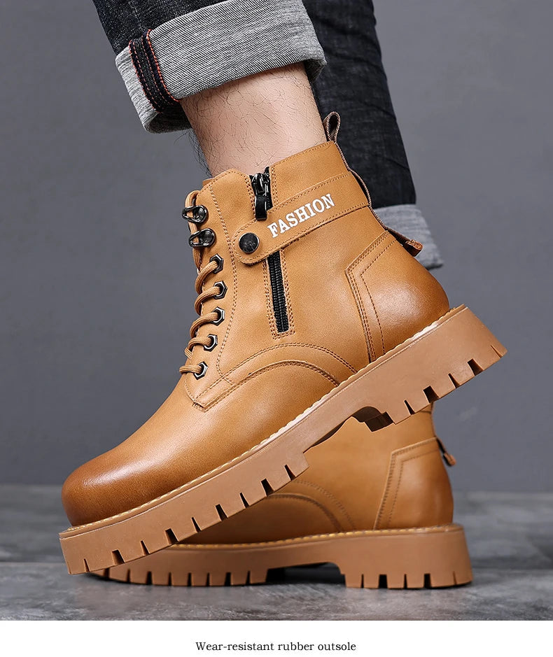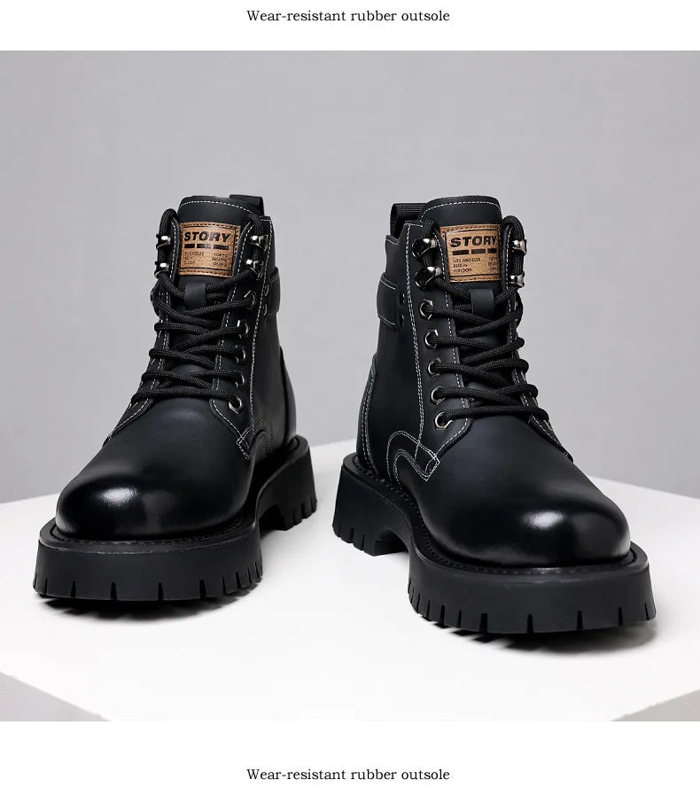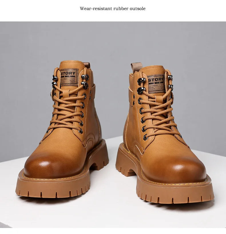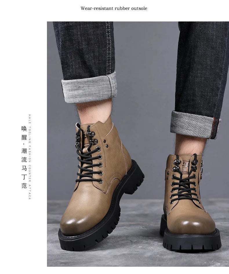 Autumn Winter High Top Boots for Men Fashion Casual Cow Leather Casual Shoes ...