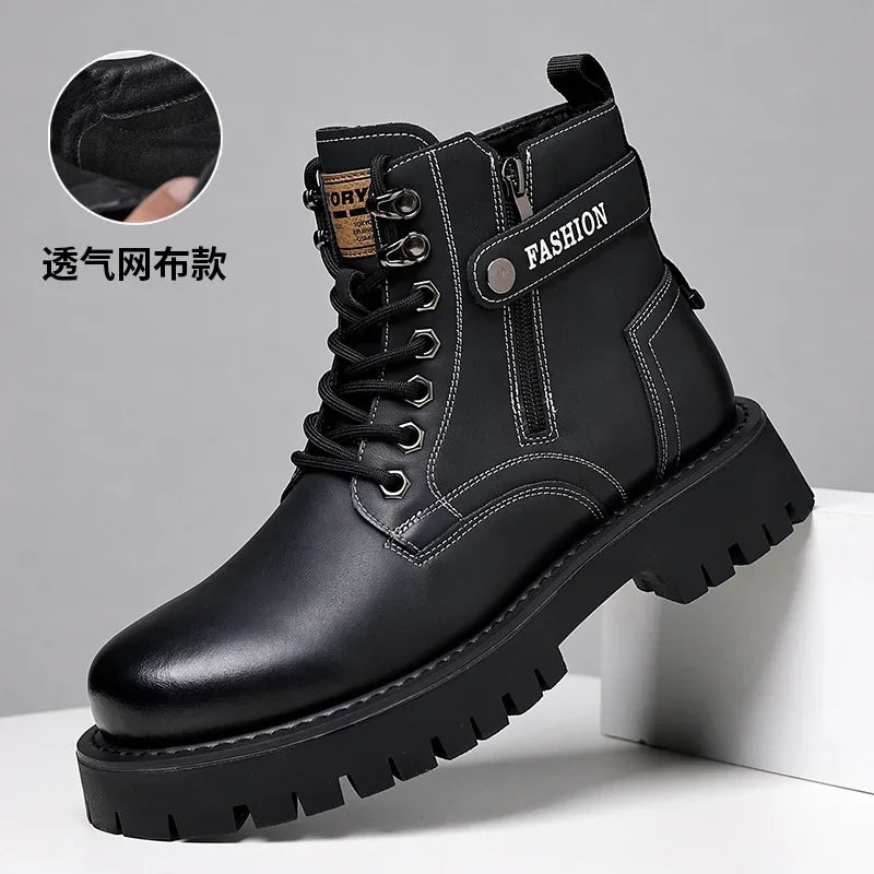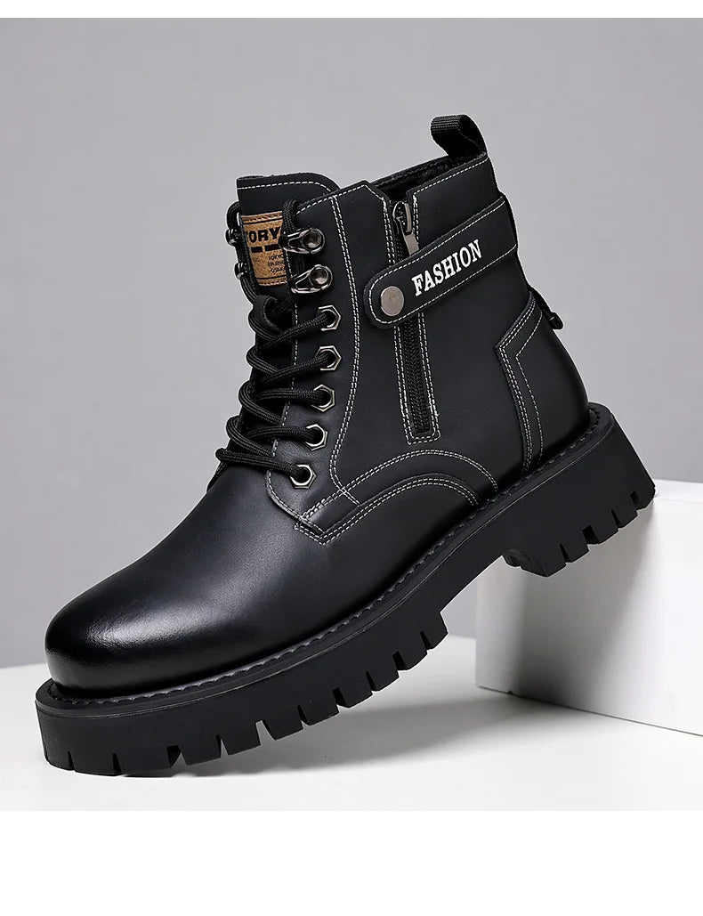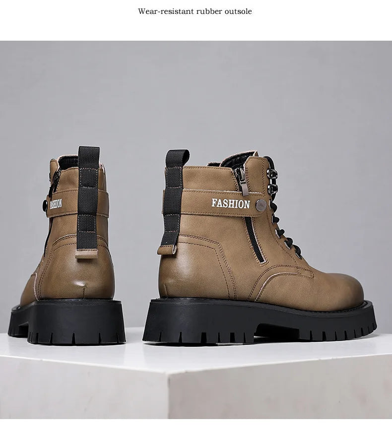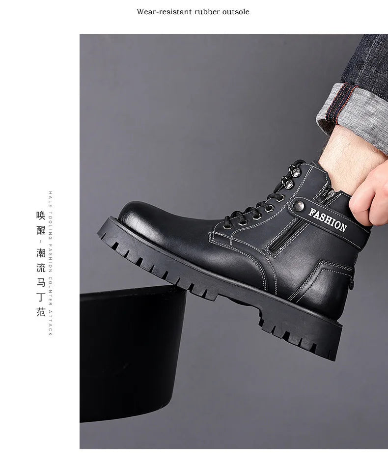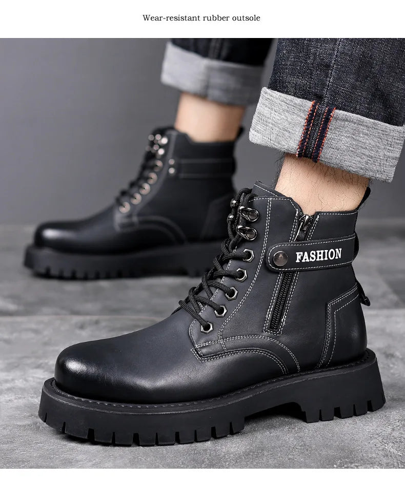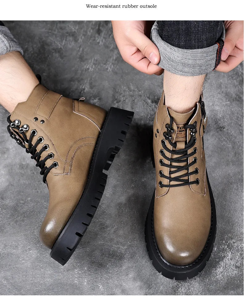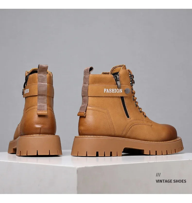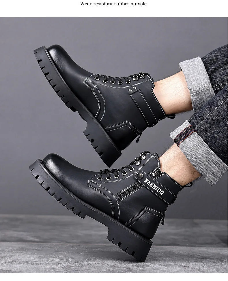Autumn Winter High Top Boots for Men Fashion Casual Cow Leather Casual Shoes ...