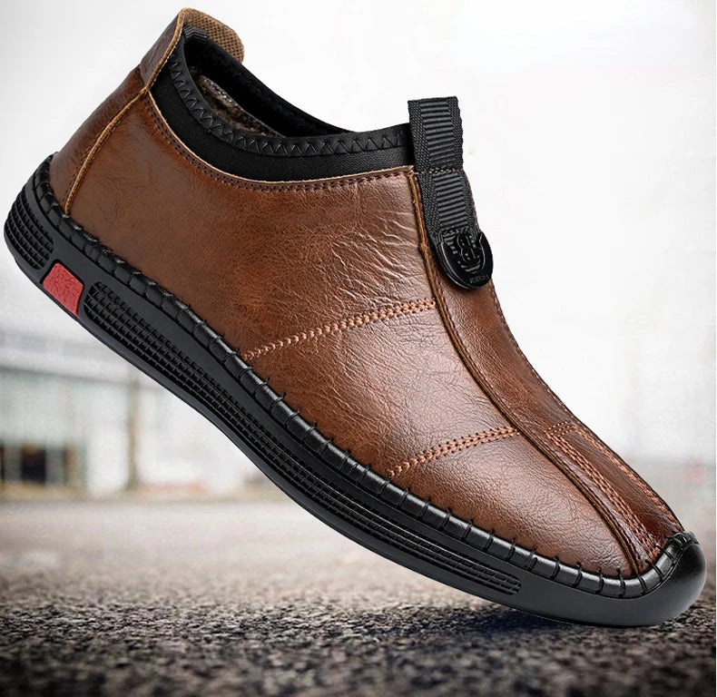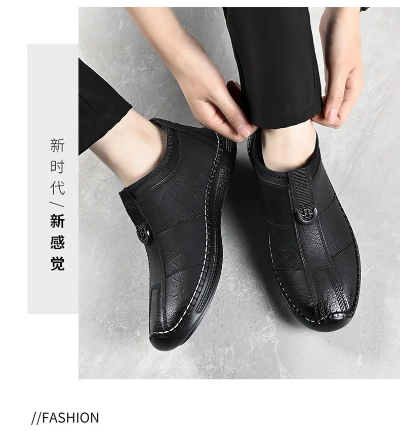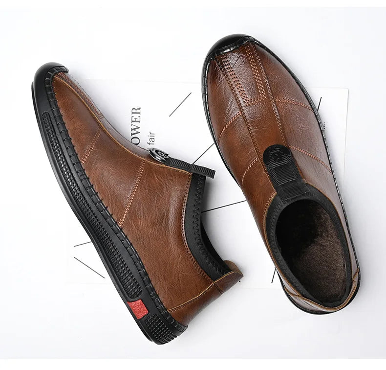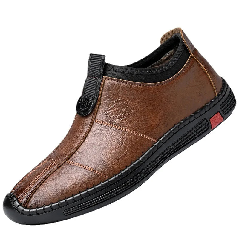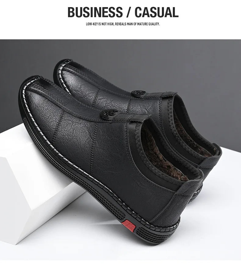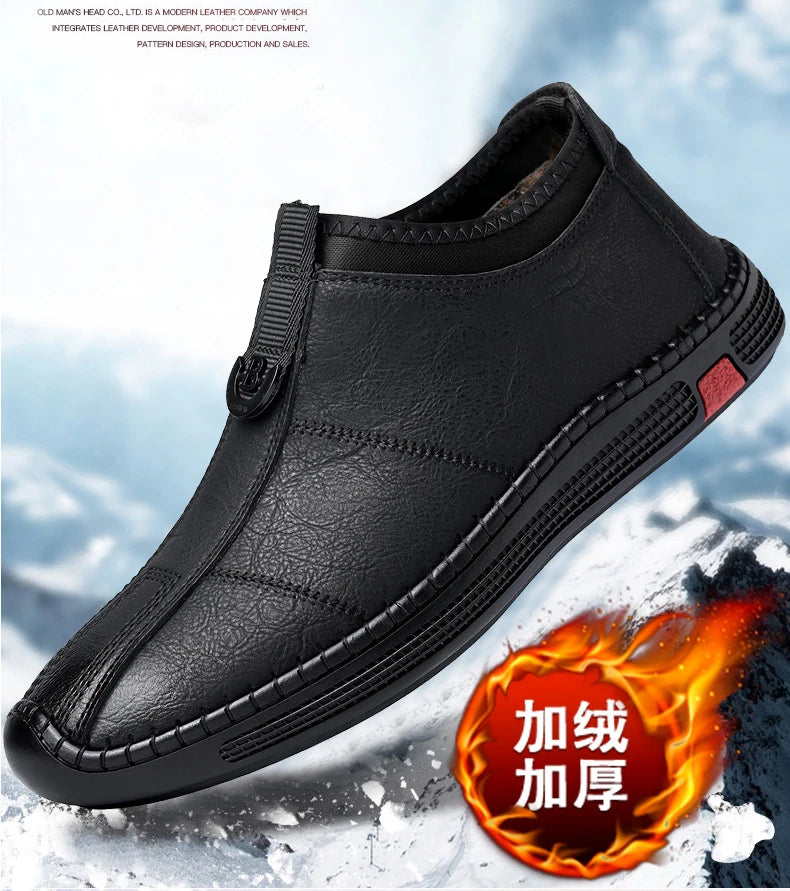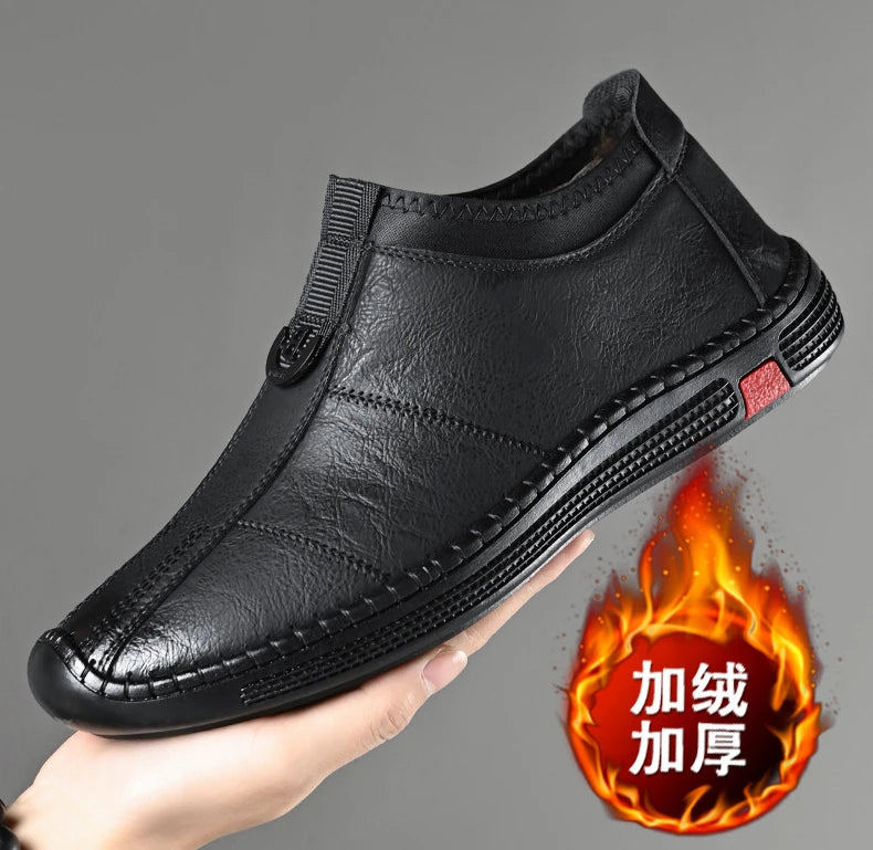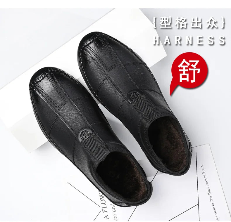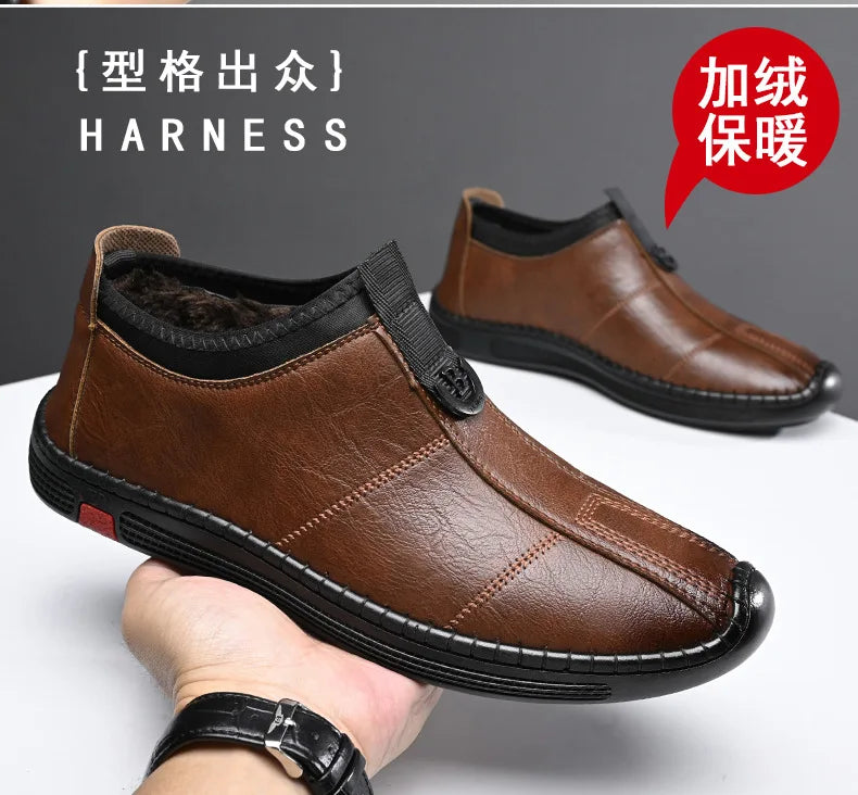 Autumn Winter Designer Leather Shoes for Men Casual Brushed Warm Loafers Shoe...