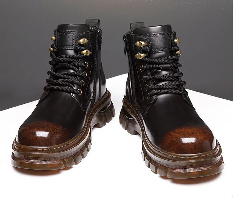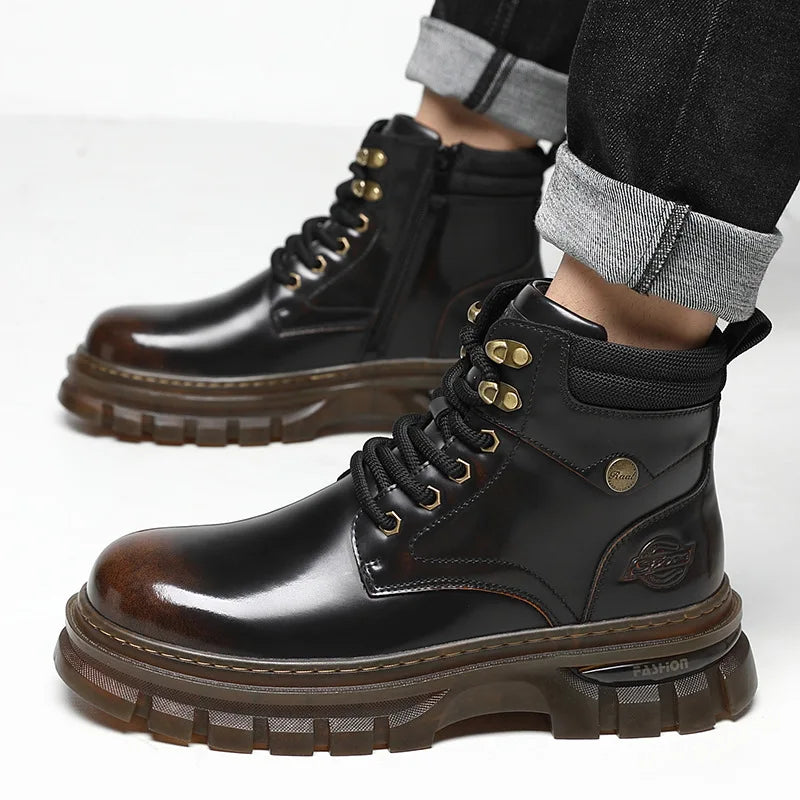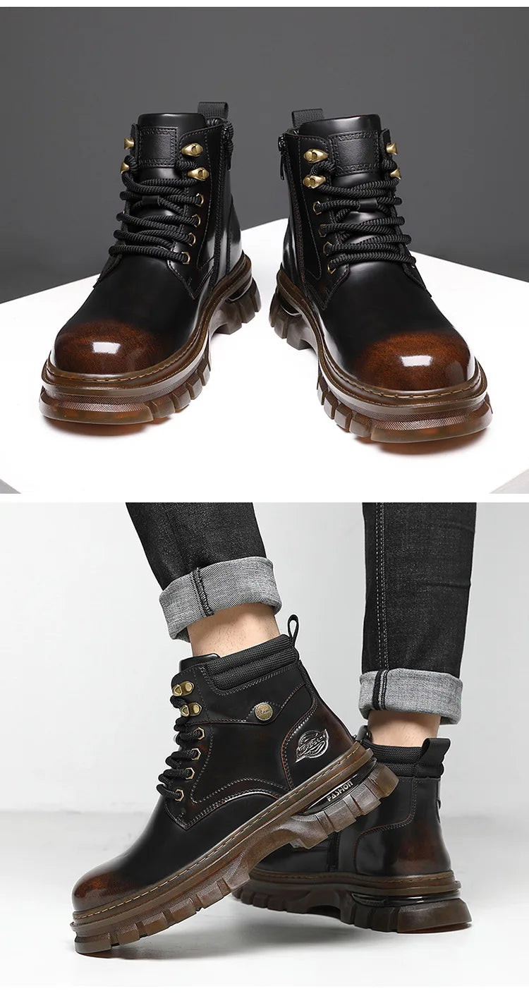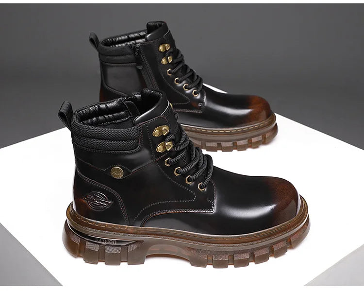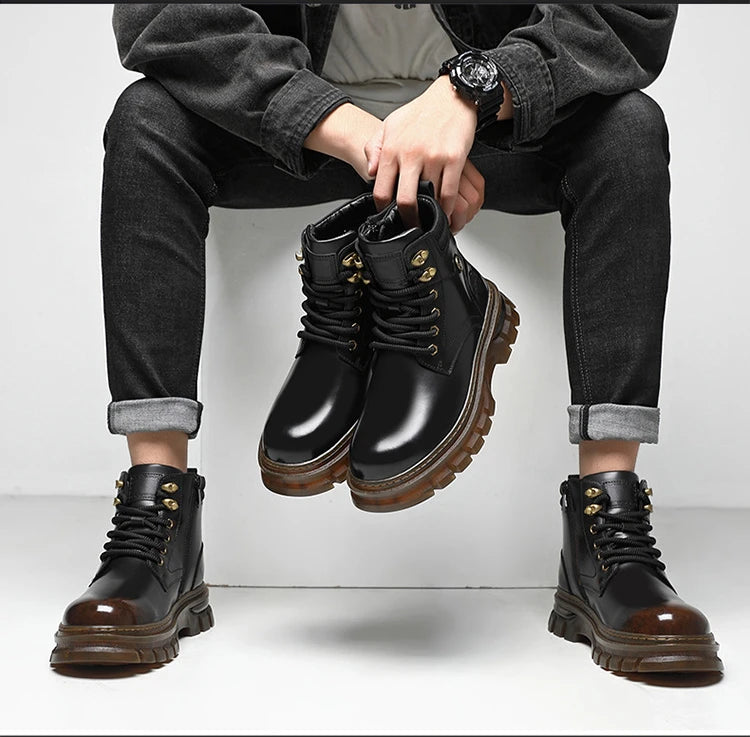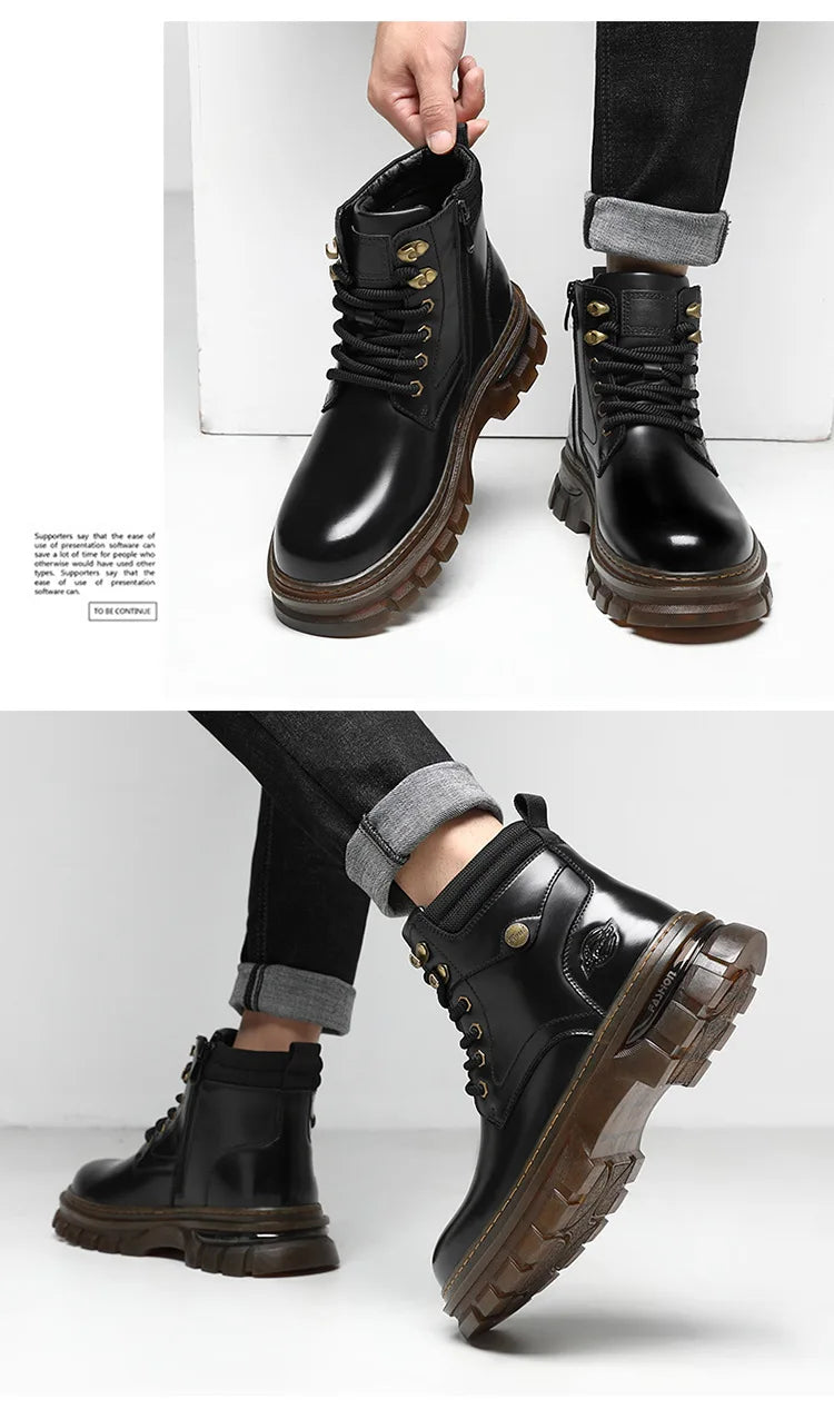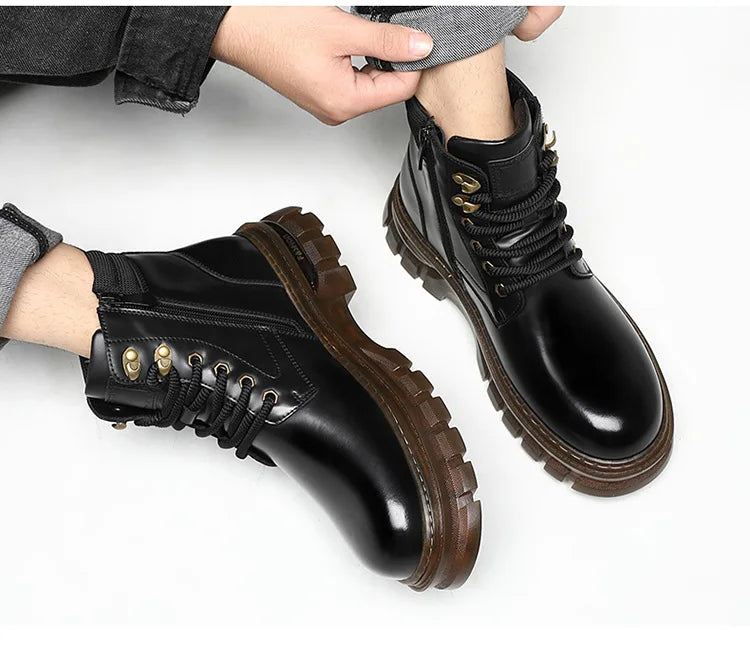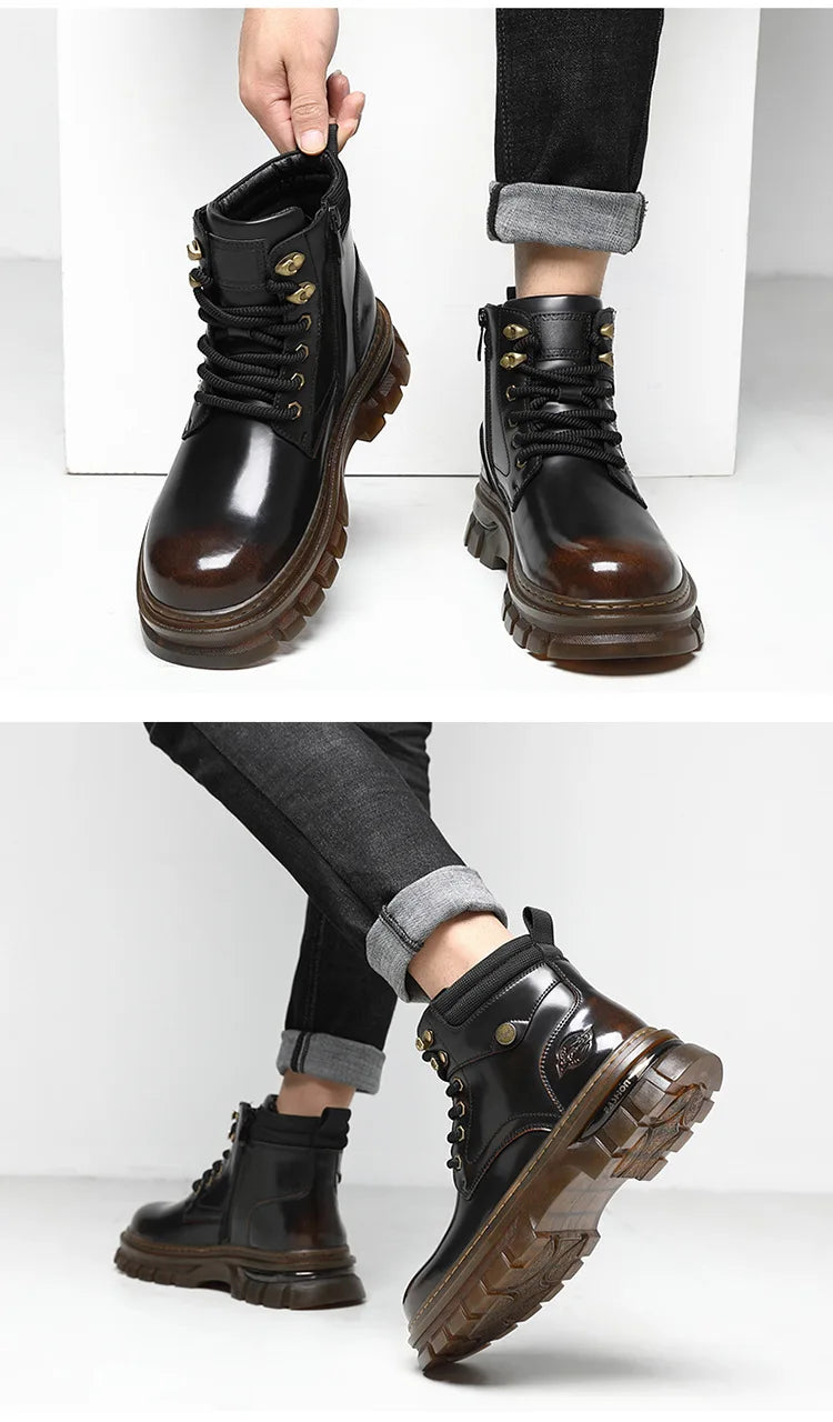 British Retro Leather Platform Boots for Men Fashion Casual Luxury Work Shoes...