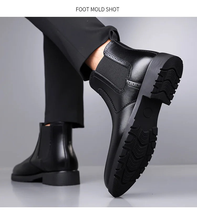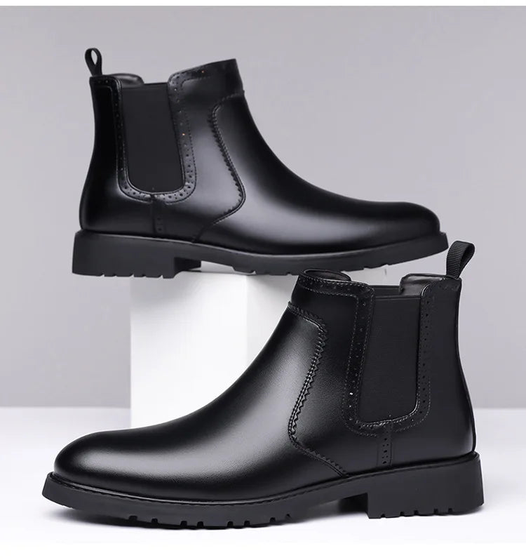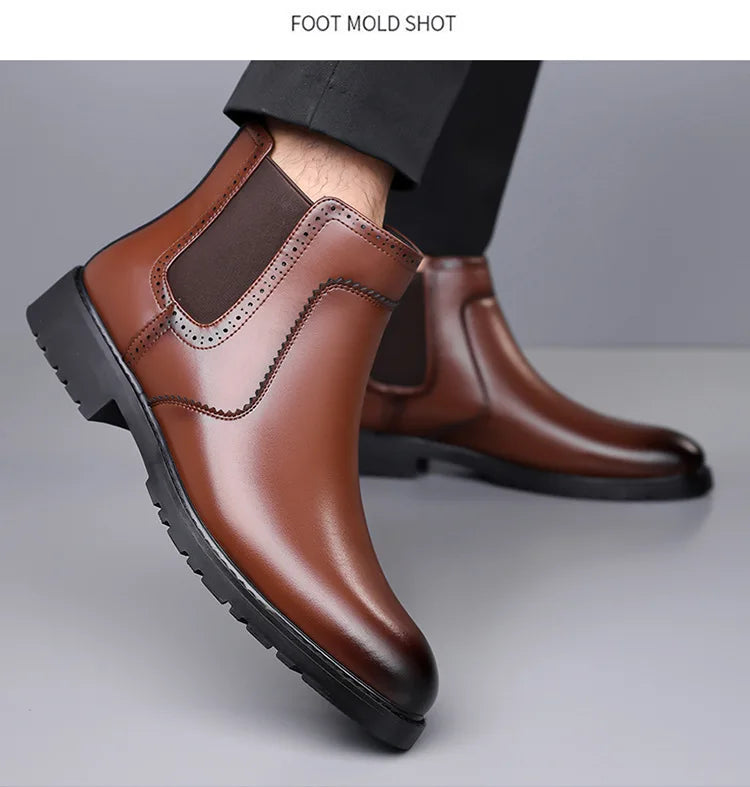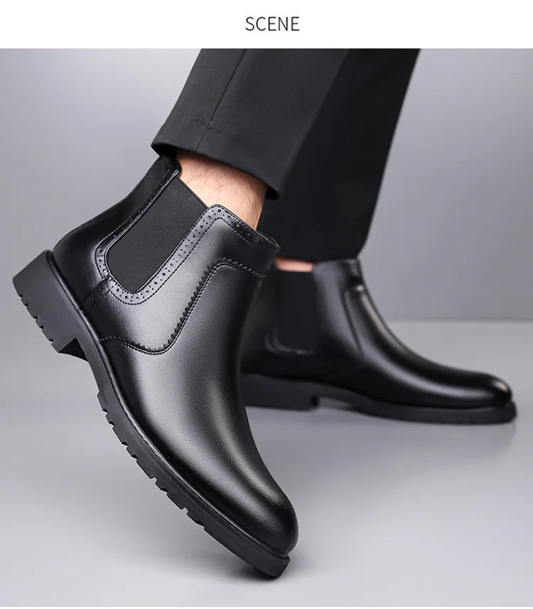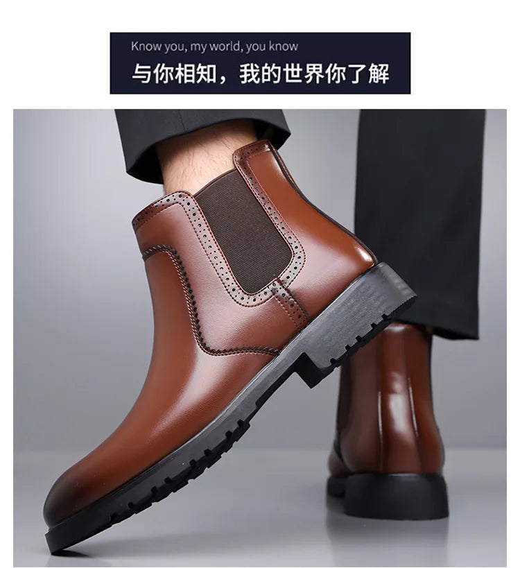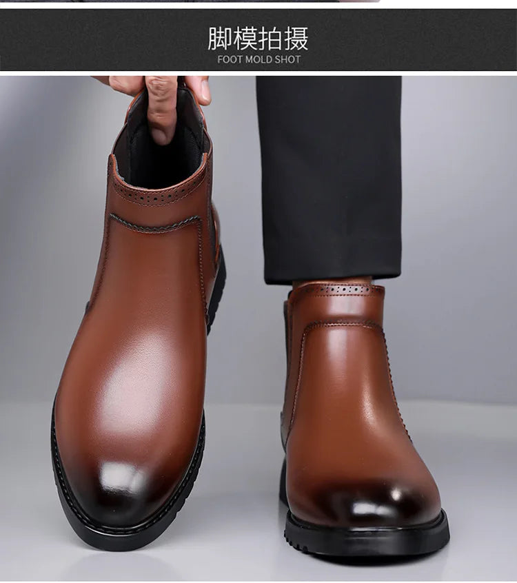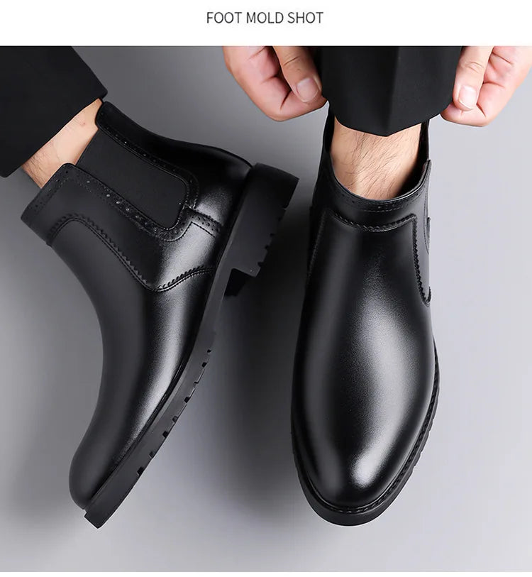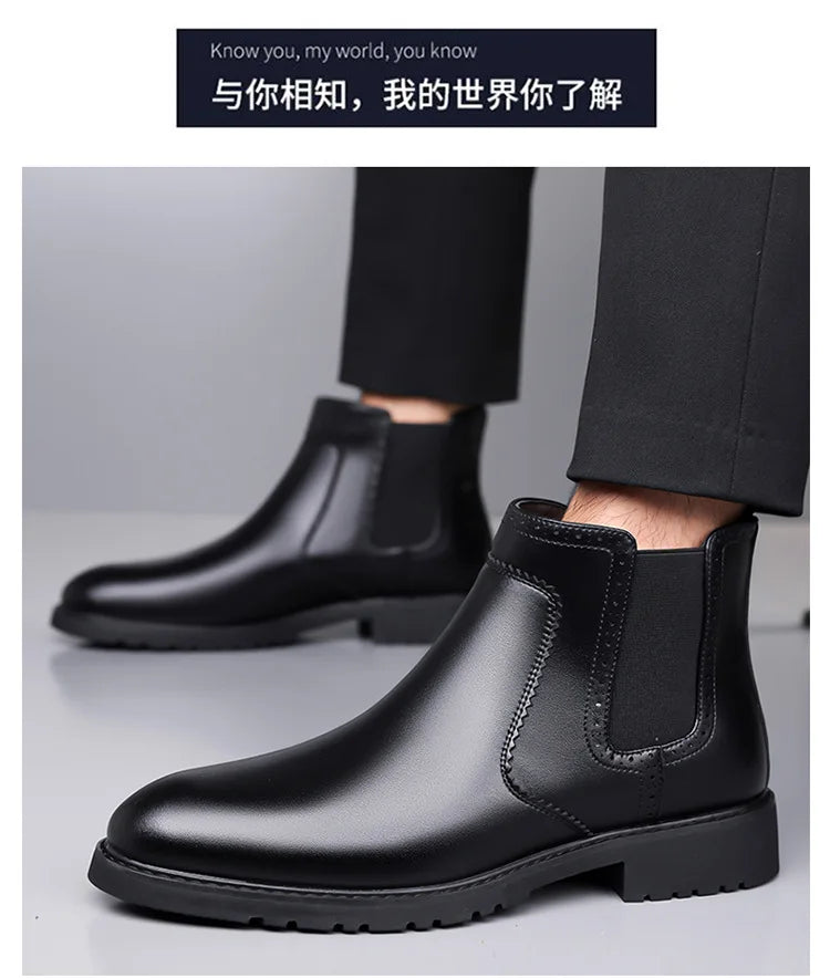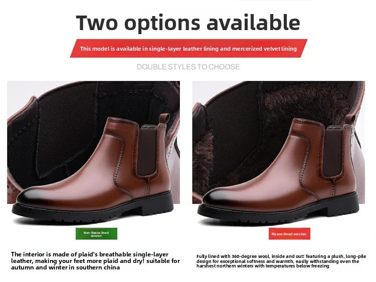 Business Formal Cotton Leather Shoes for Man Autumn Winter Fleece Thickened W...