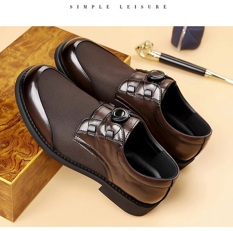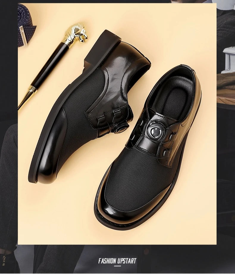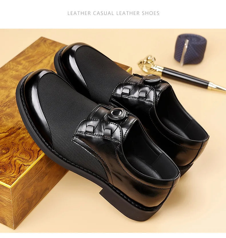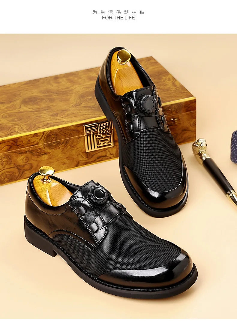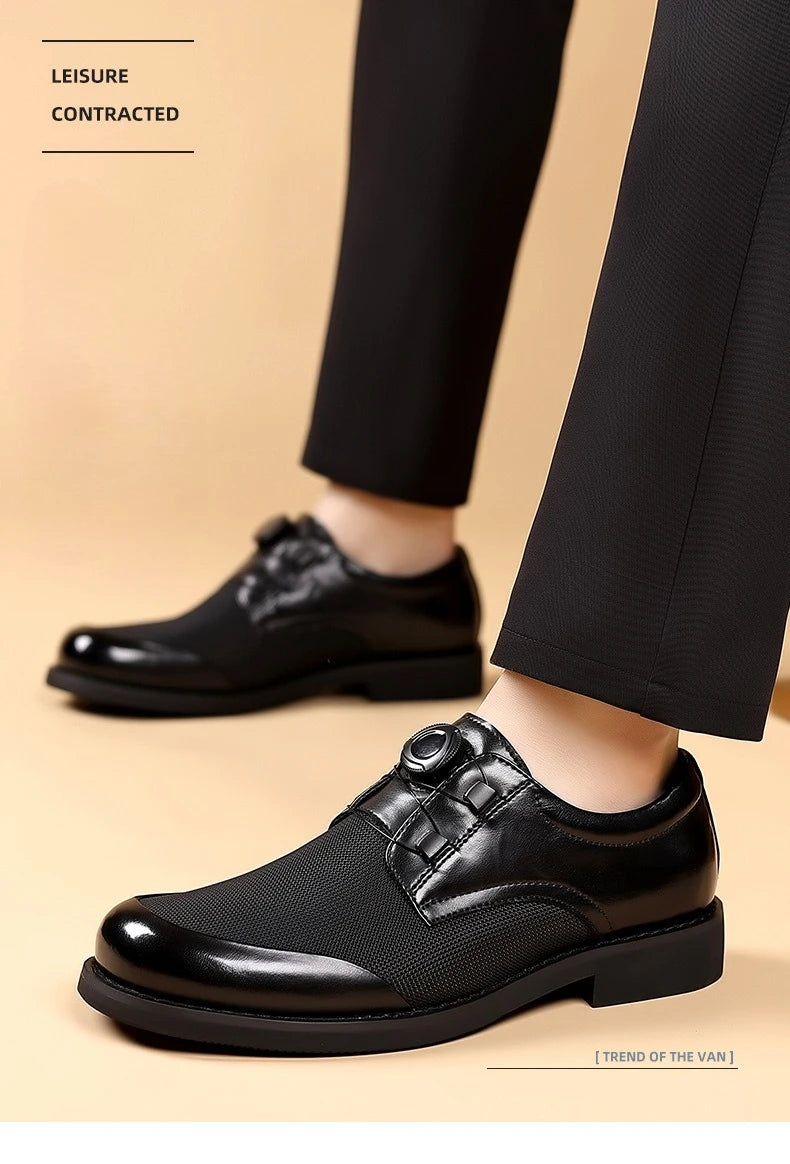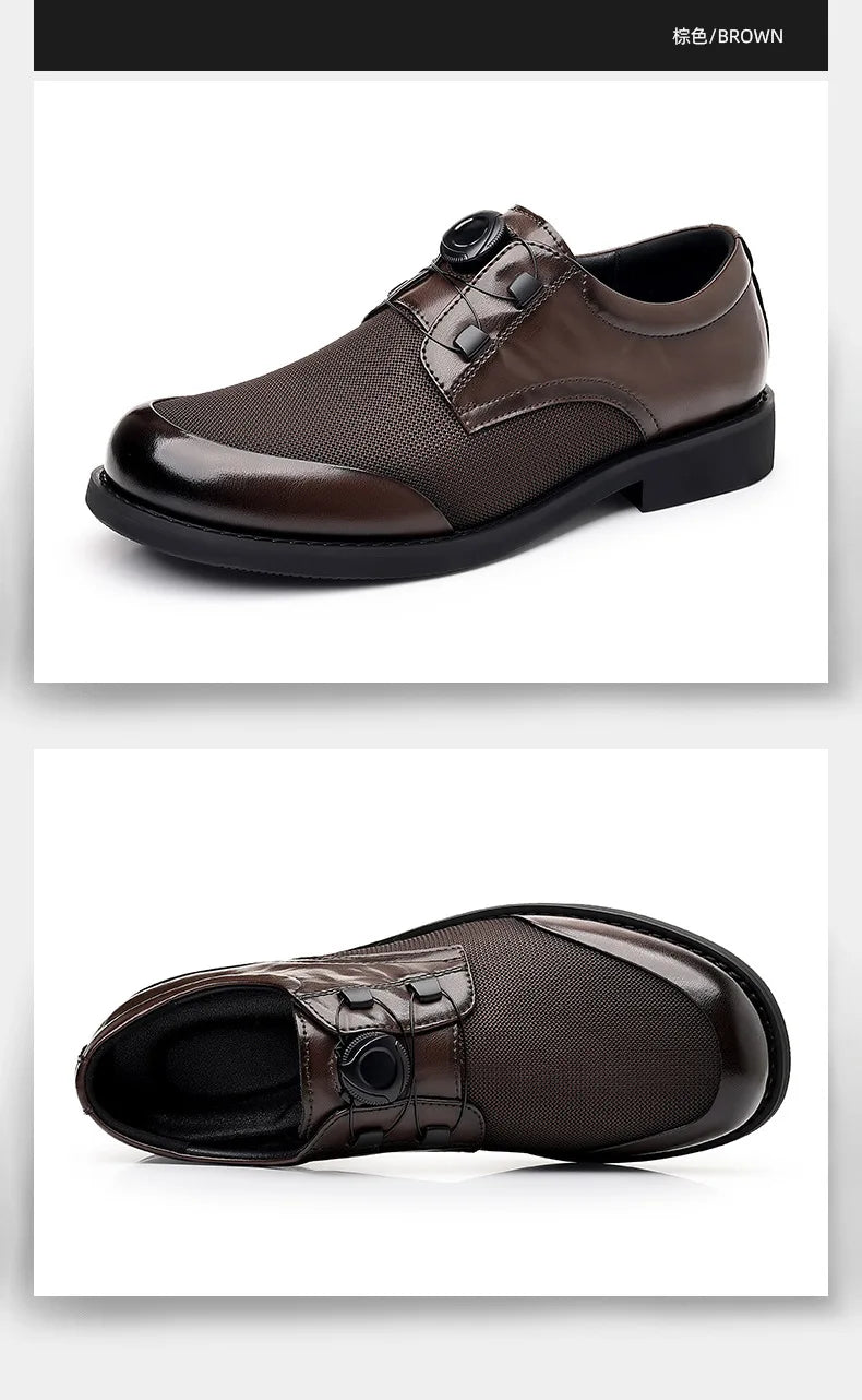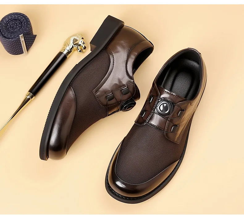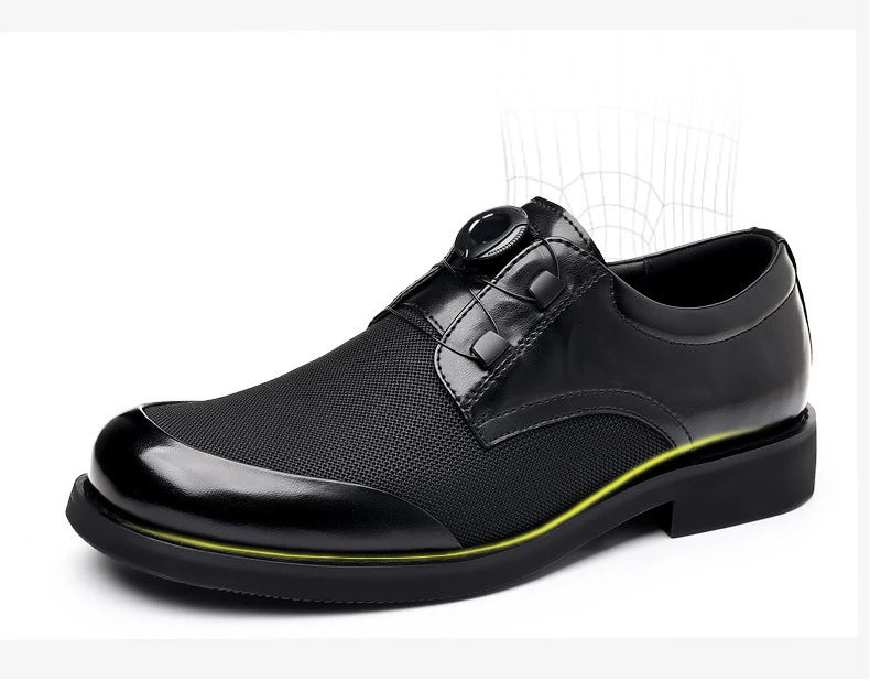 Korean style Business Casual Leather Shoes for Men Breathable Mesh Designer S...