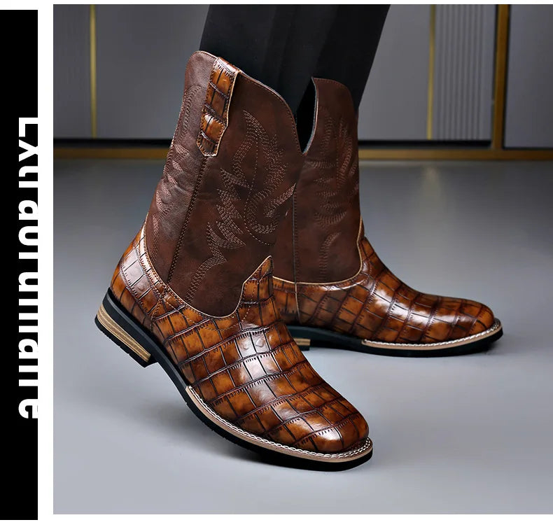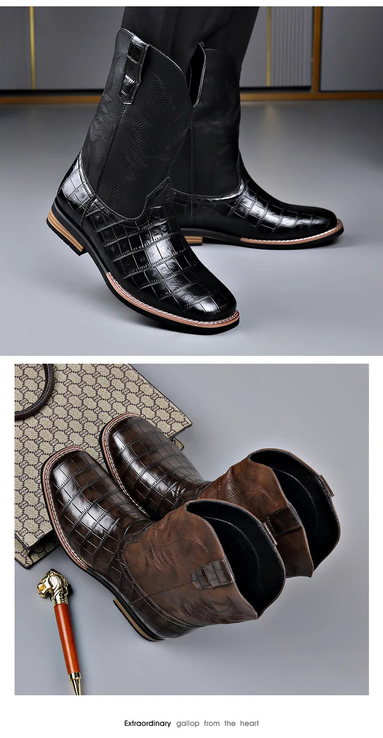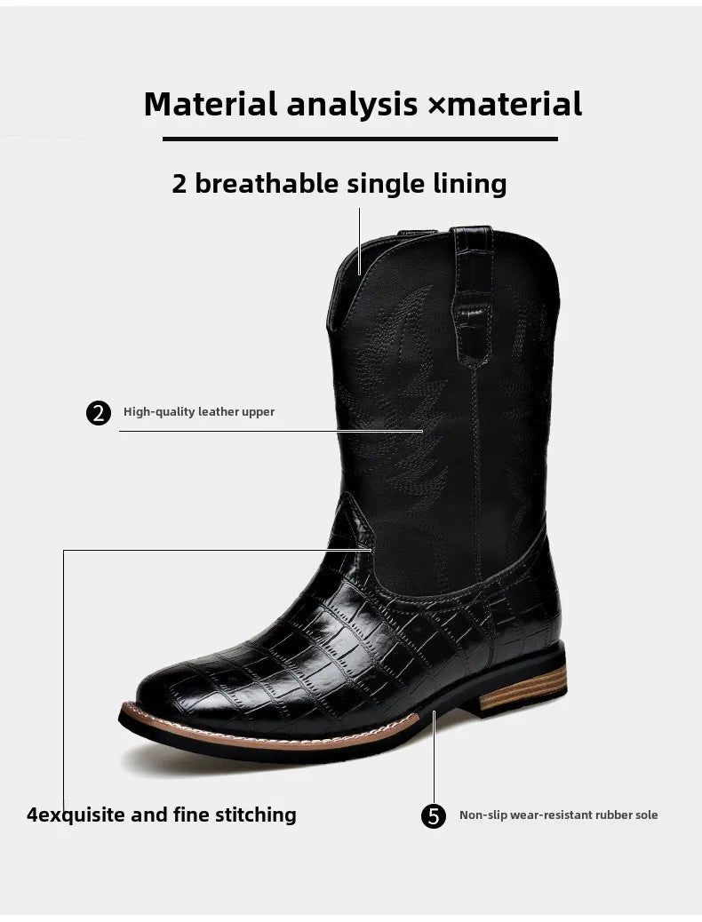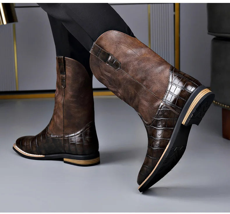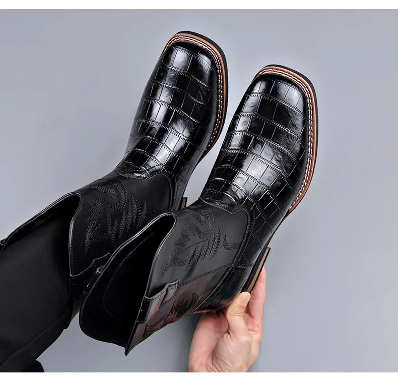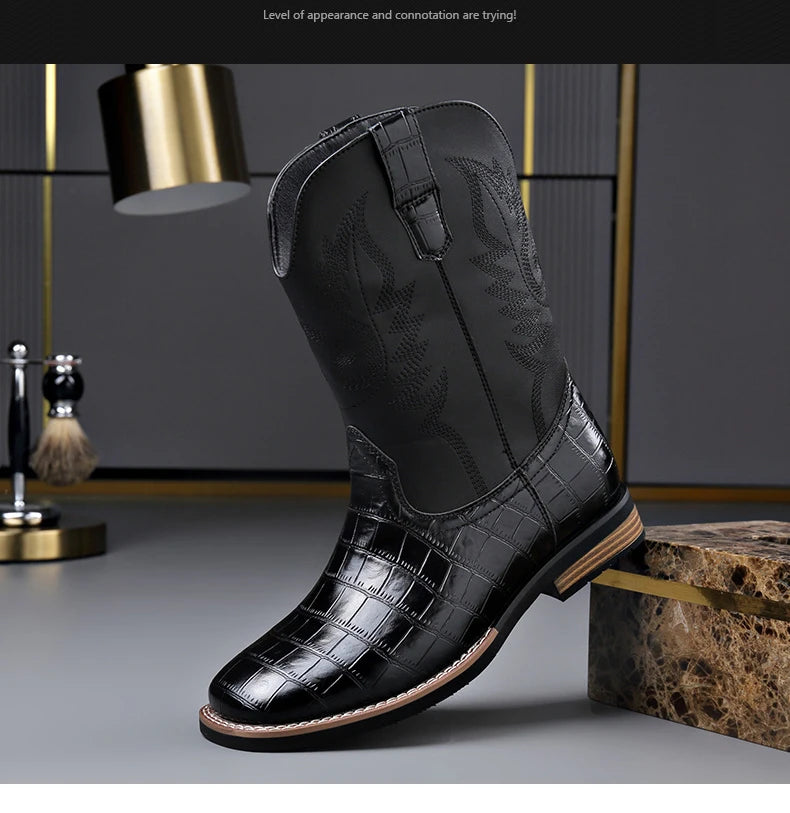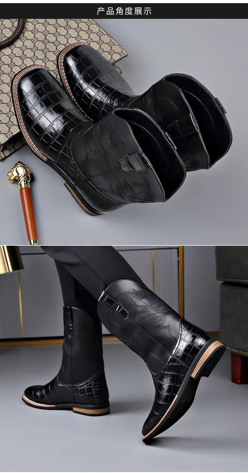 Leather Fashion Casual Cowboy Boots for Men Autumn Winter Designer Stone Patt...