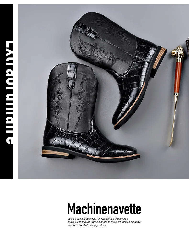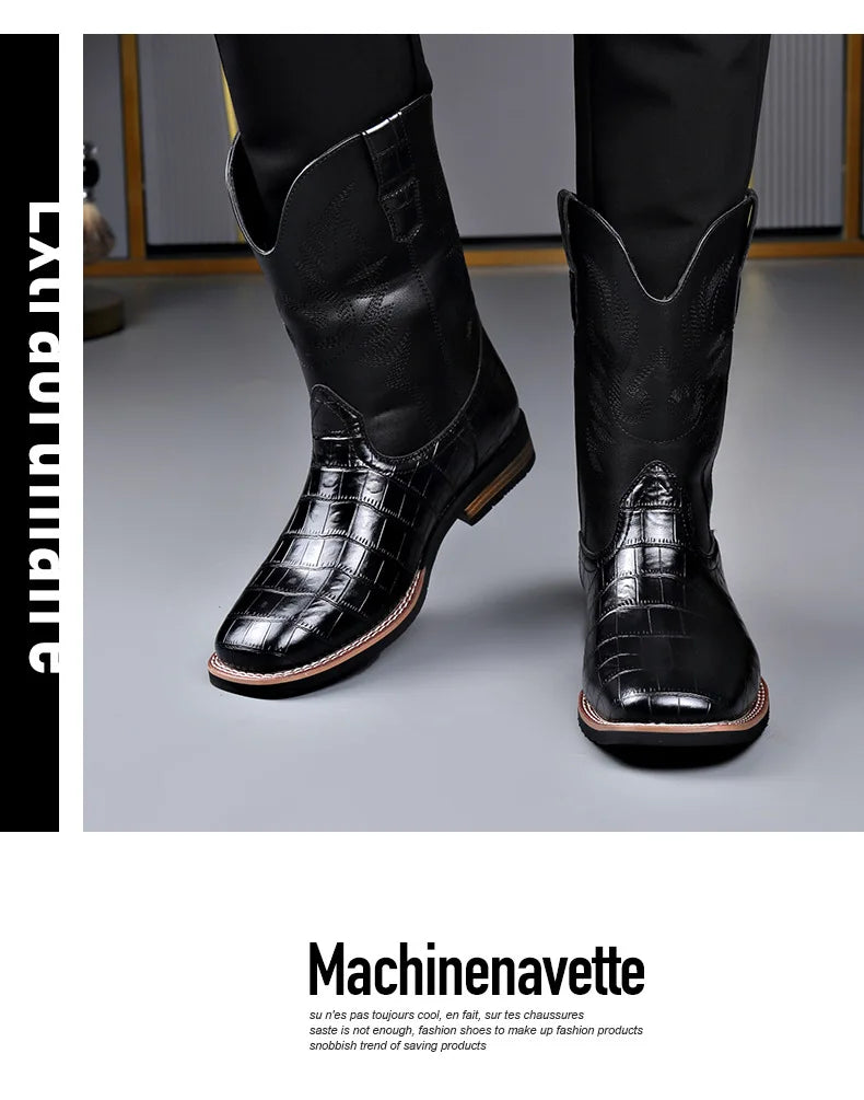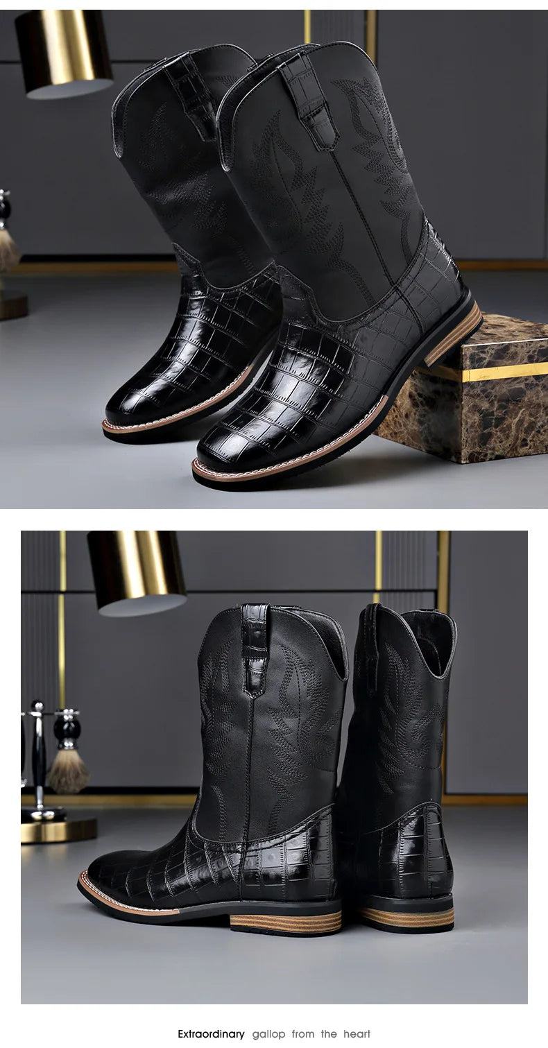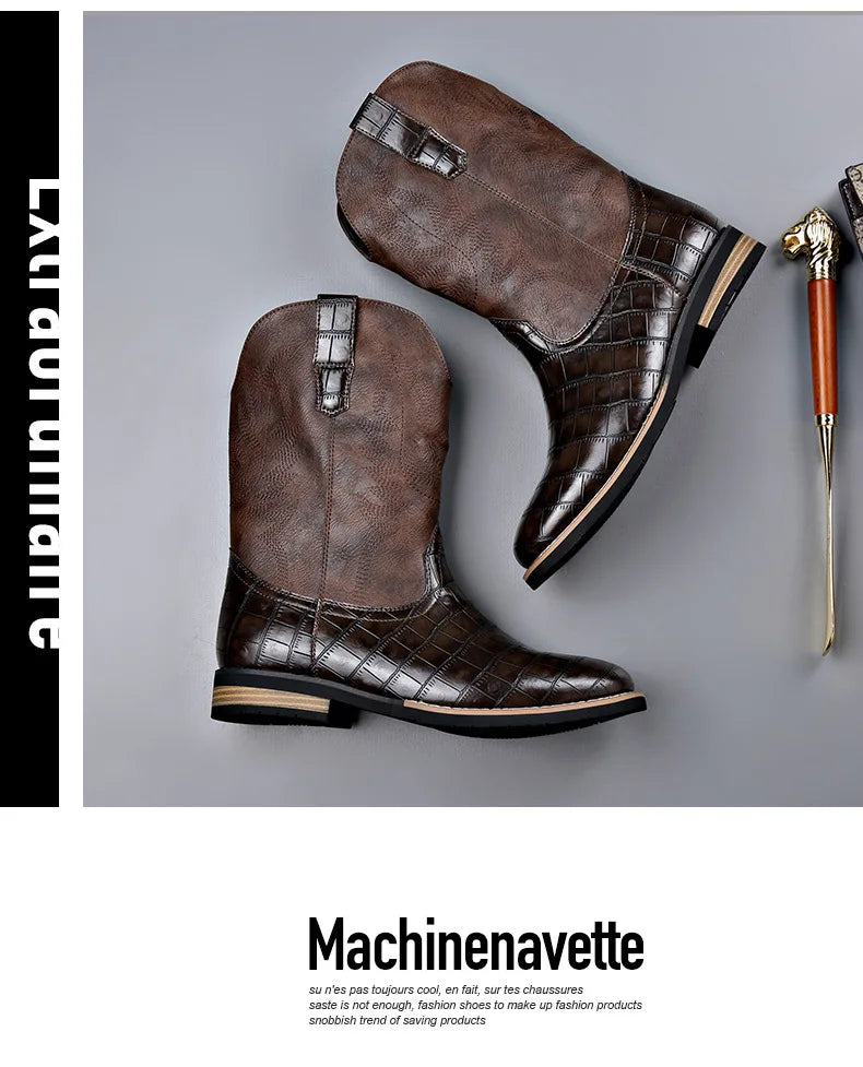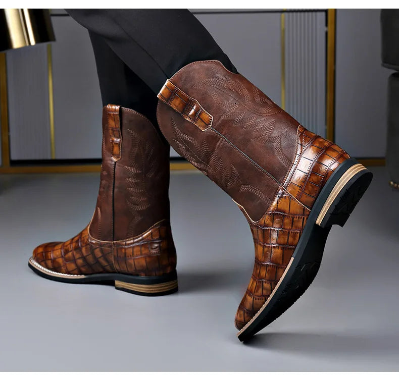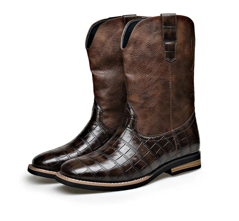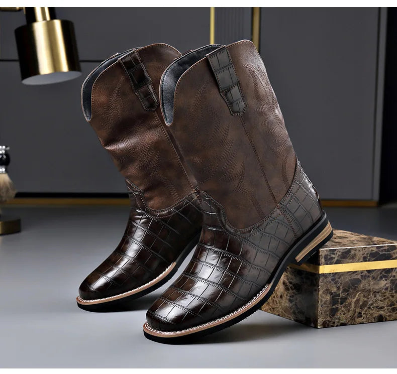 Leather Fashion Casual Cowboy Boots for Men Autumn Winter Designer Stone Patt...