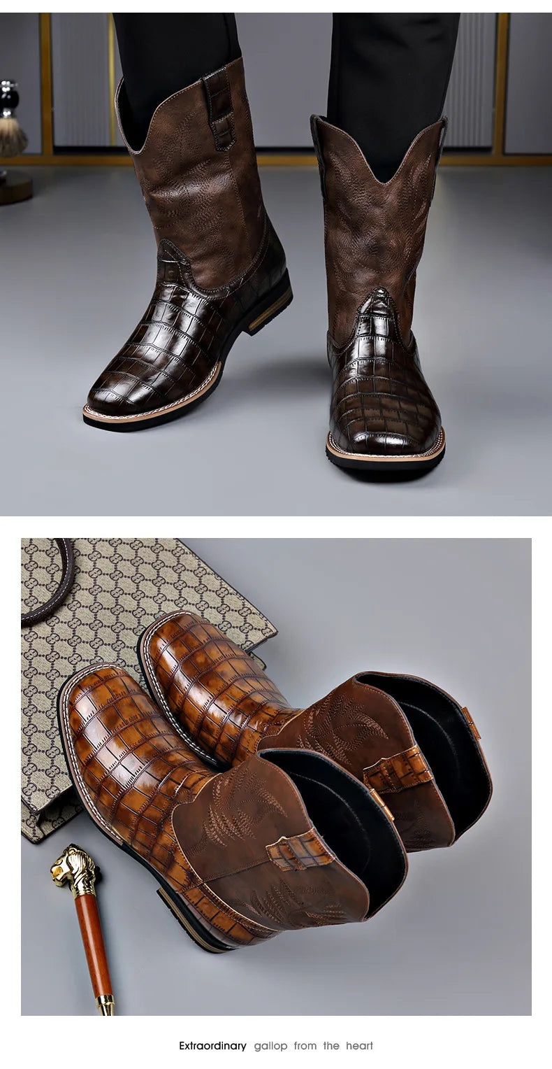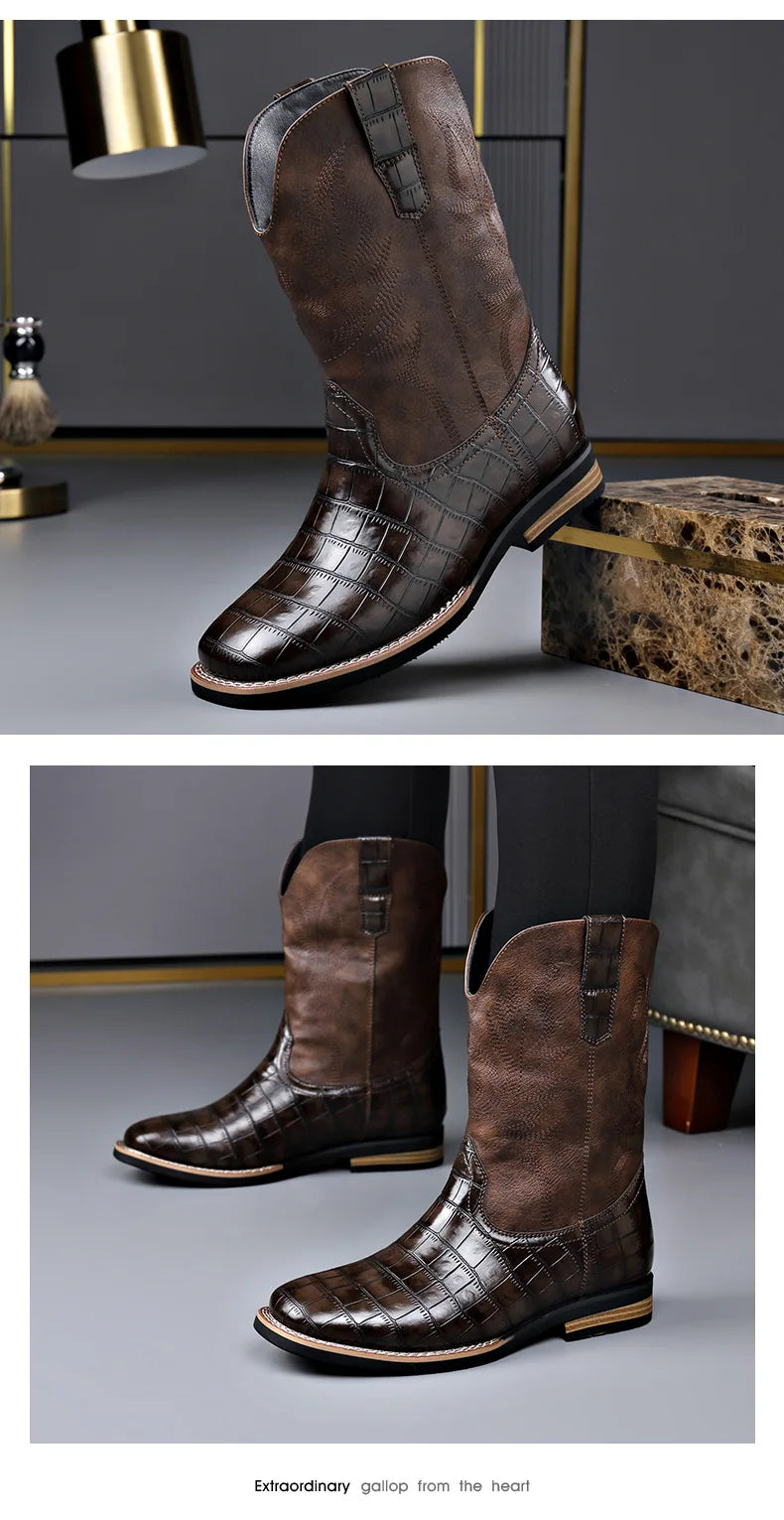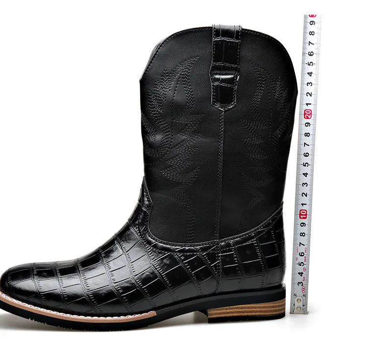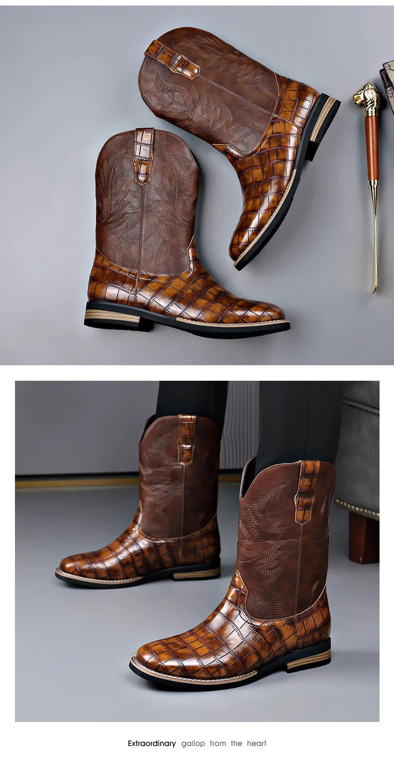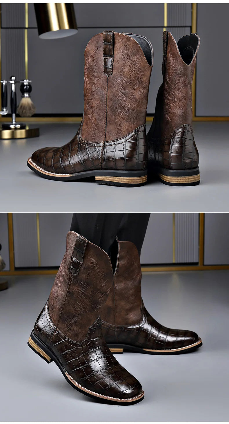 Leather Fashion Casual Cowboy Boots for Men Autumn Winter Designer Stone Patt...