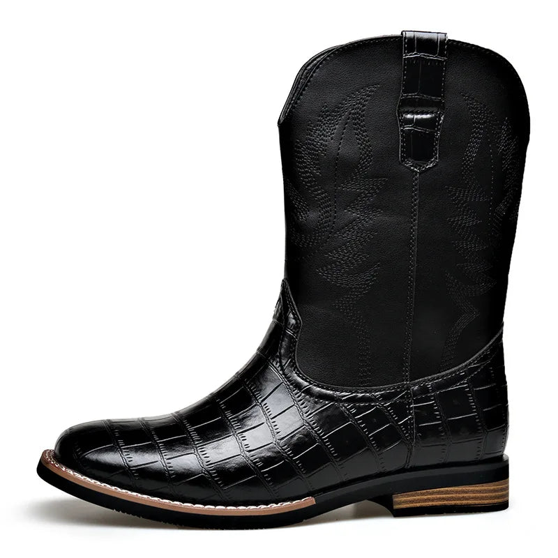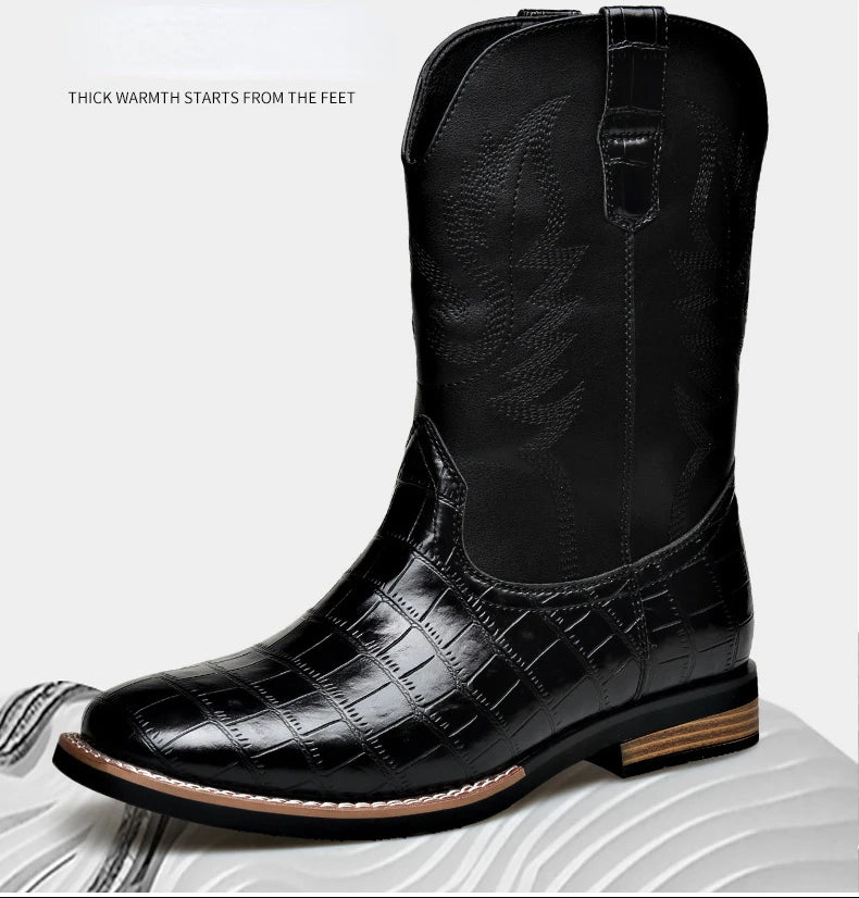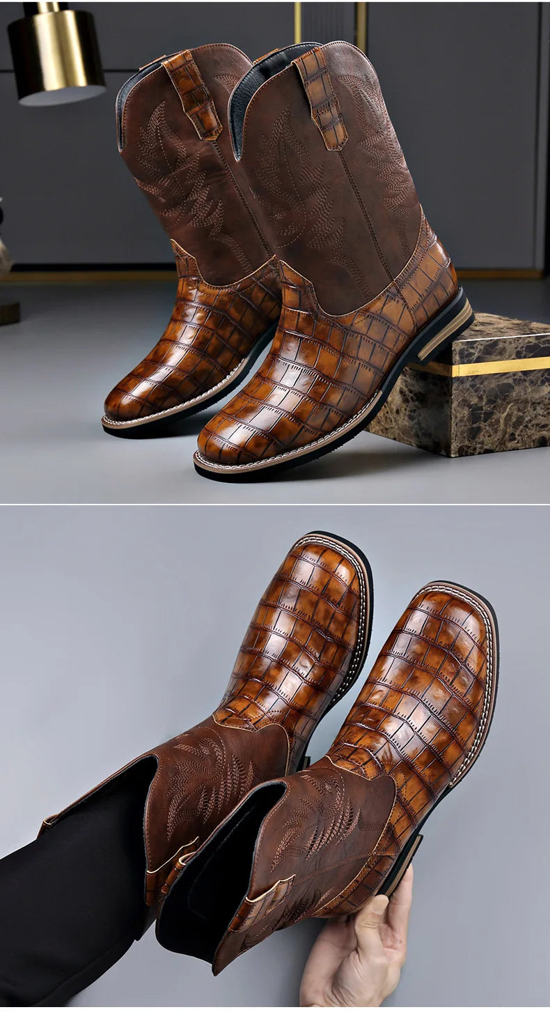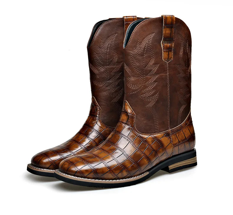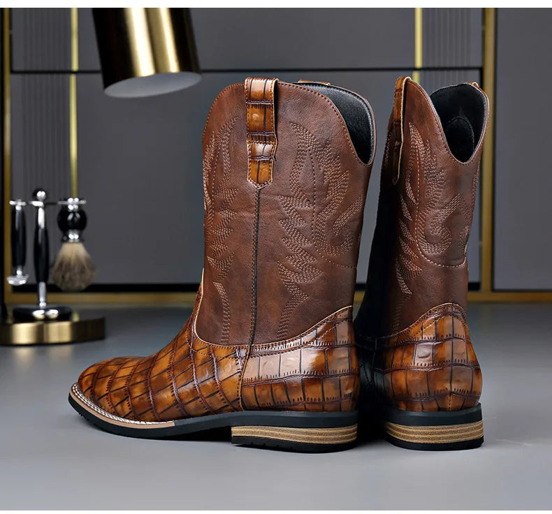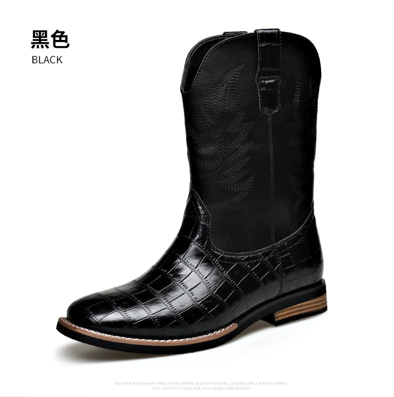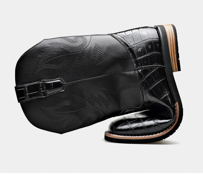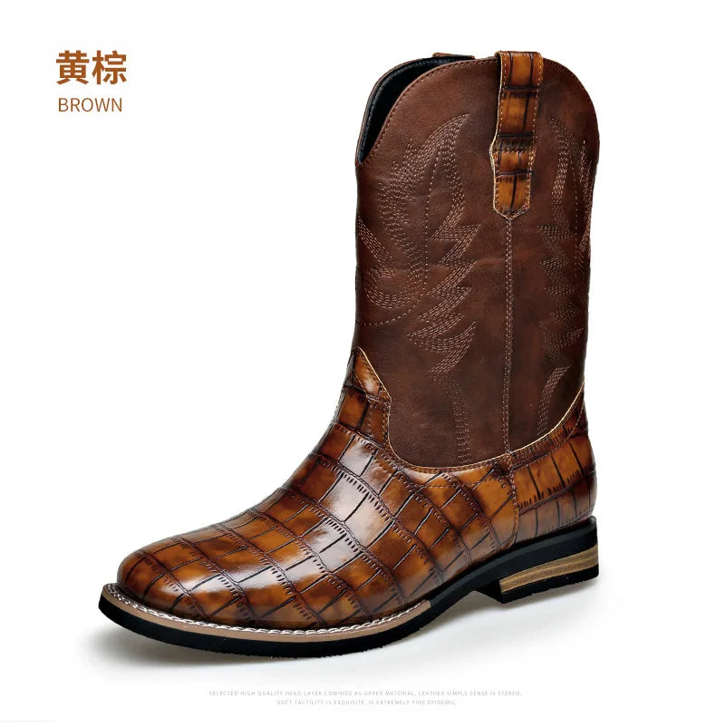 Leather Fashion Casual Cowboy Boots for Men Autumn Winter Designer Stone Patt...