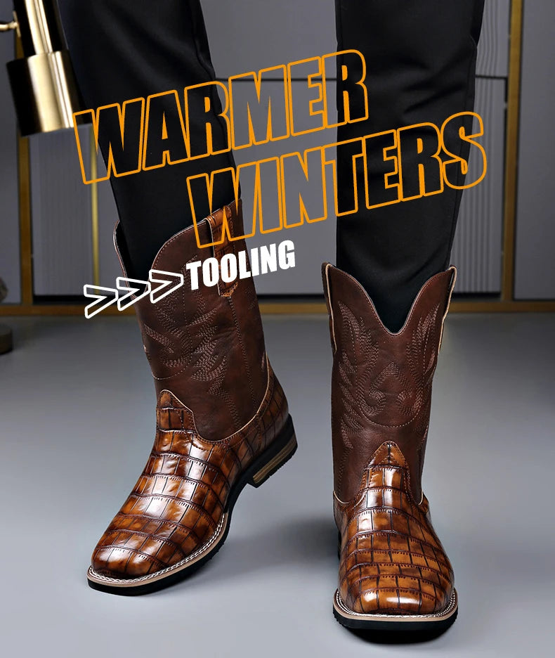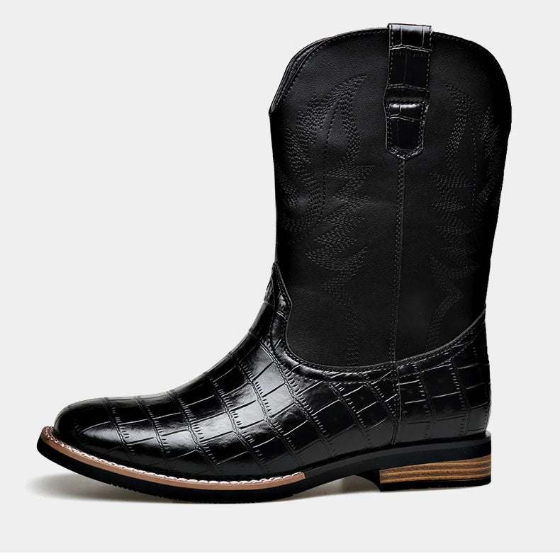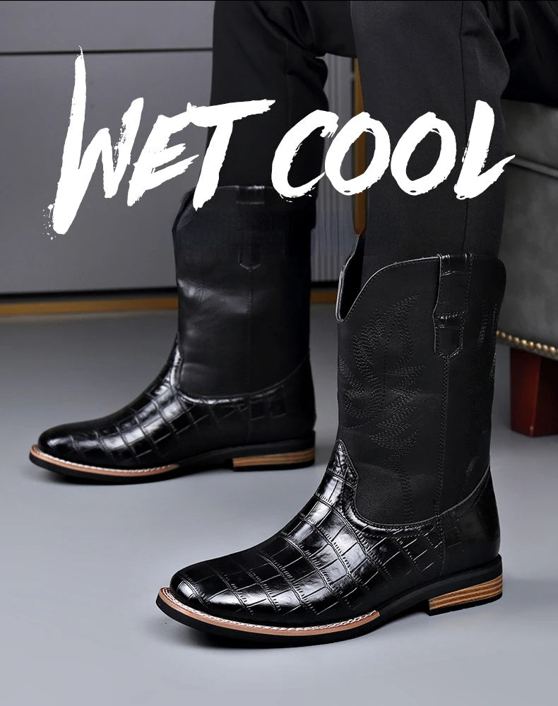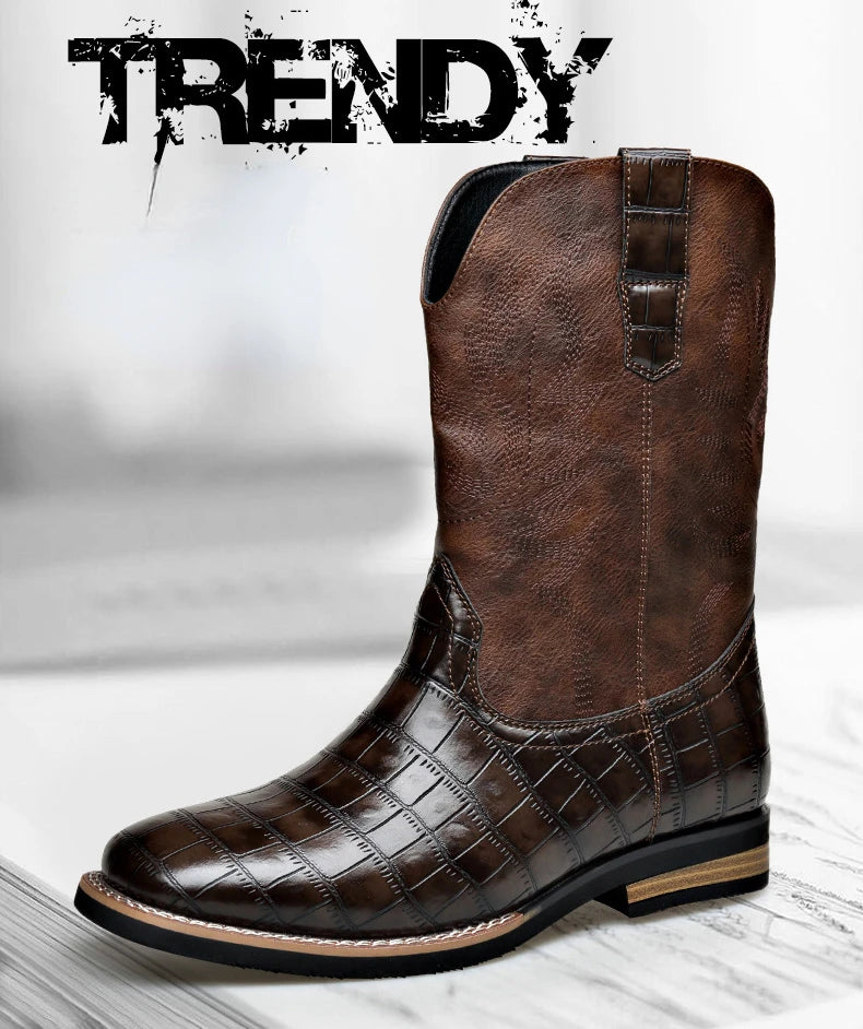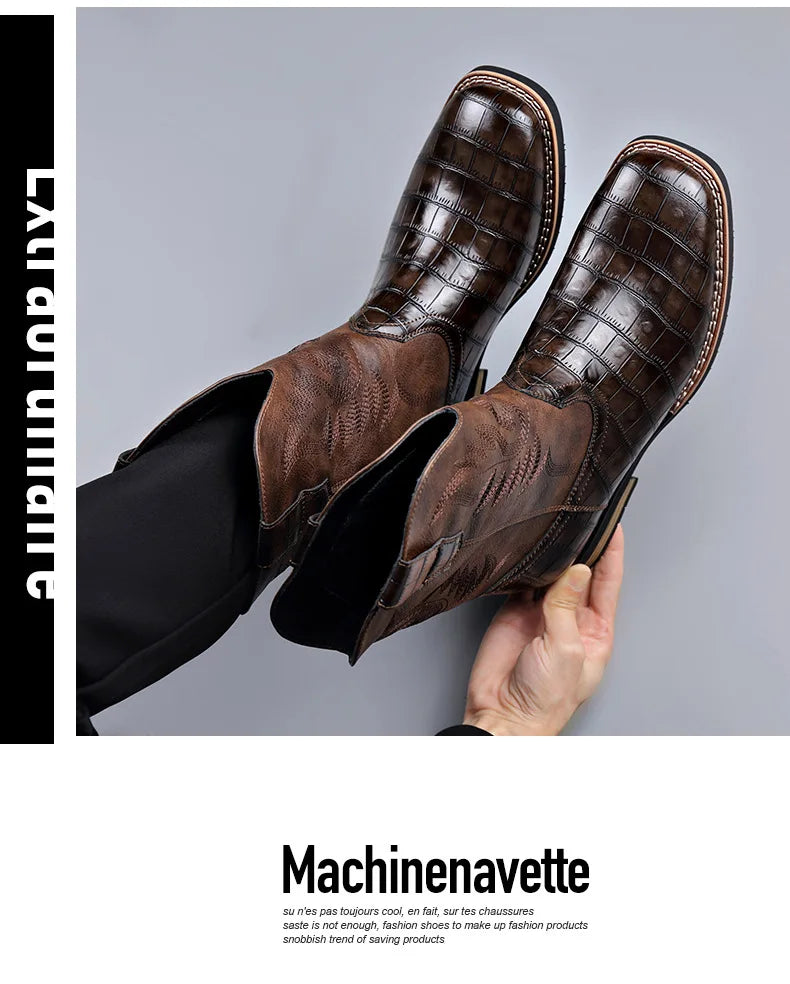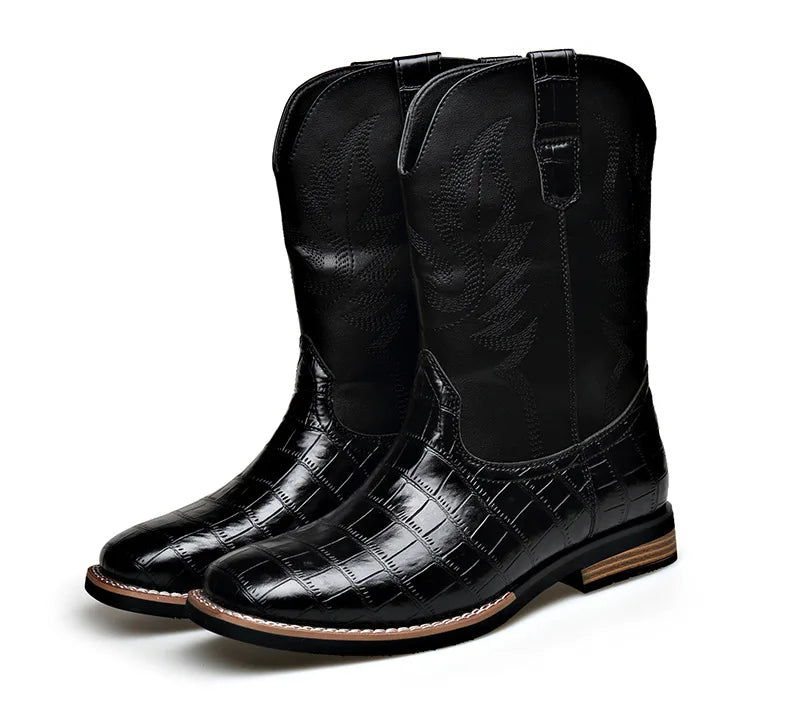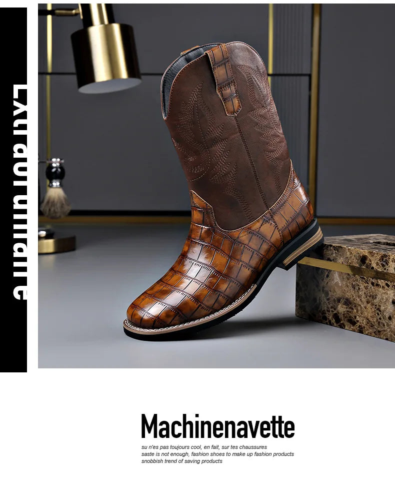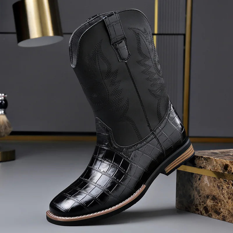 Leather Fashion Casual Cowboy Boots for Men Autumn Winter Designer Stone Patt...