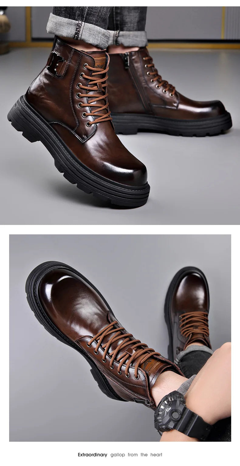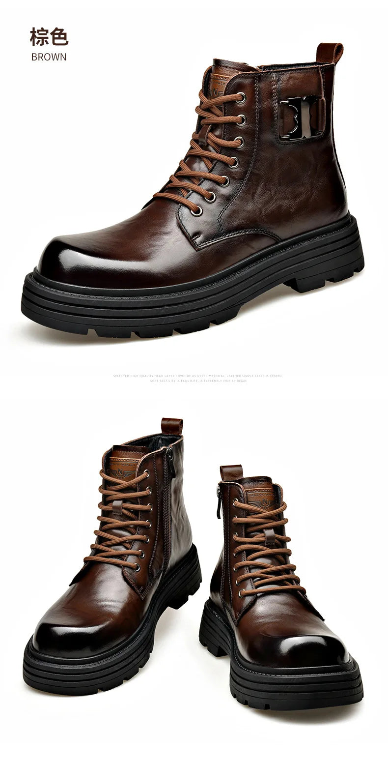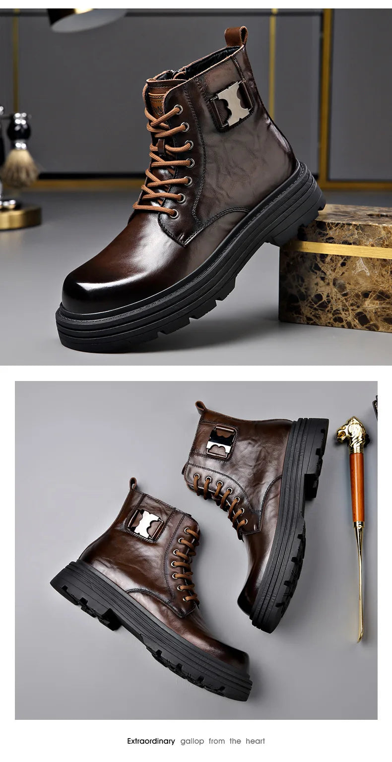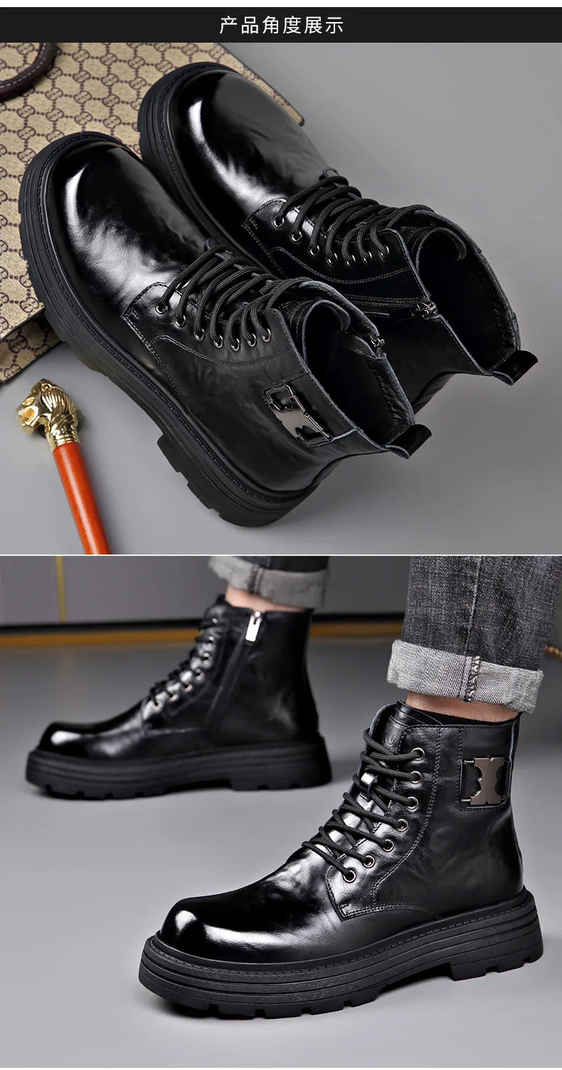 Designer Leather Boots for Men Autumn Winter British Wool Motorcycle Boots Ma...