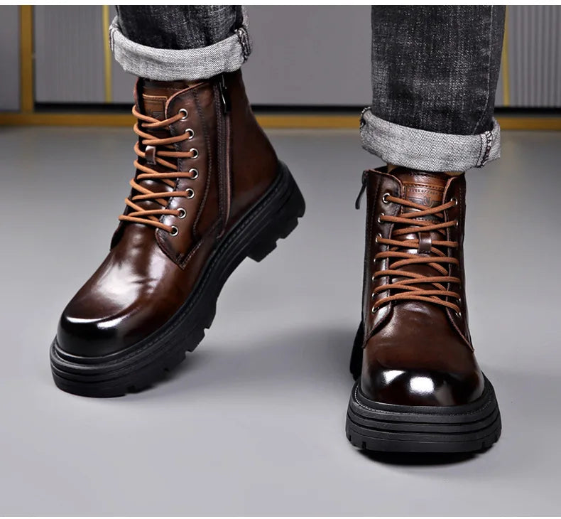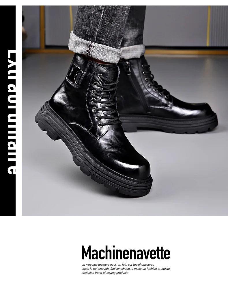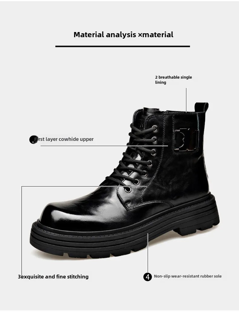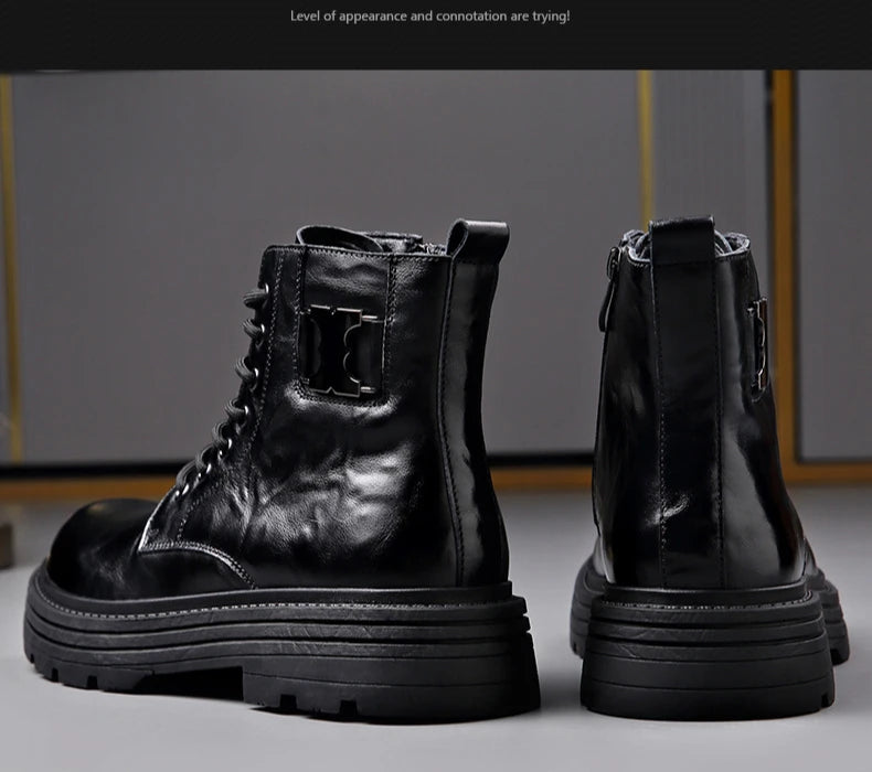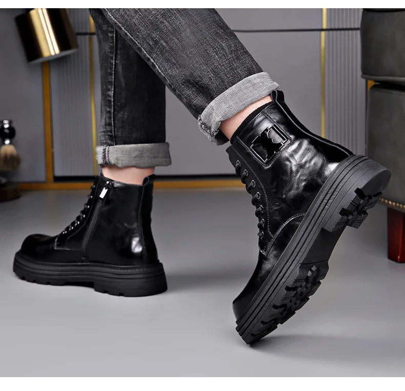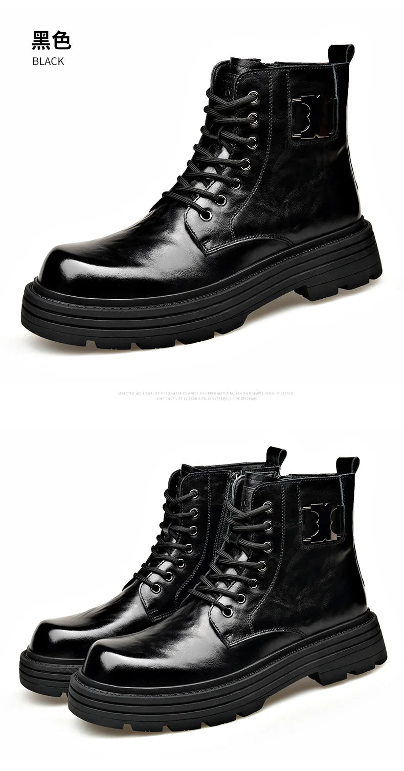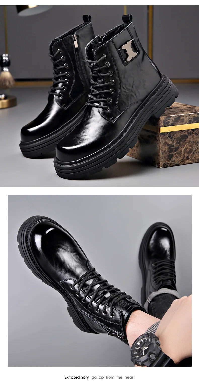 Designer Leather Boots for Men Autumn Winter British Wool Motorcycle Boots Ma...