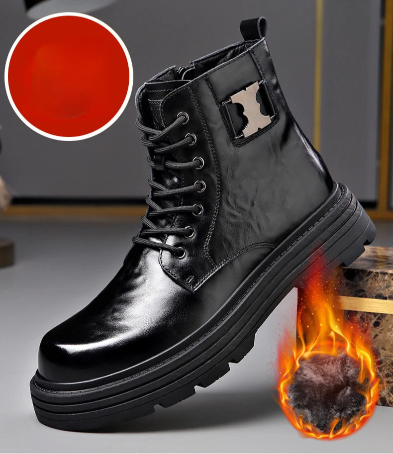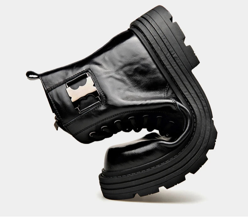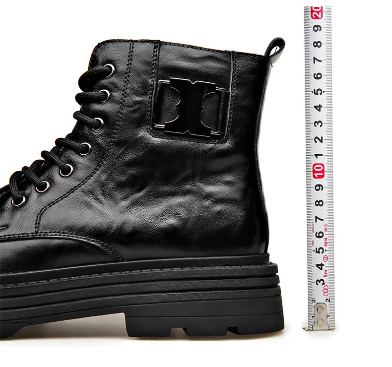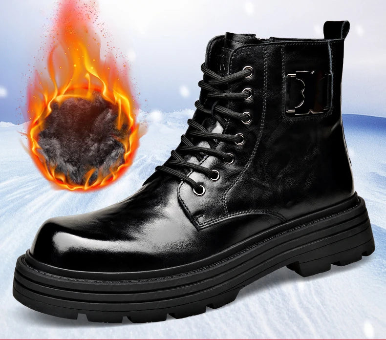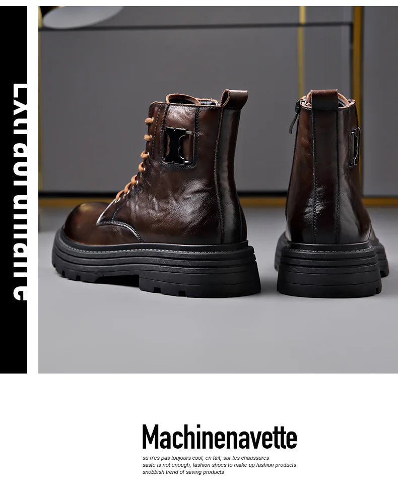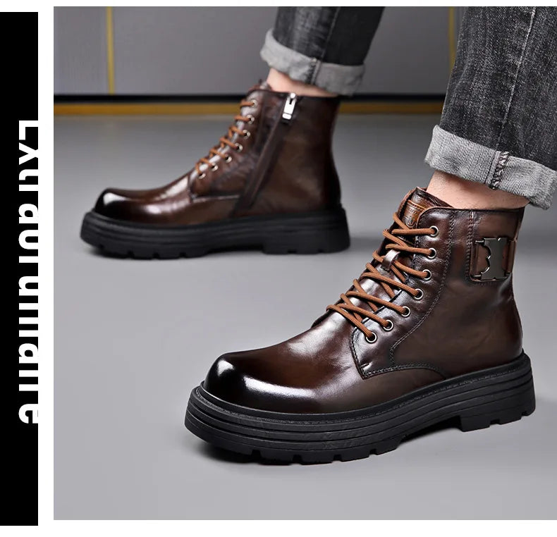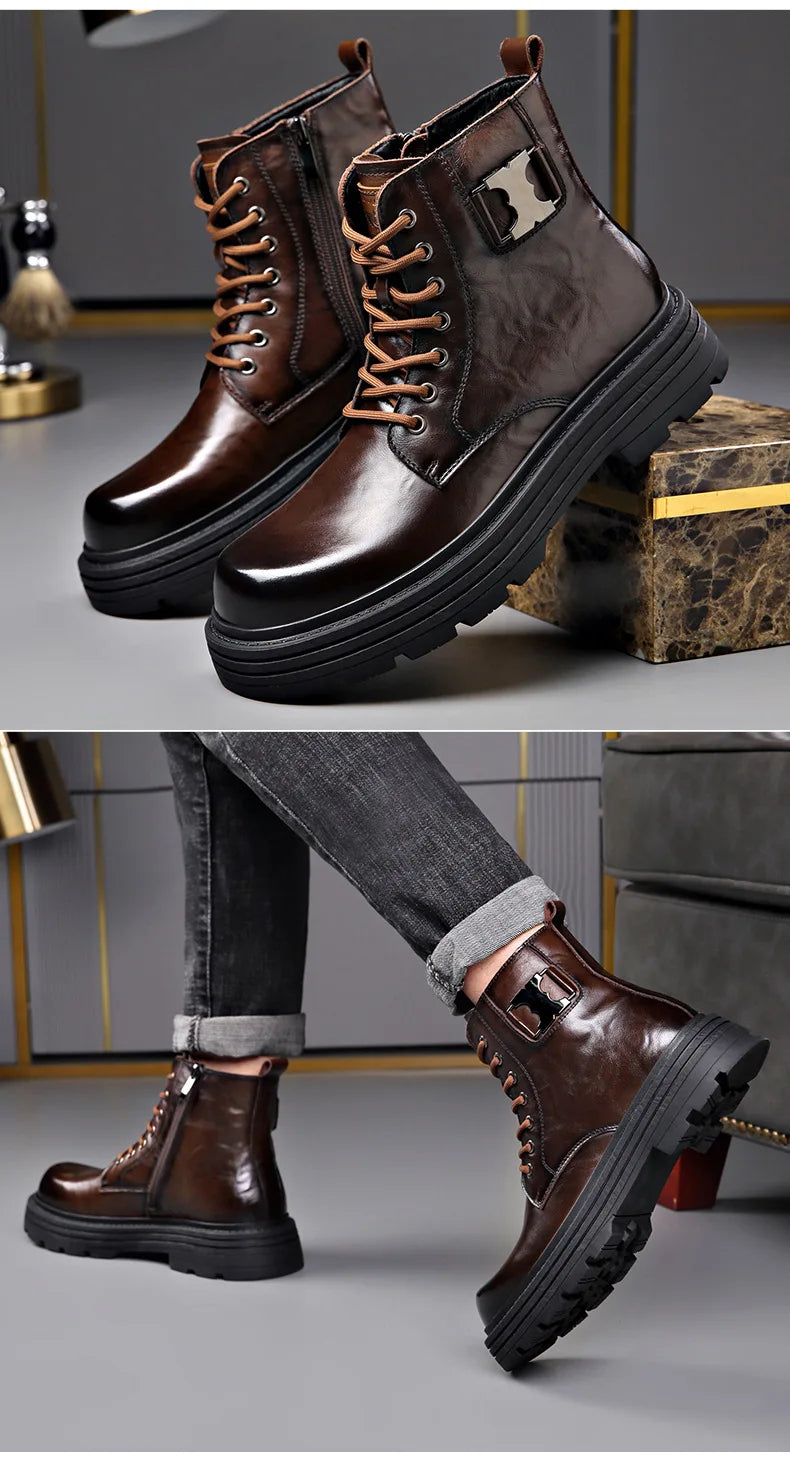 Designer Leather Boots for Men Autumn Winter British Wool Motorcycle Boots Ma...