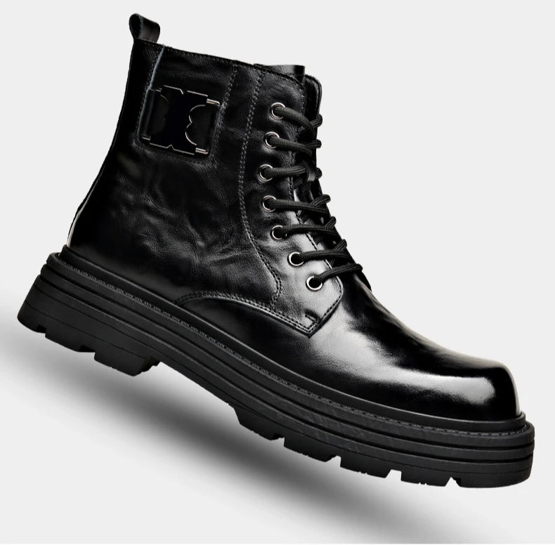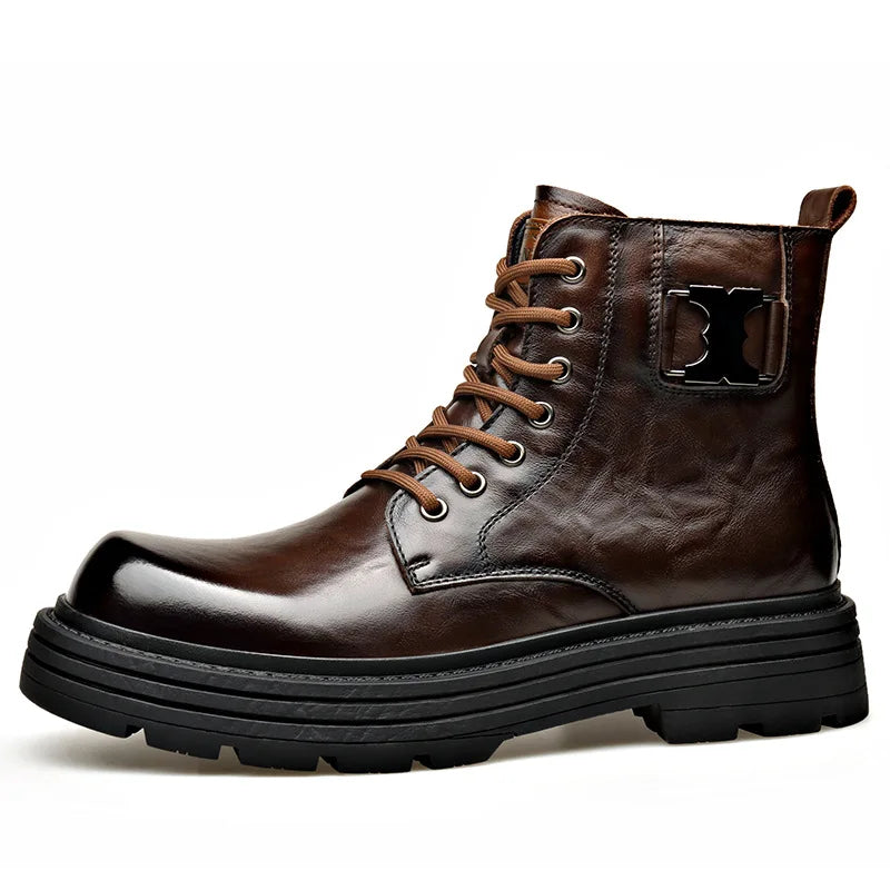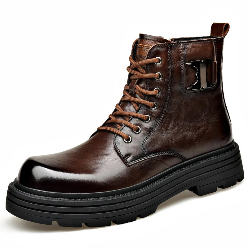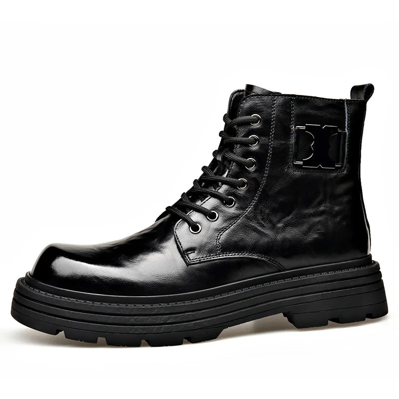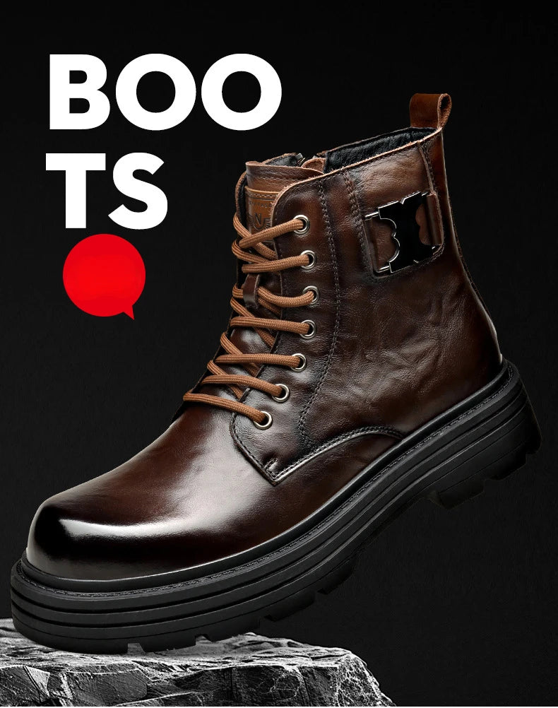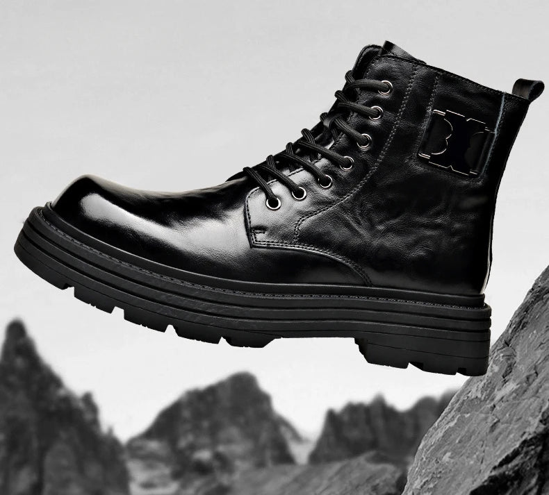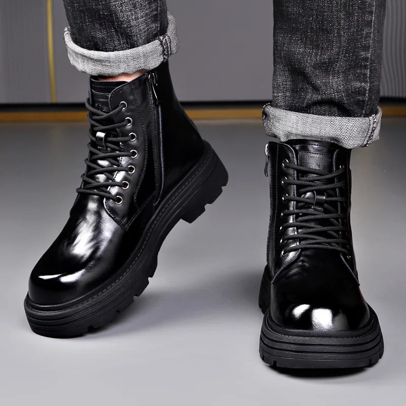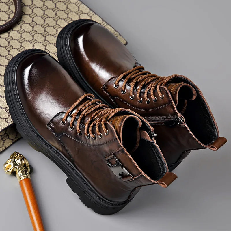 Designer Leather Boots for Men Autumn Winter British Wool Motorcycle Boots Ma...