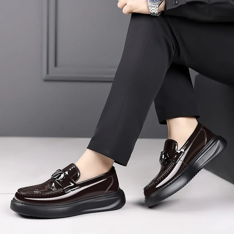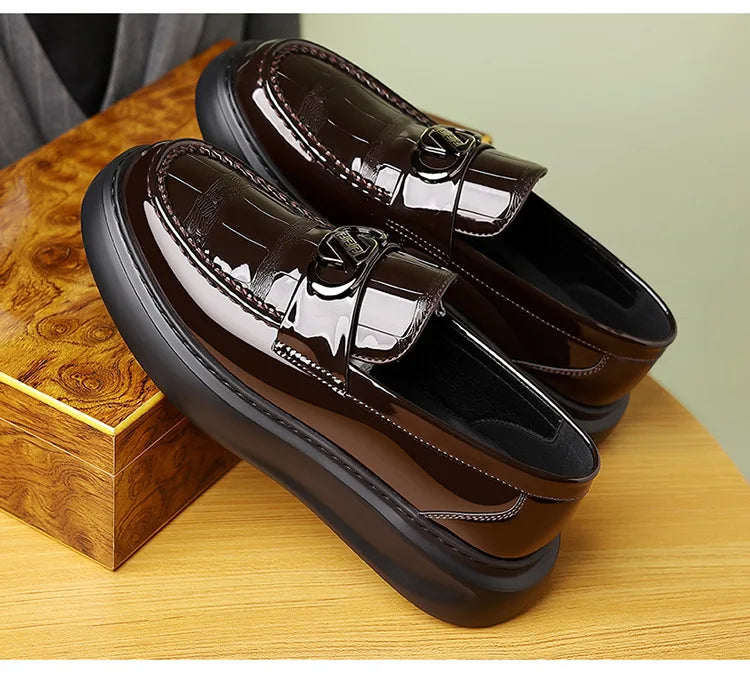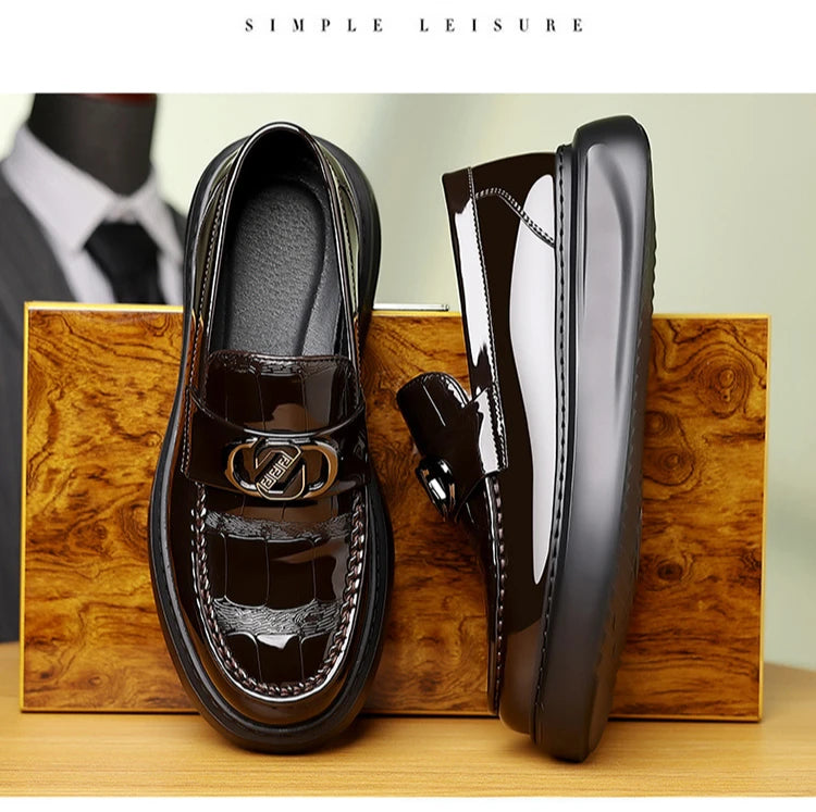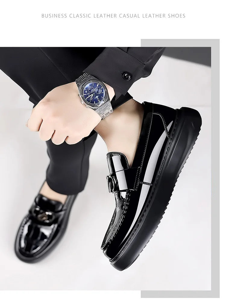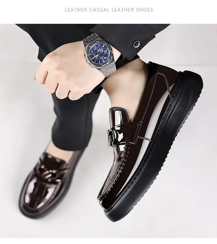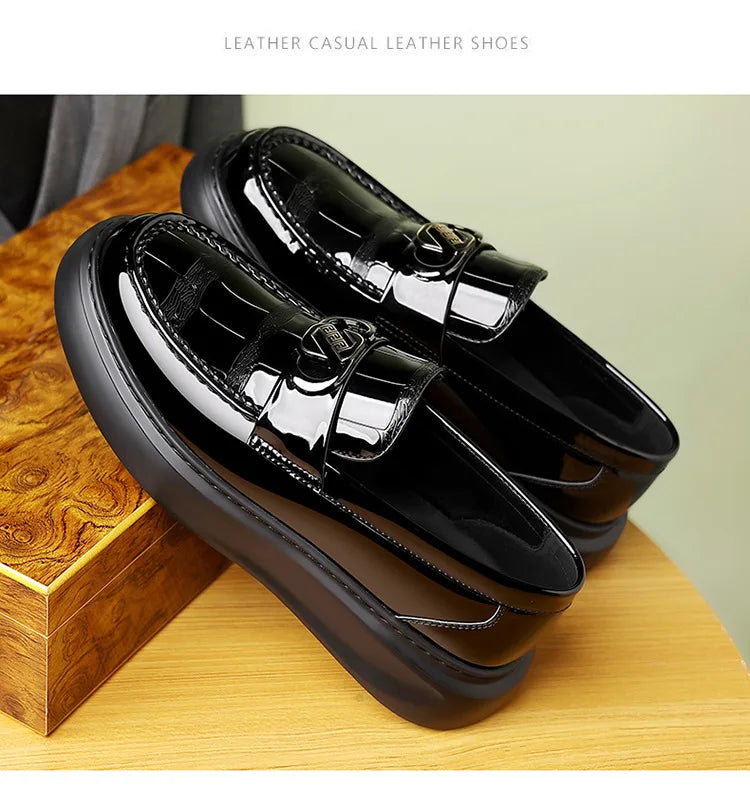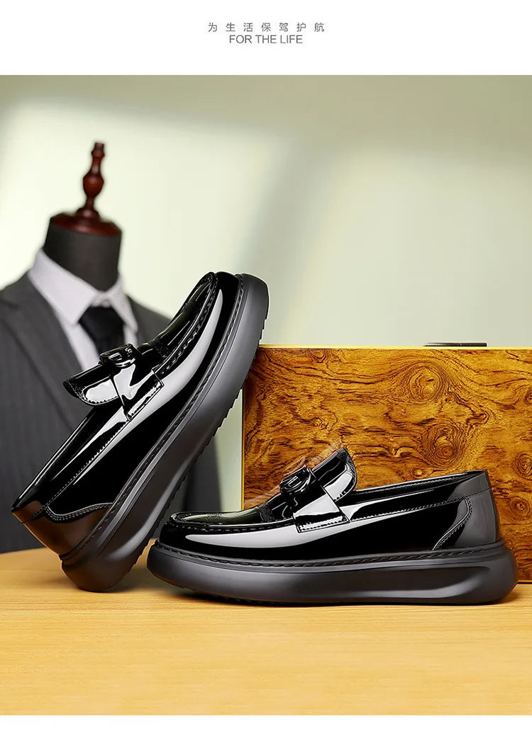 Fashion Retro Casual Bright Men s Shoes Low Top Platform Korean Loafers Male ...