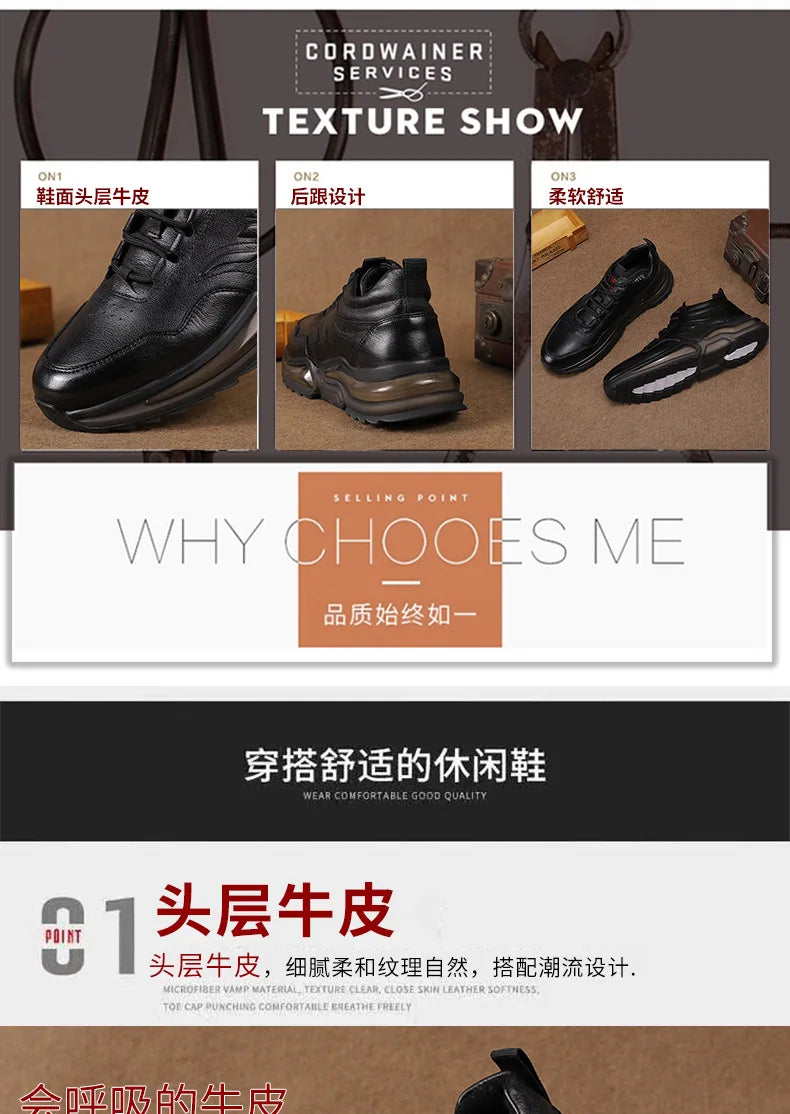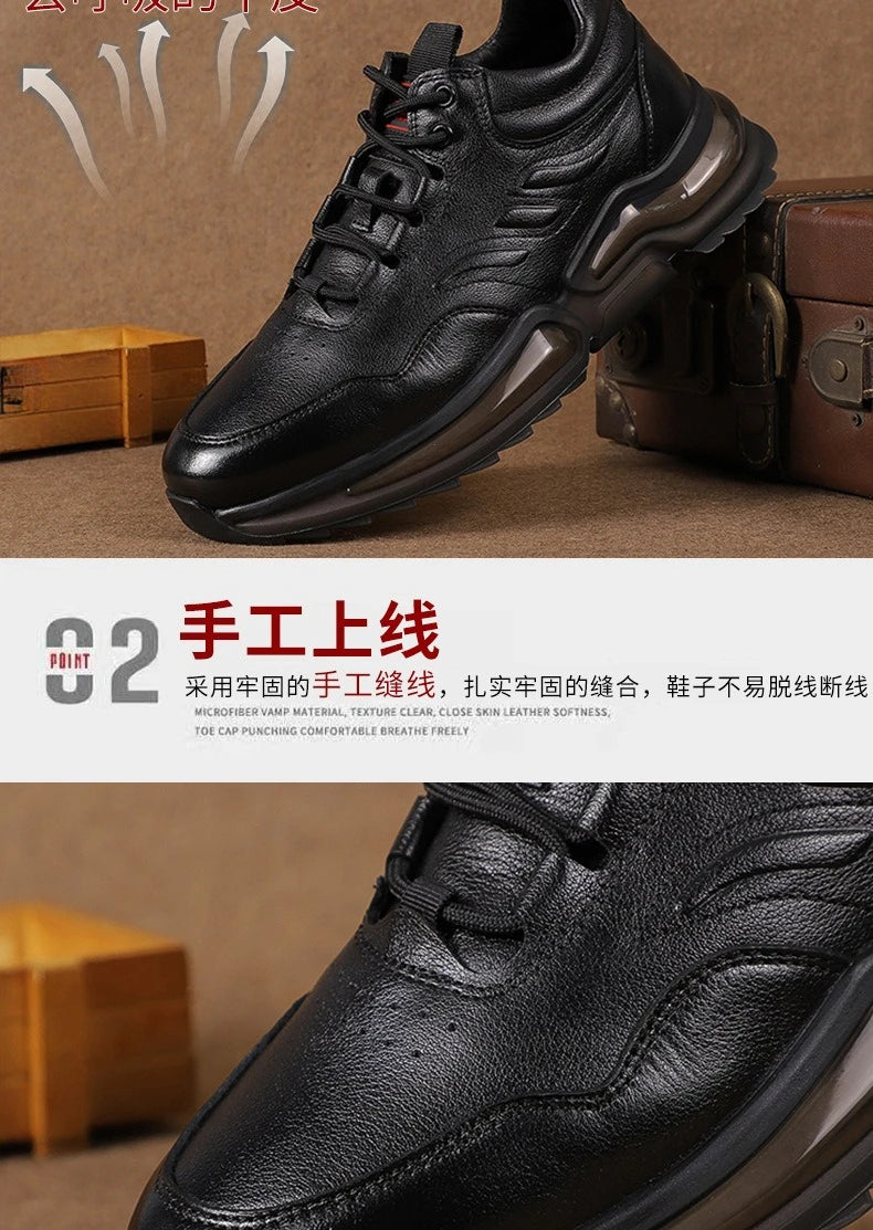 Men s Sports Shoes, Rotating Buckle Leather Shoes, All cowhide Soft soled Lig...