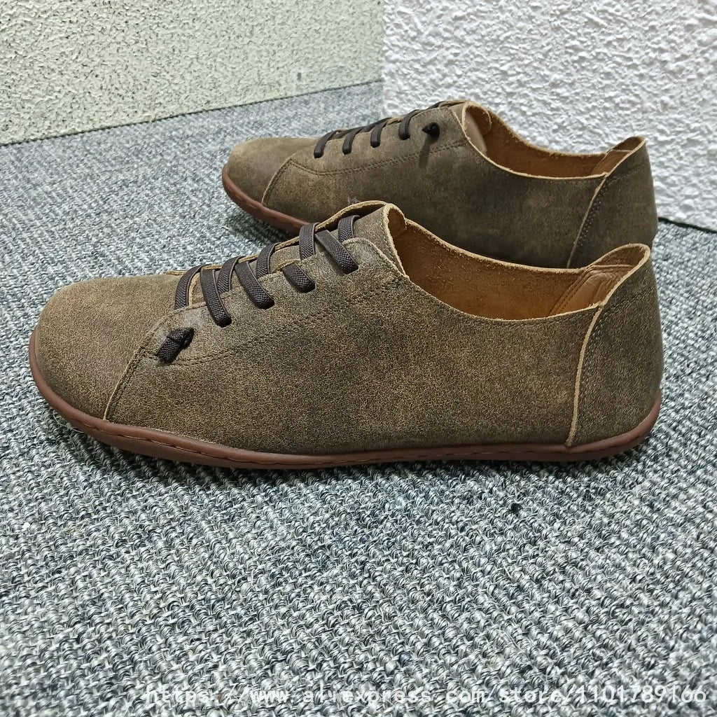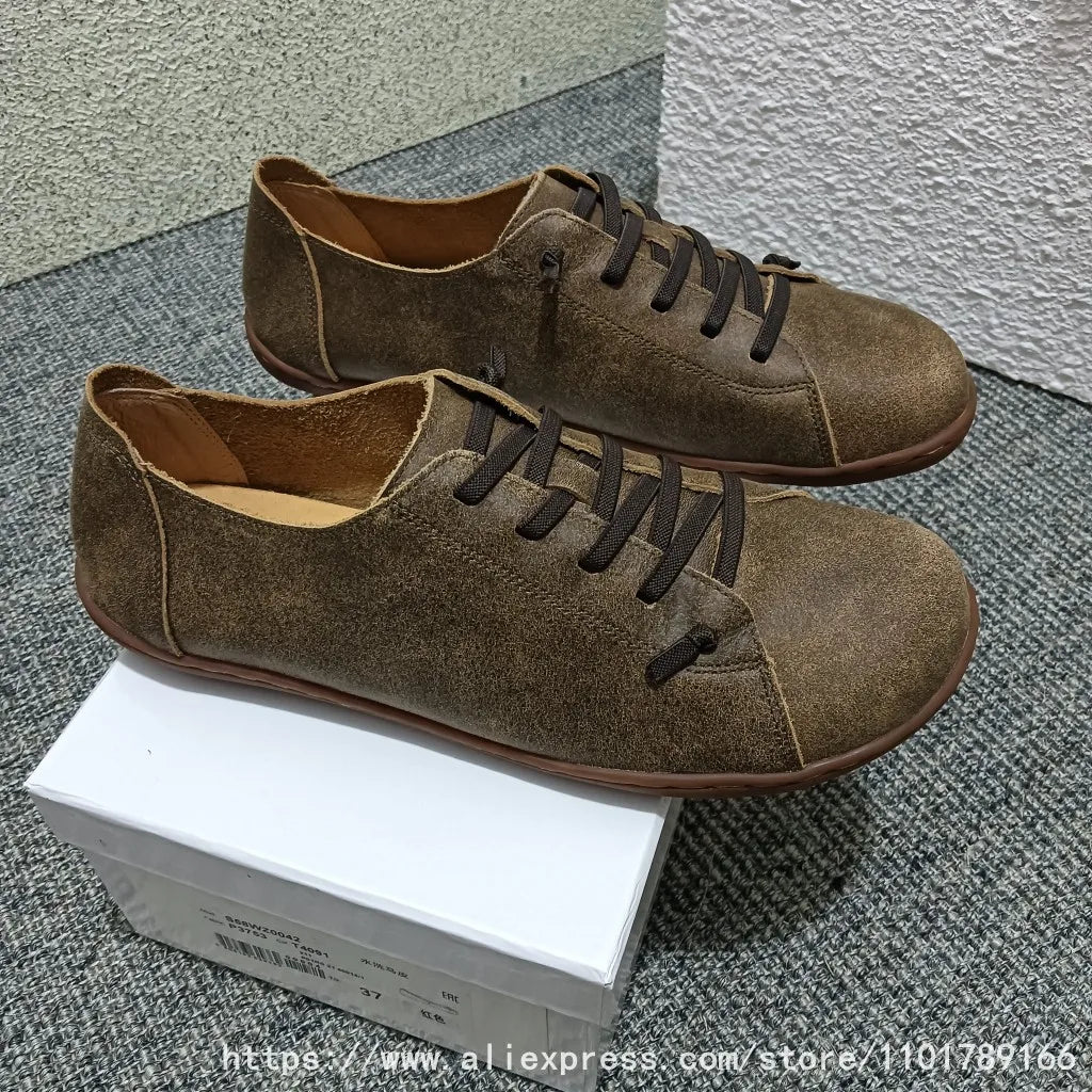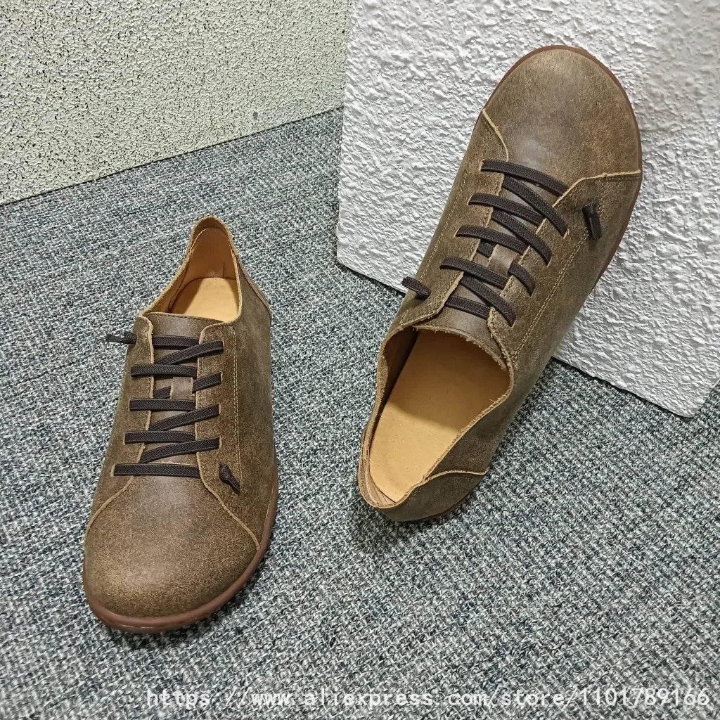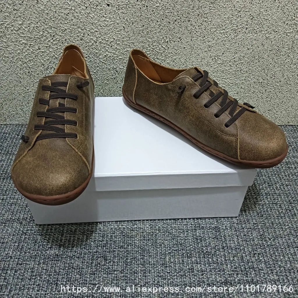 unisex Retro old effect cowhide men s shoes outdoor farmers work lace up shoe...