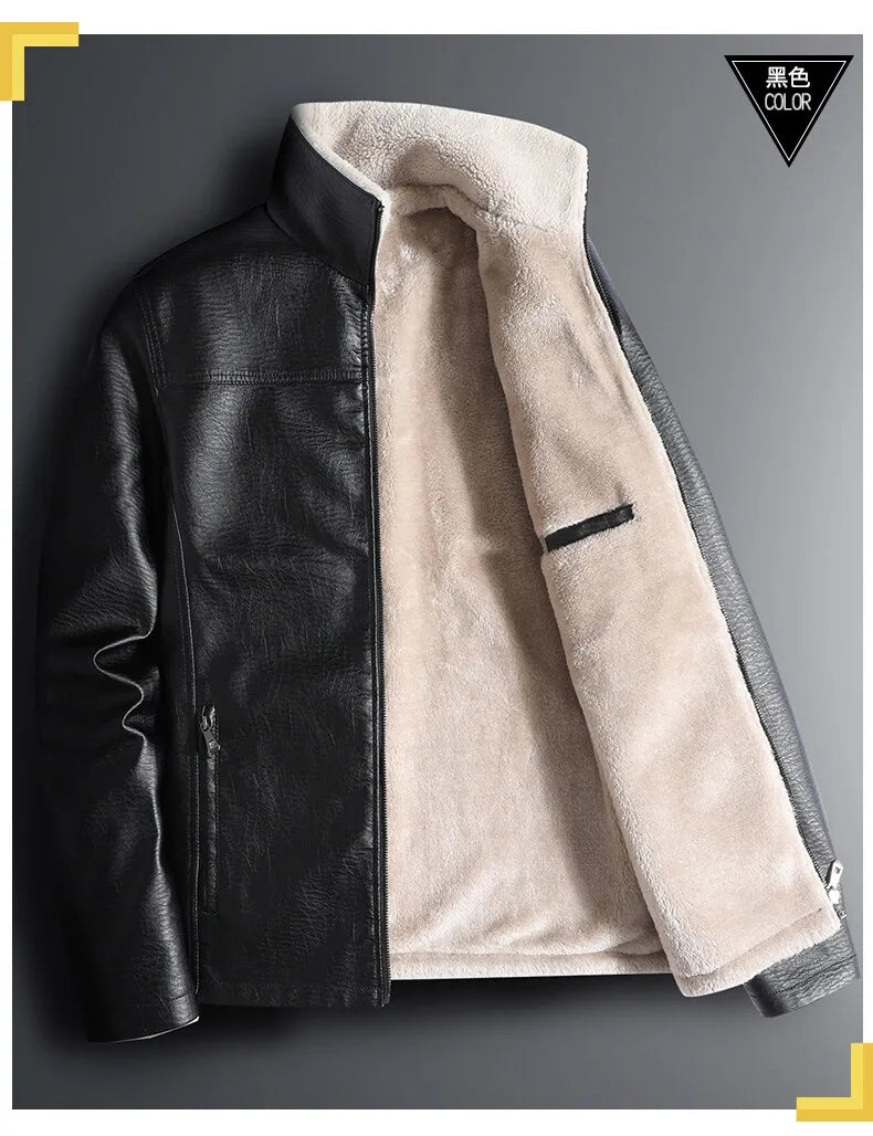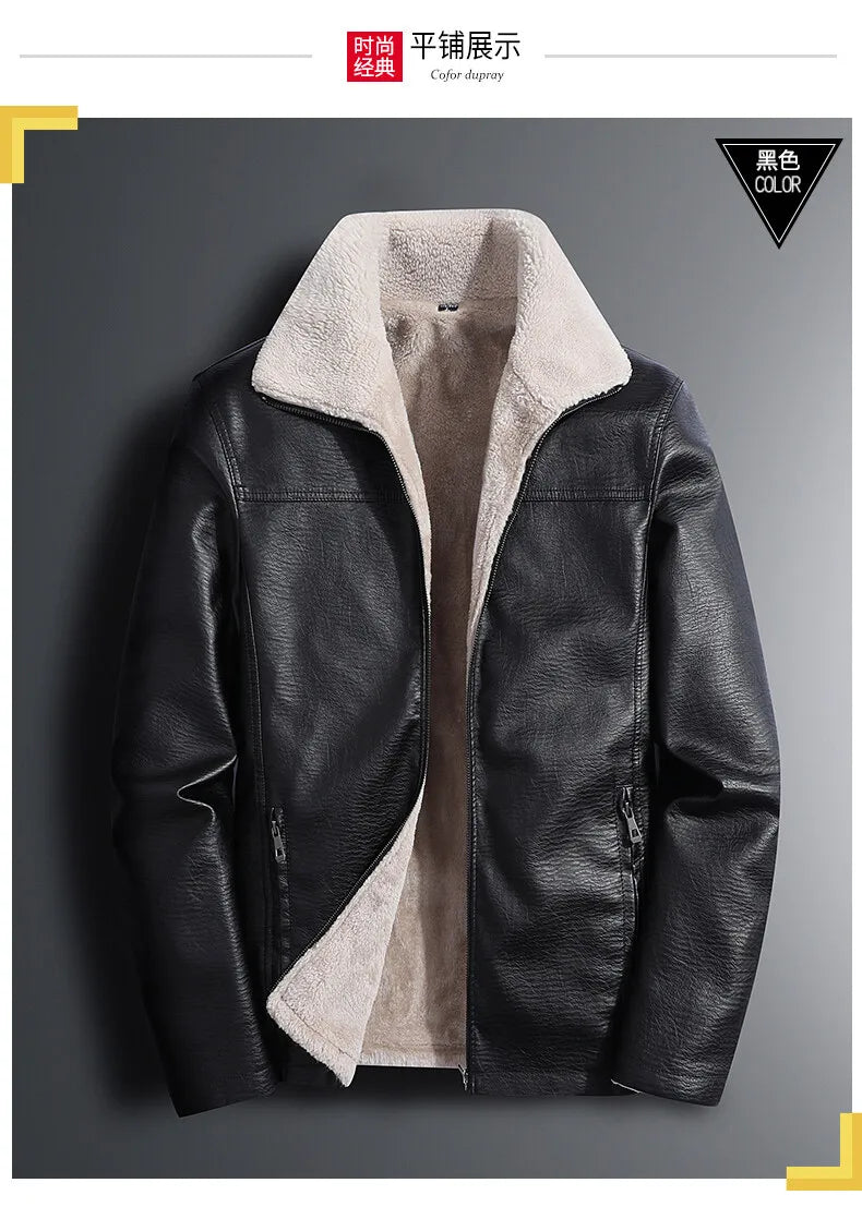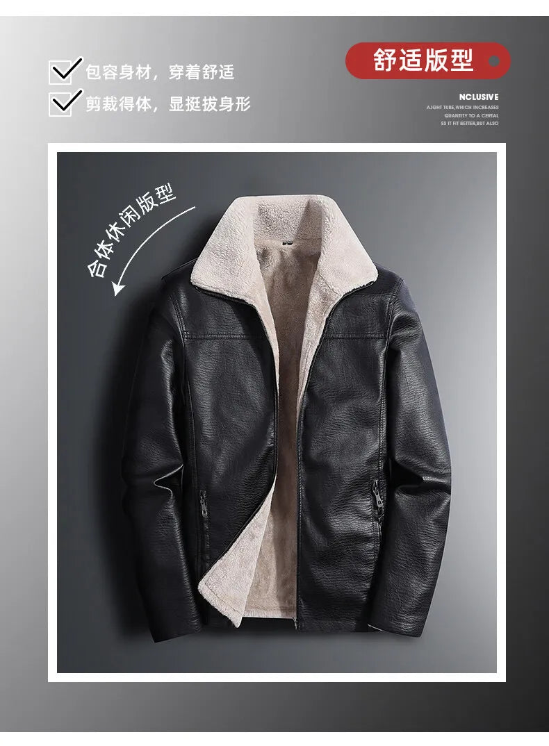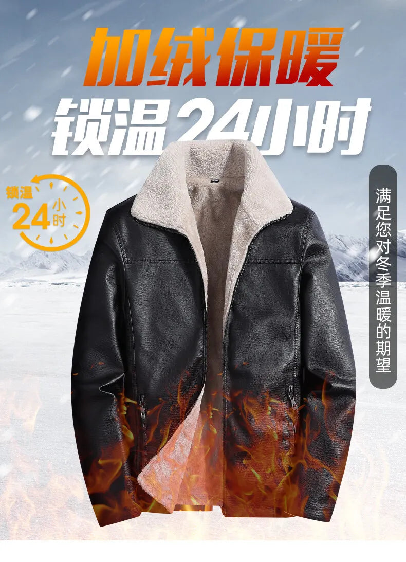 Men Plus Velvet Men Winter Warm Motorcycle Thickened Leather Coat Man Fleece Autumn PU Leather Coats Warm...