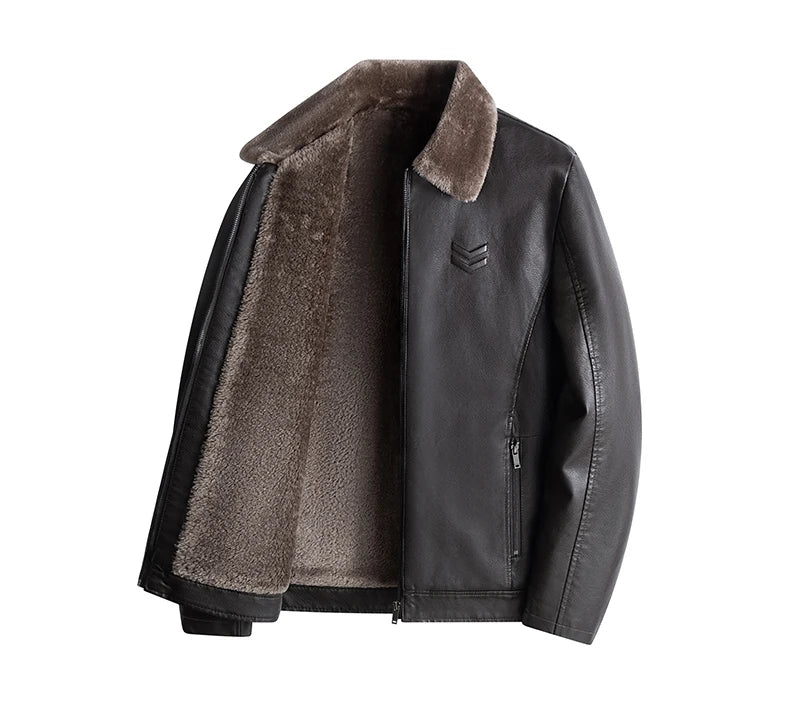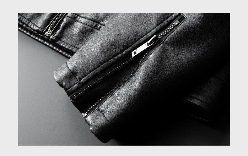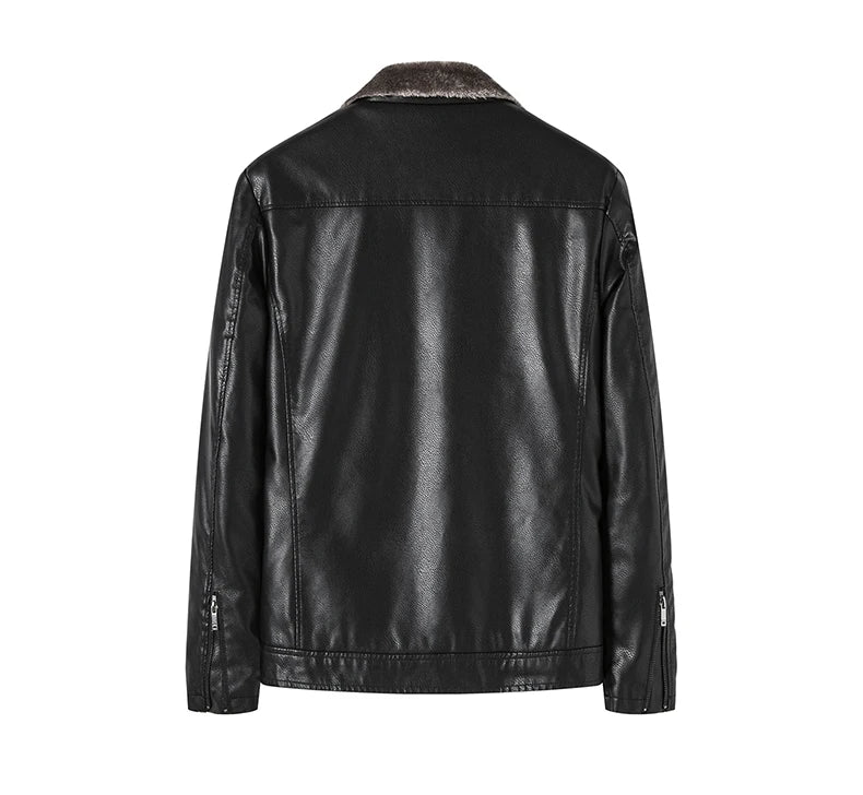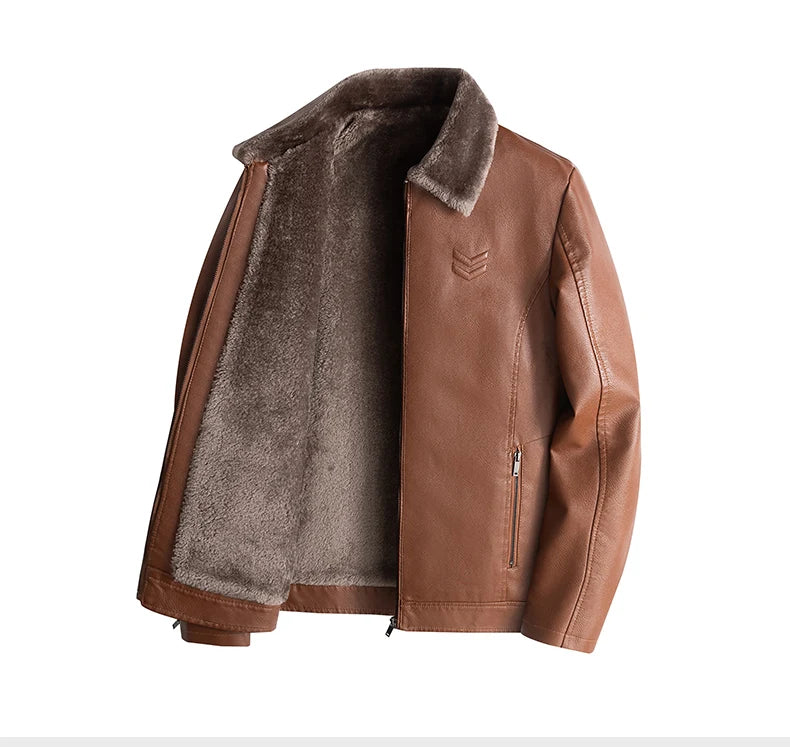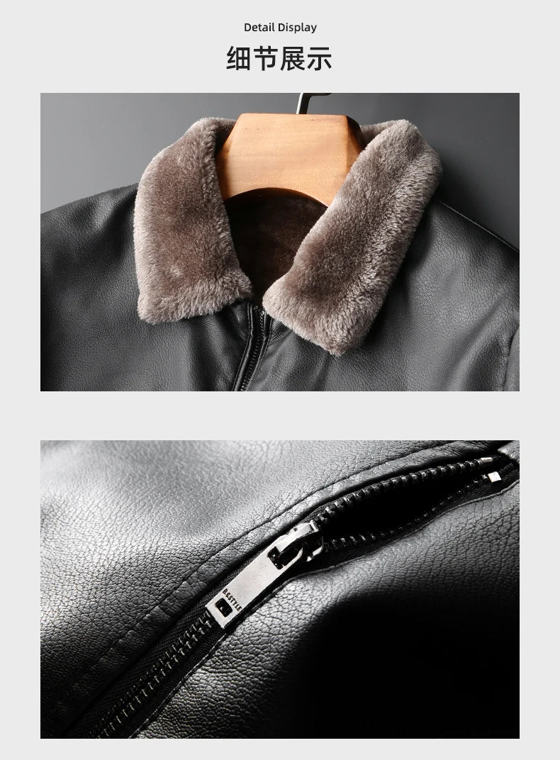 new Fleece Leather Jacket Mens Plus Velvet Men Winter Warm Motorcycle Thickened Leather Coat Man fleece A...