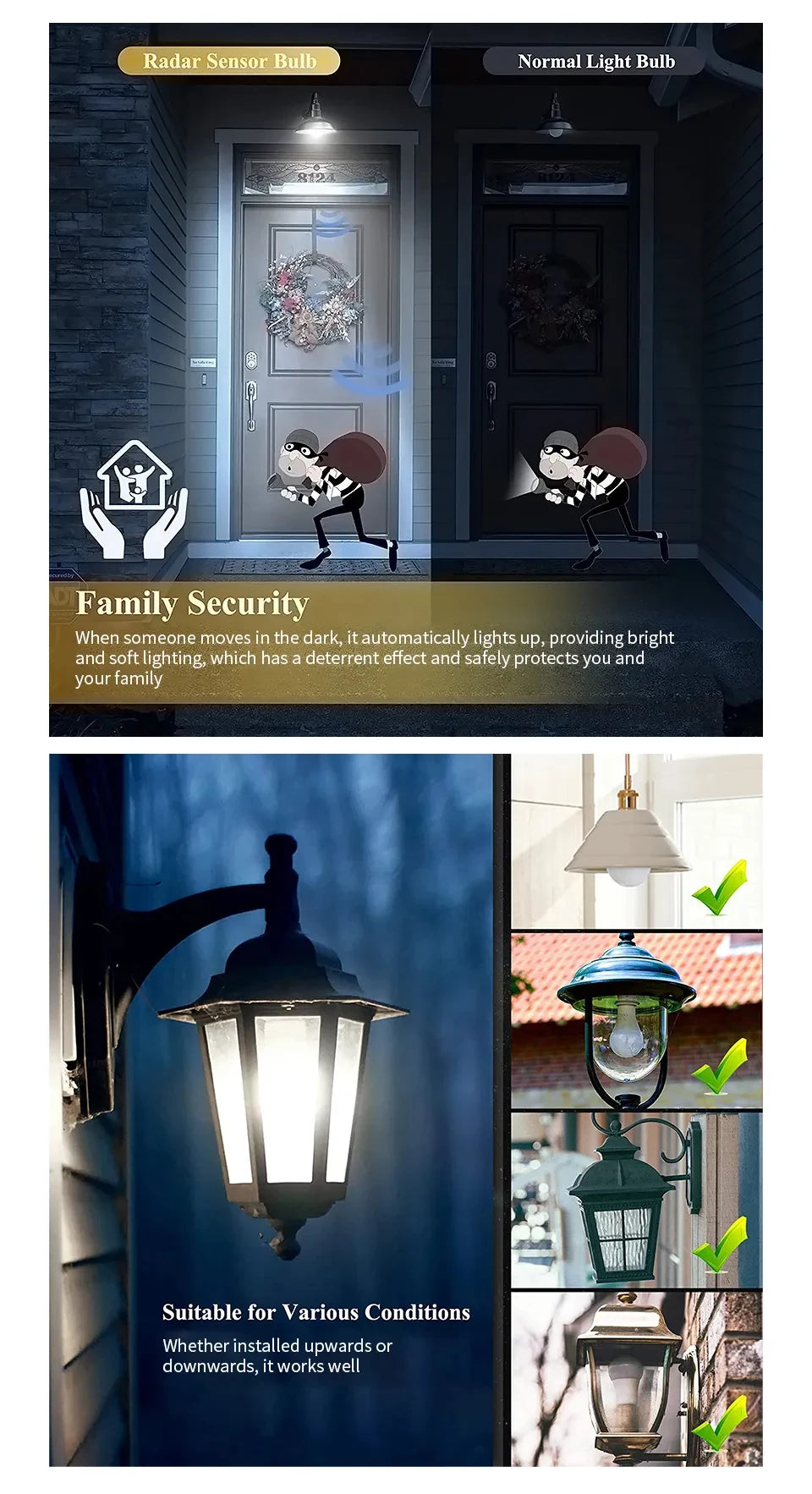 2pc LED Sensor Radar Light Bulb 6W 9W 12W 15W 18W 20W Smart LED Lamp E27 220V Motion Sensor Auto OFF/ON C...