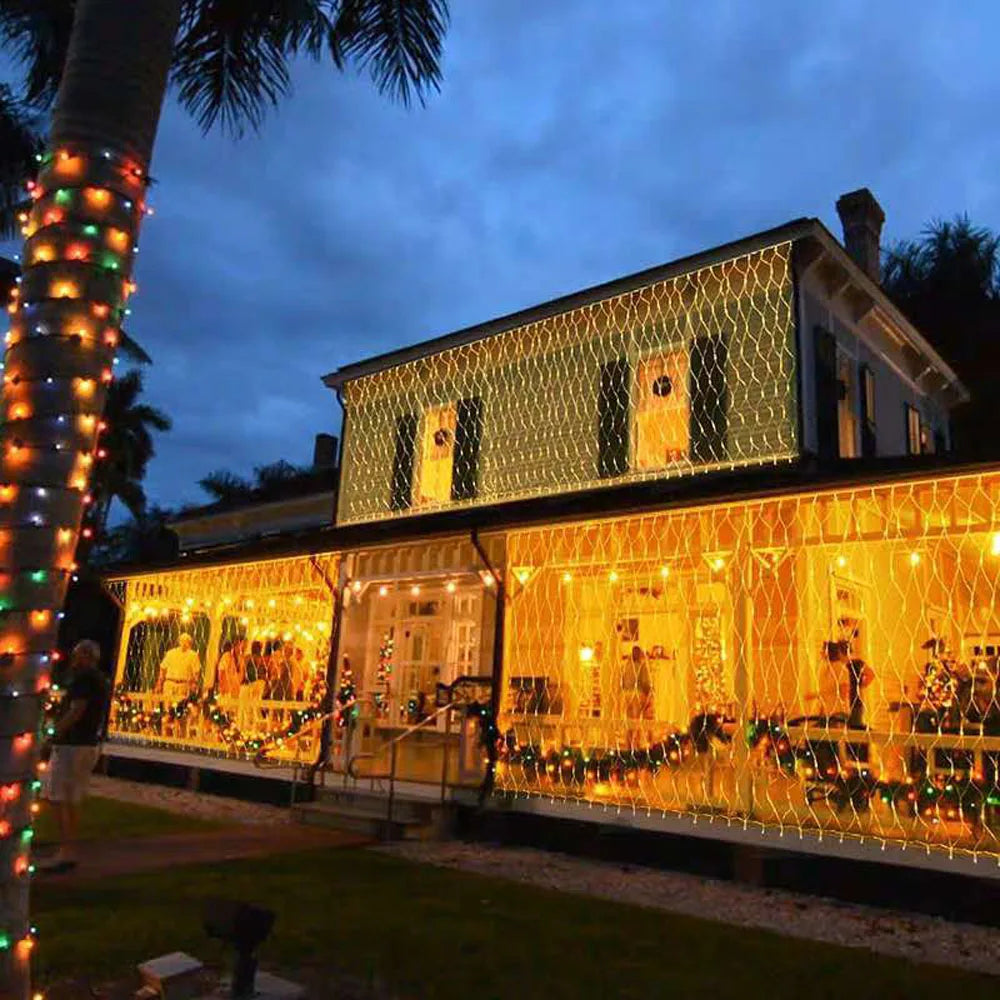 Net Mesh Led Lights 3M 6M 12M LED String Christmas Fairy Curtain Garland Outd...