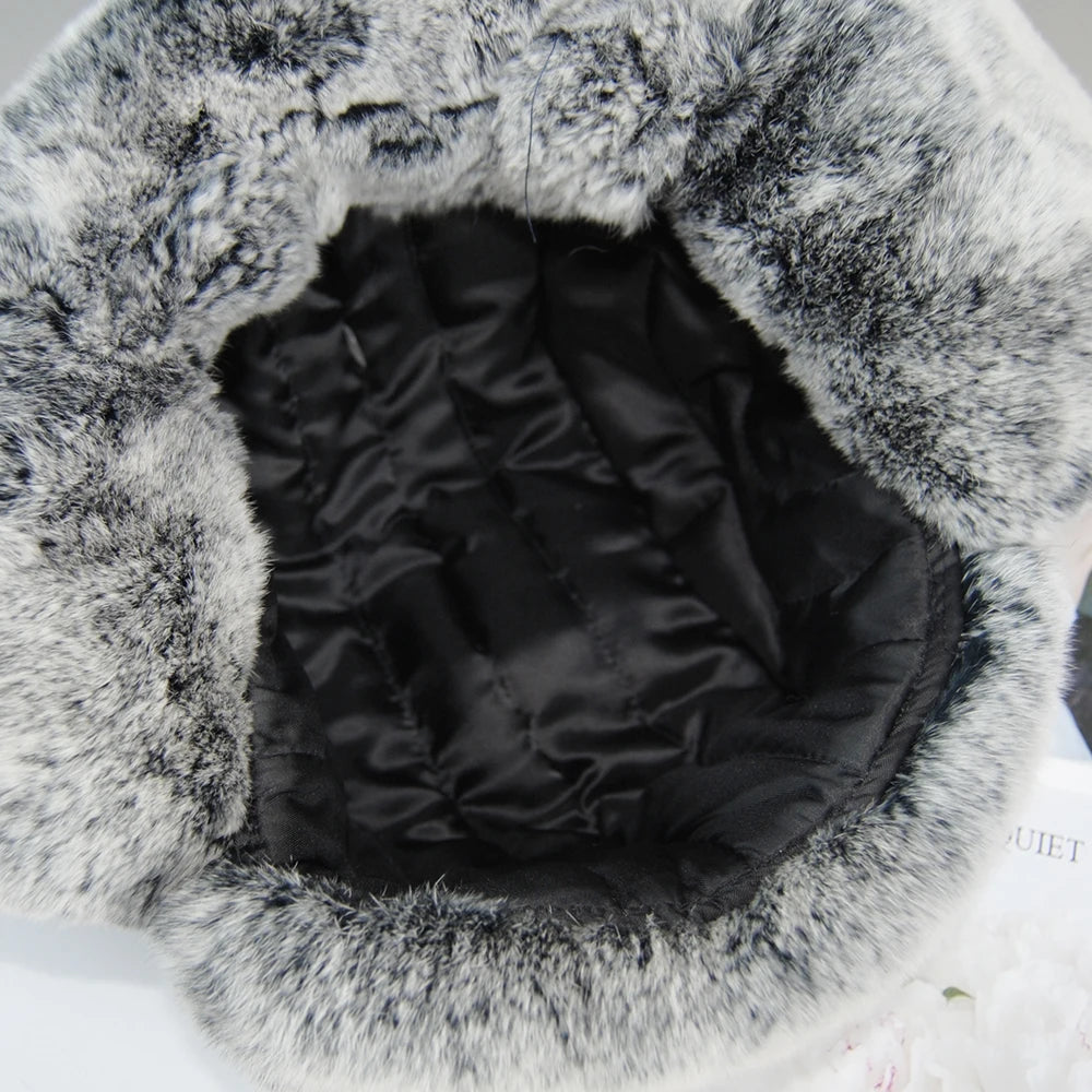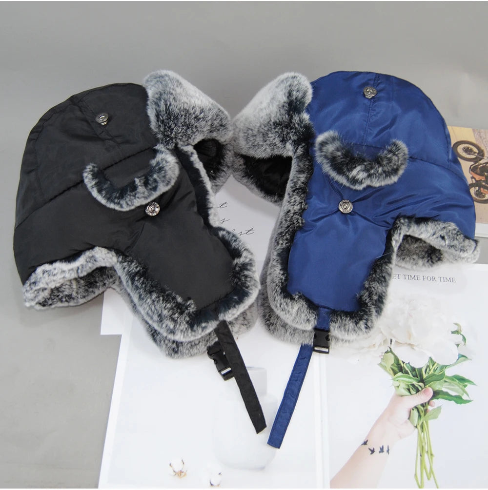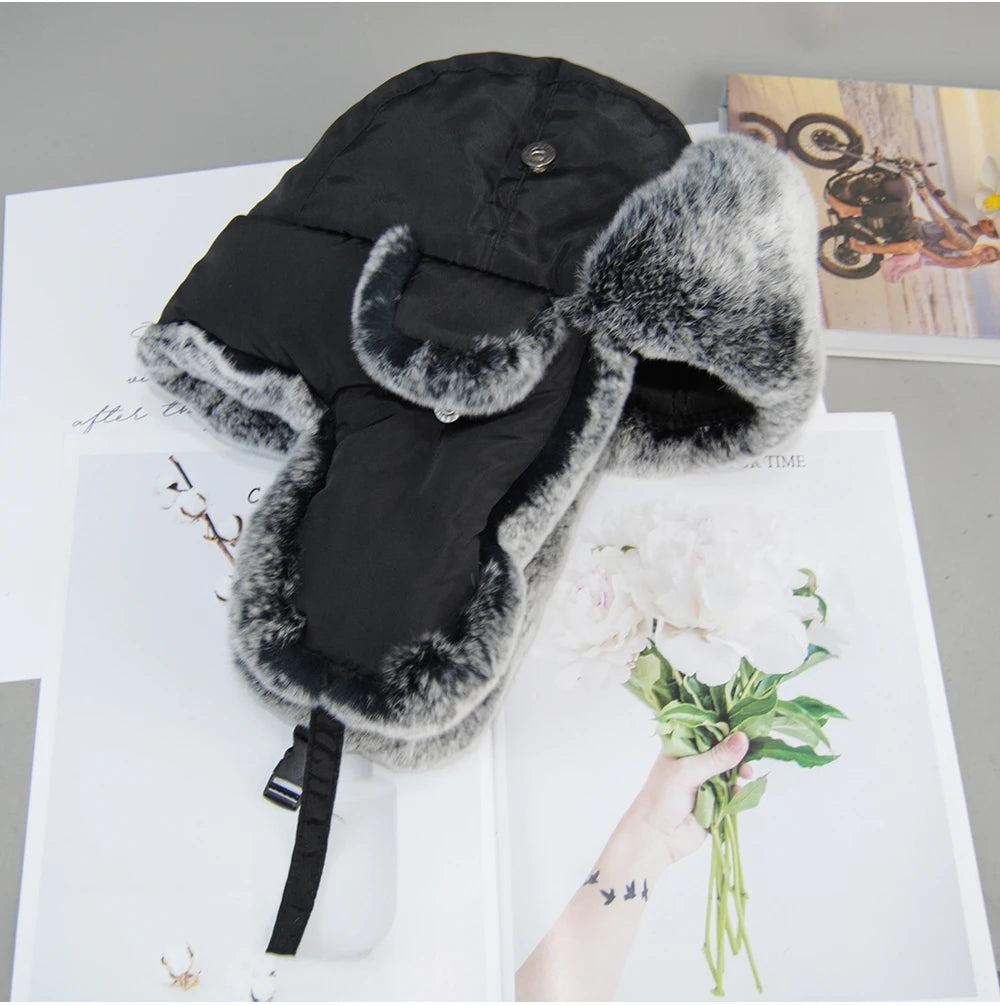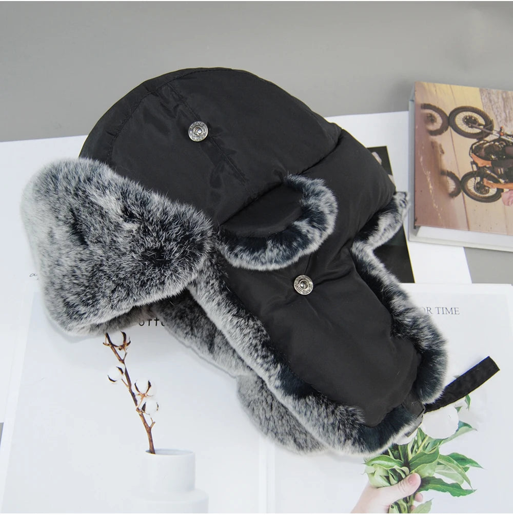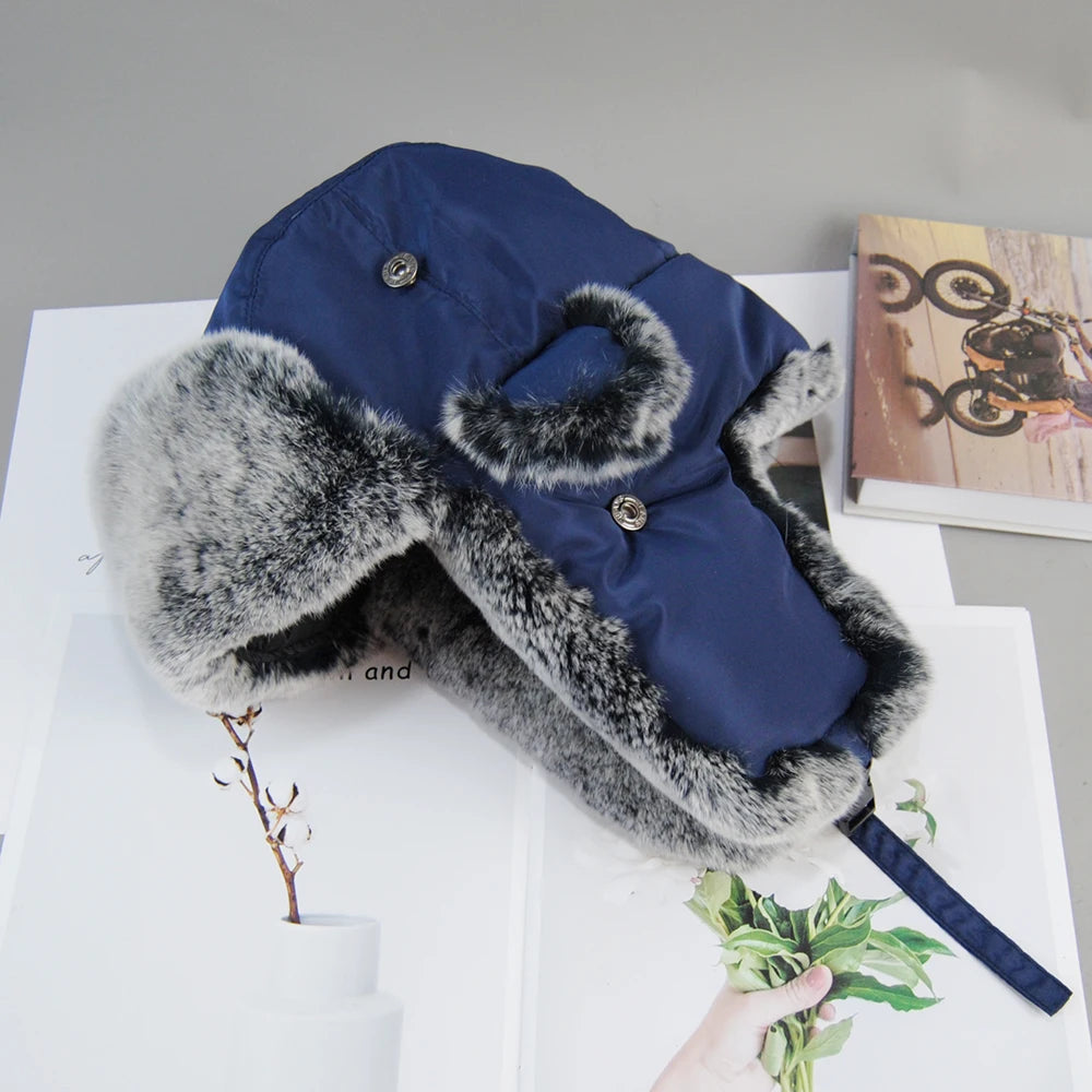 Men Real Rabbit Fur Russian Hat Ushanka Thick Warm Cap With Ear Flaps Fashion...