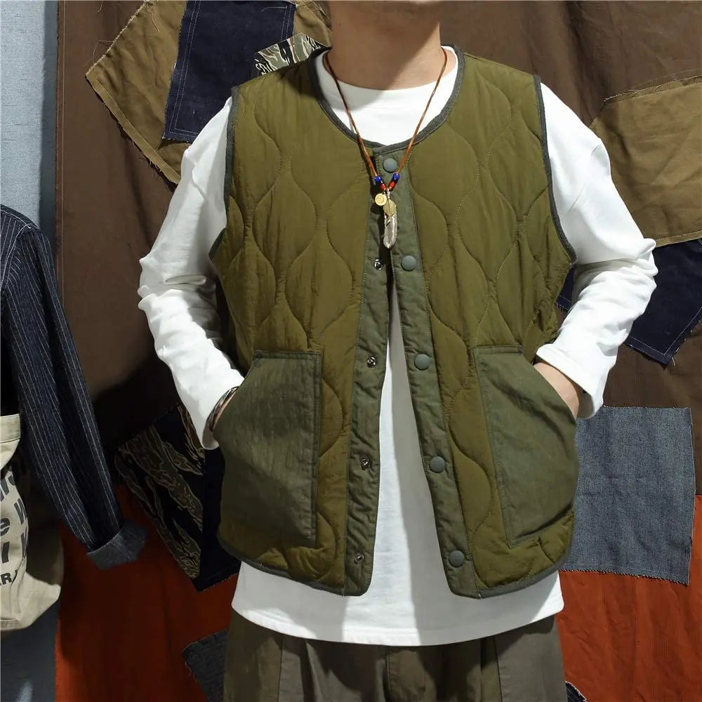 Cotton Padded Vest Mens Sleeveless Quilted Jacket Thick Warm Fashion Casual Outerwear Men Autumn Winter