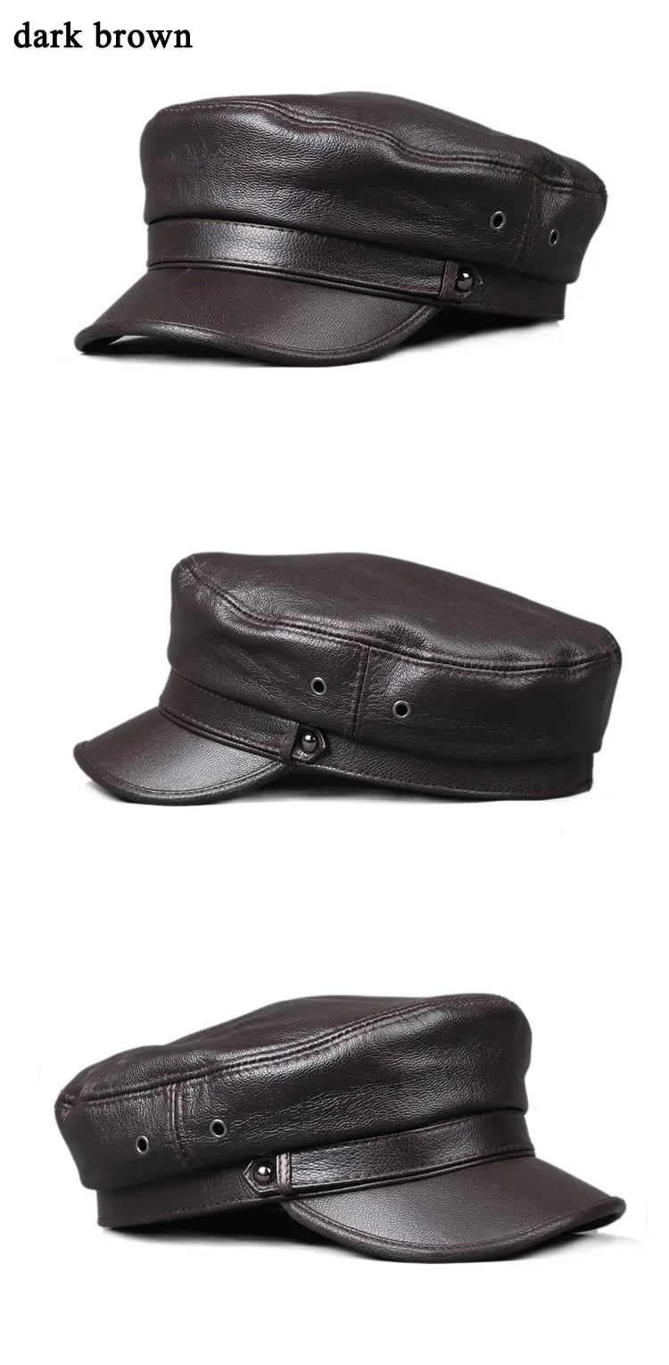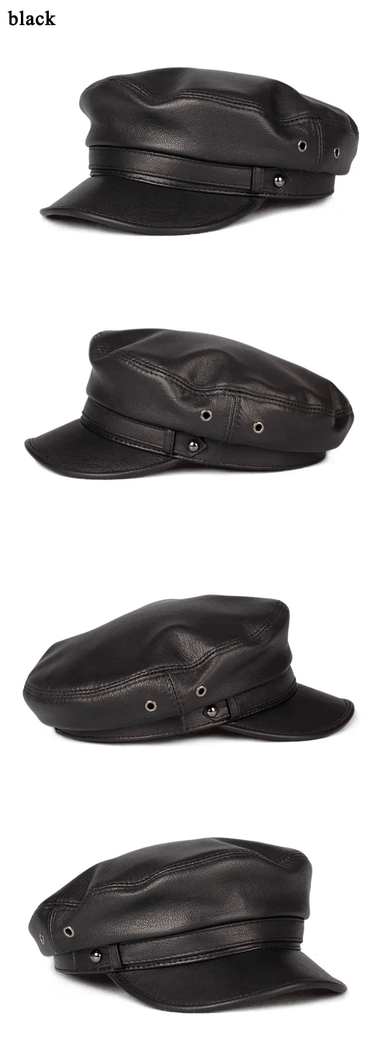 Leather Flat Navy Hats For Men Women Winter England Fashion Fitted Newsboy Caps Unisex Korean Natural She...