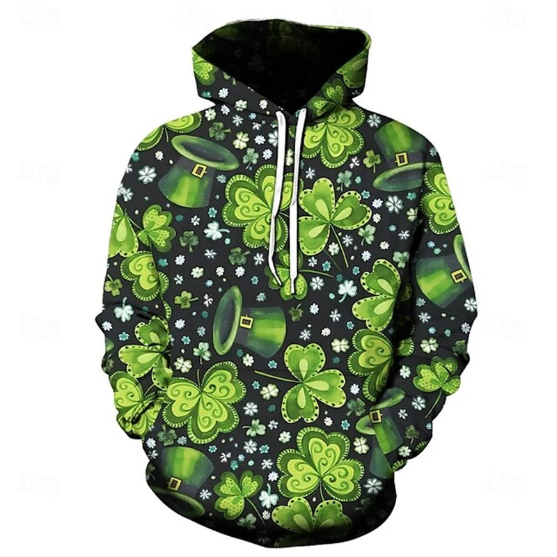 Men Hoodies St. Patricks Day Clothing 3D Print Green Clover Hat Graphic Hooded Pullover Unisex Irish Holi...