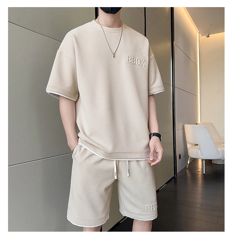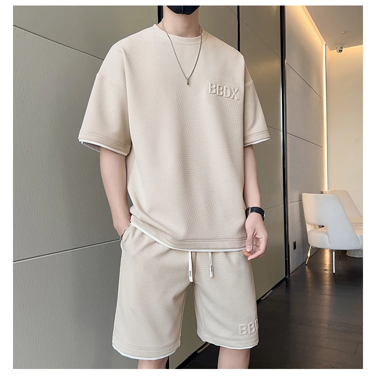 Mens Sports Suit Fashion Short Sleeve Tracksuit Men Suits Summer Men's Two Piece Set Casual T-Shirt and ...