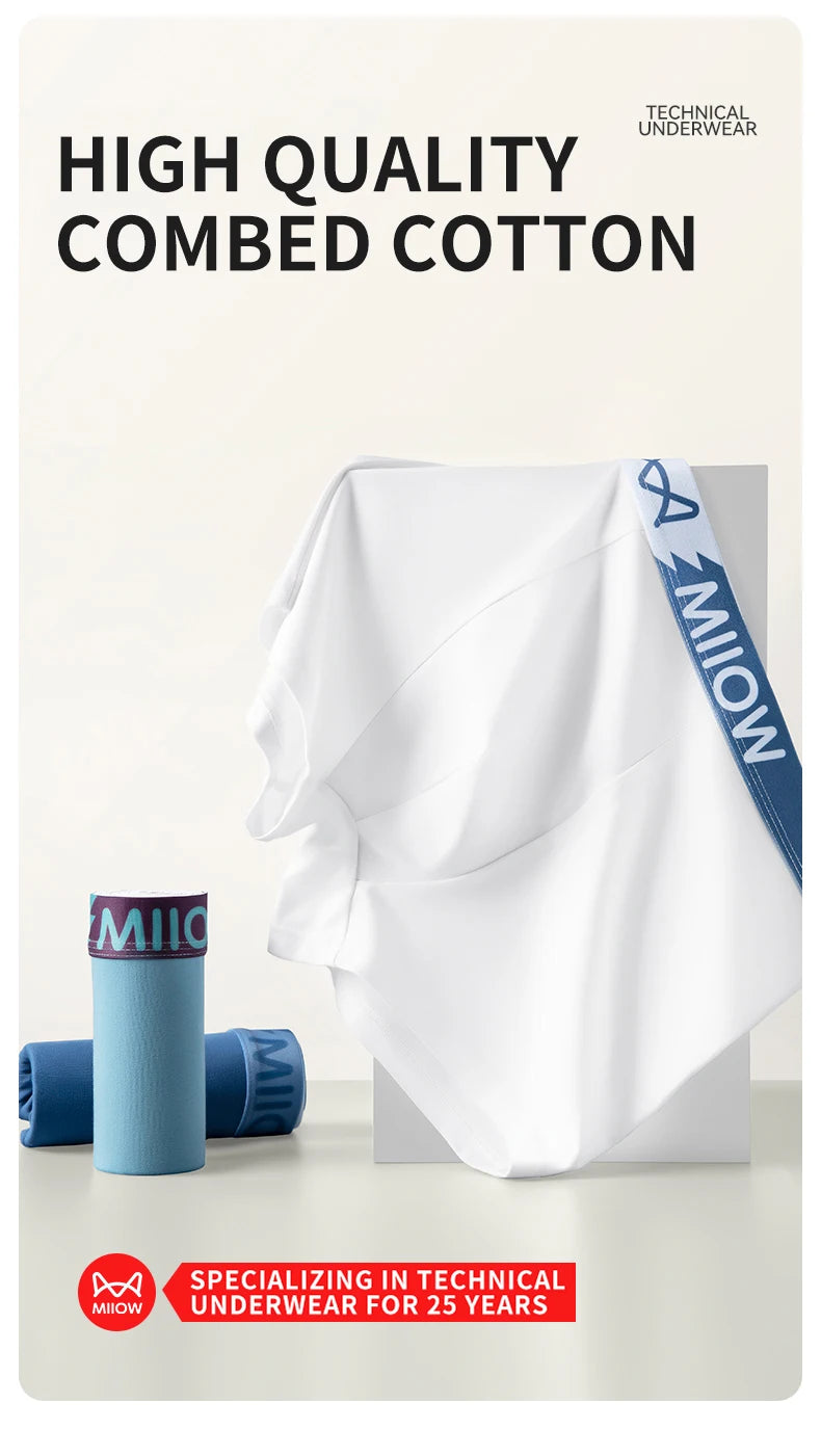MiiOW Combed Cotton Men's Panties Set Softness Breathable Man Underwear 7A Antibacterial Male Underpants Mens Boxershorts Briefs