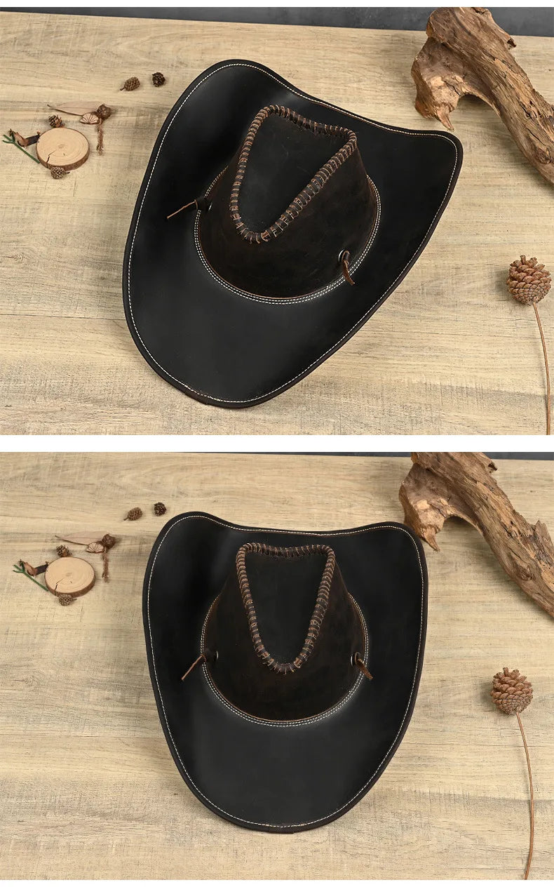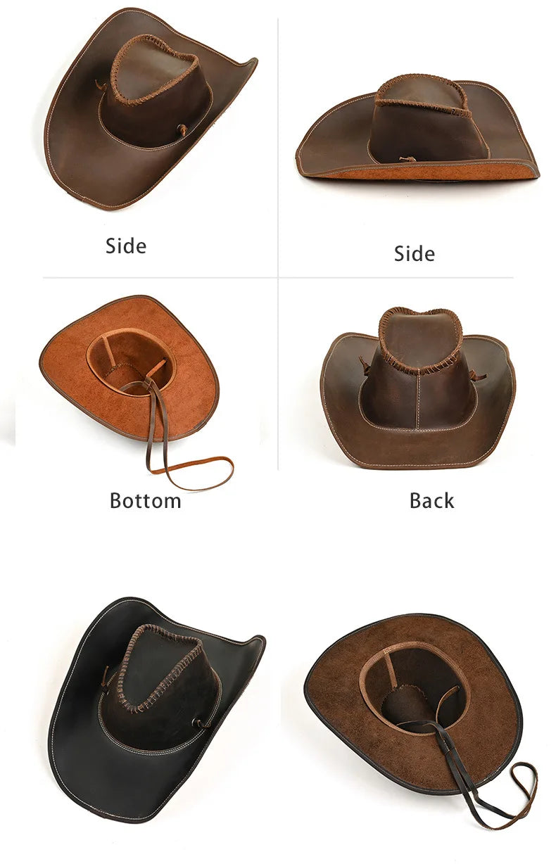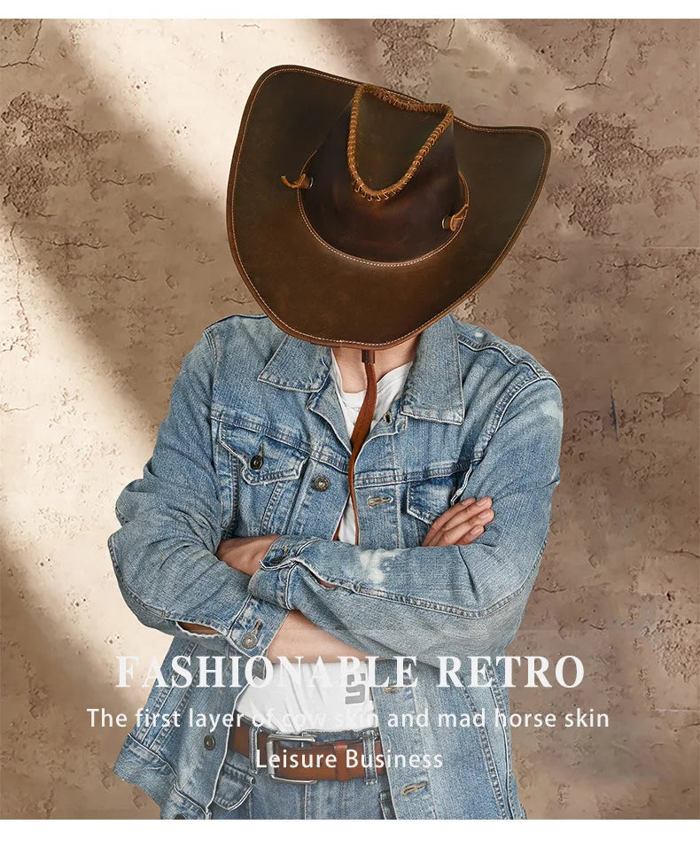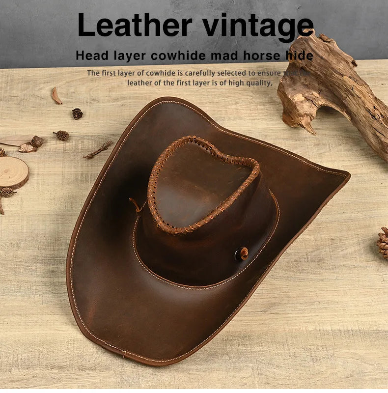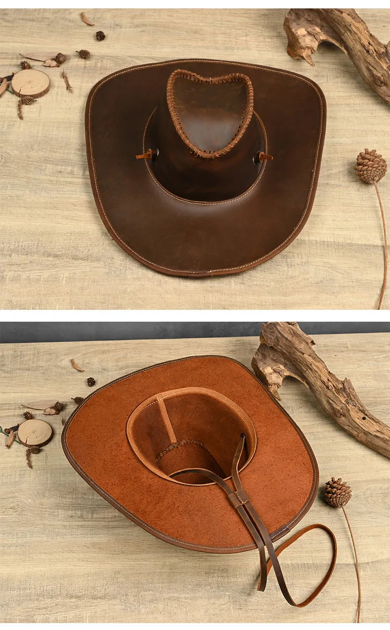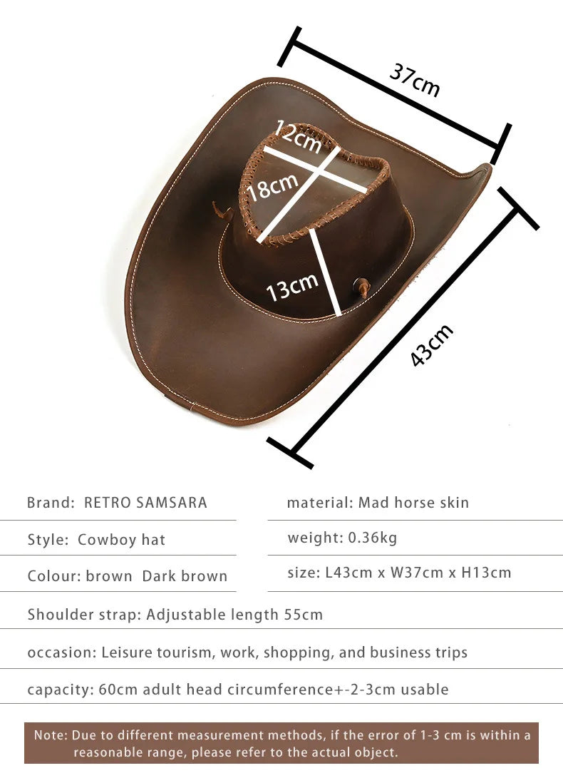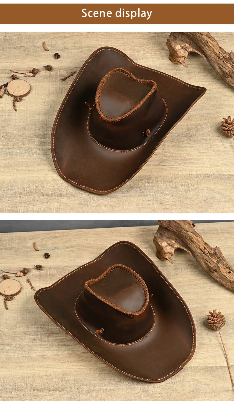 Retro Handmade cowhide hat, knight clothing, cowboy hat, handmade leather Rid...