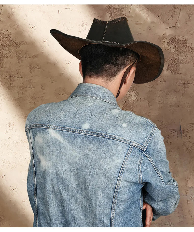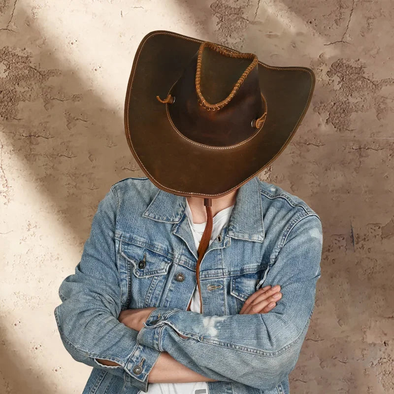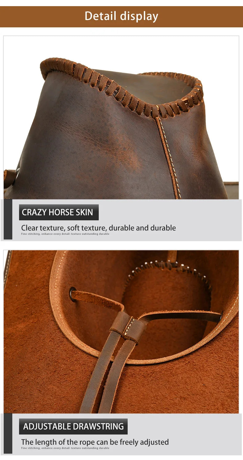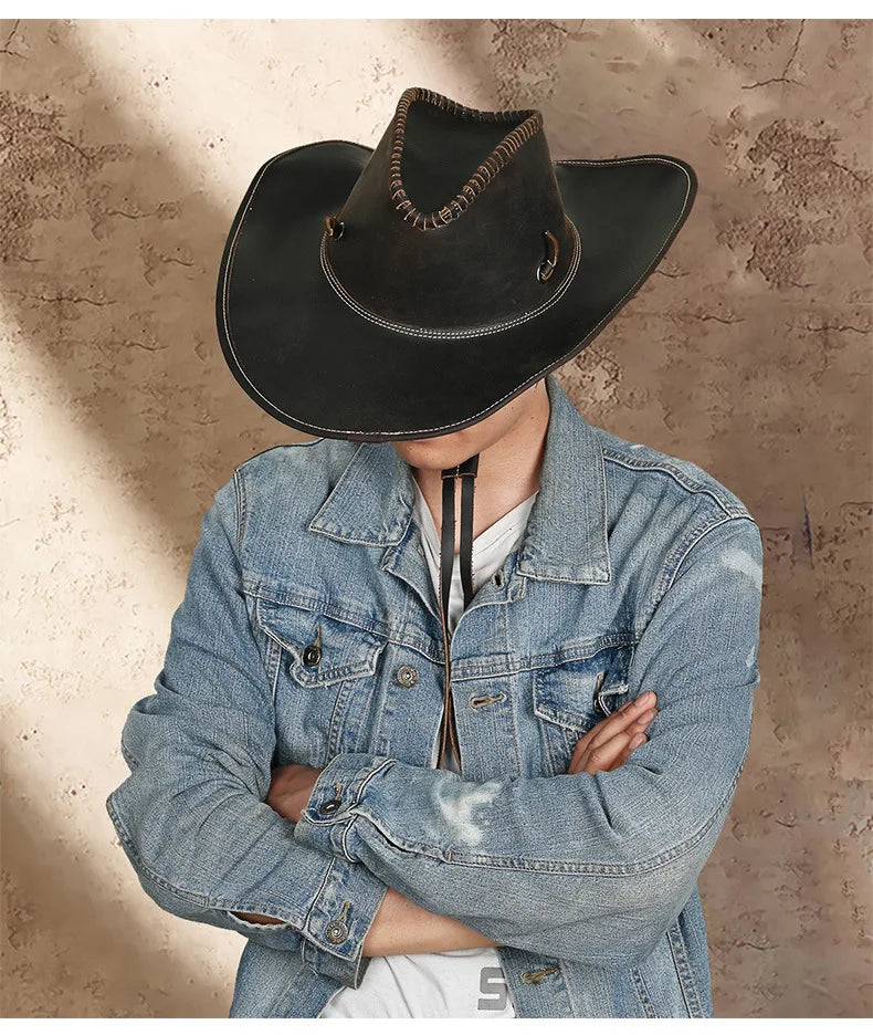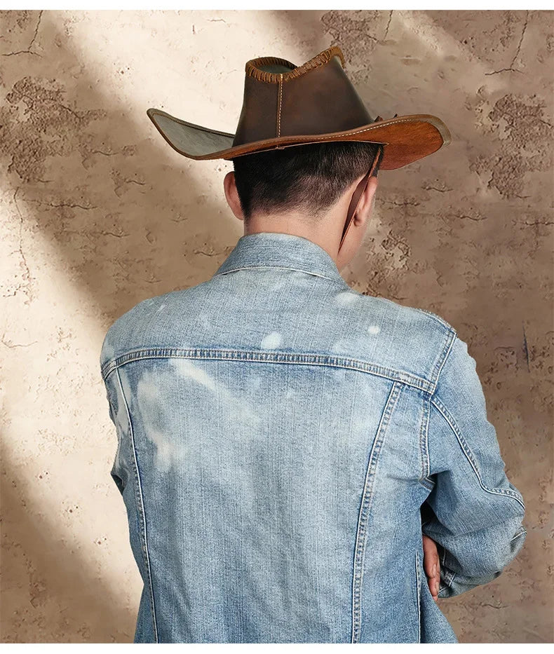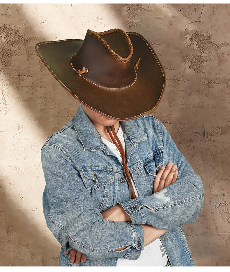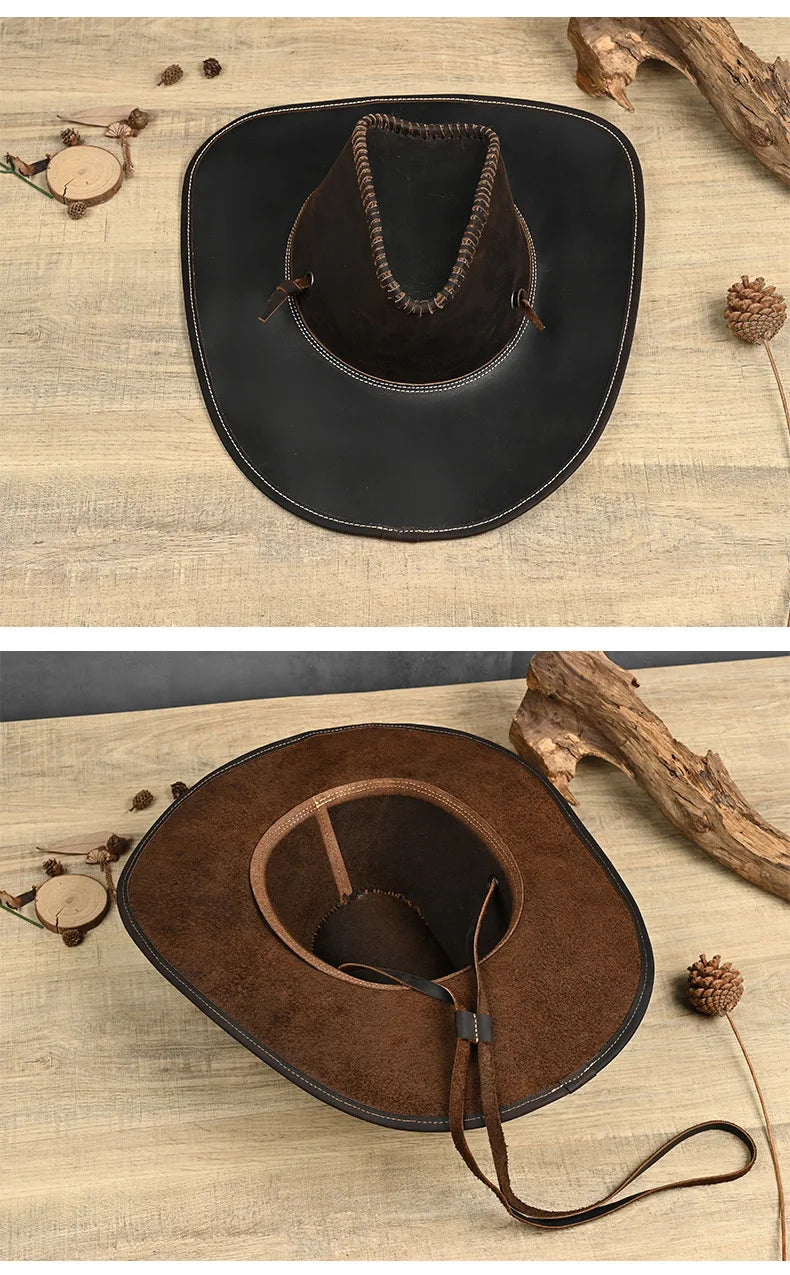 Retro Handmade cowhide hat, knight clothing, cowboy hat, handmade leather Rid...
