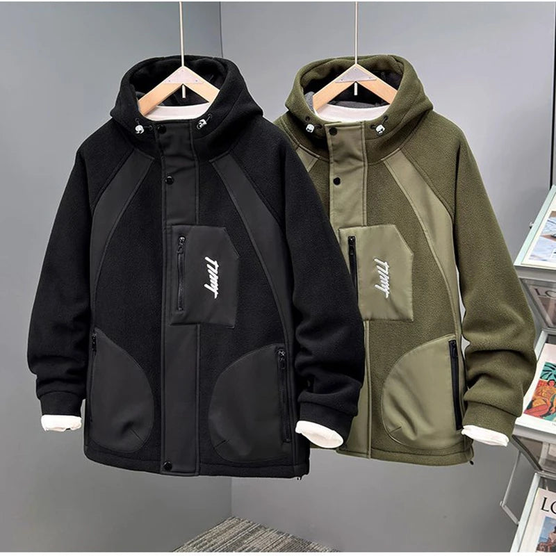 Men autumn winter warm fleece jacket new style extra size hooded fleece and thick zipper sweatshirt overs...