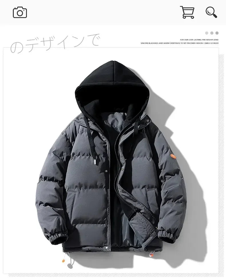 Men Hooded parka Thick Warm Colorful Bubble Coat Winter Jacket Mens Streetwear Hip Hop Parka Korean Black...